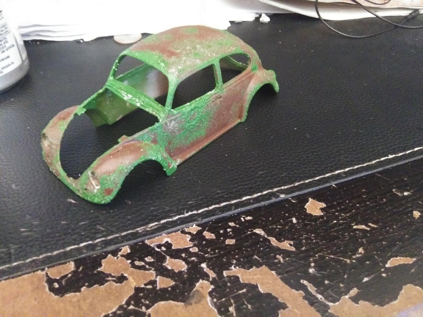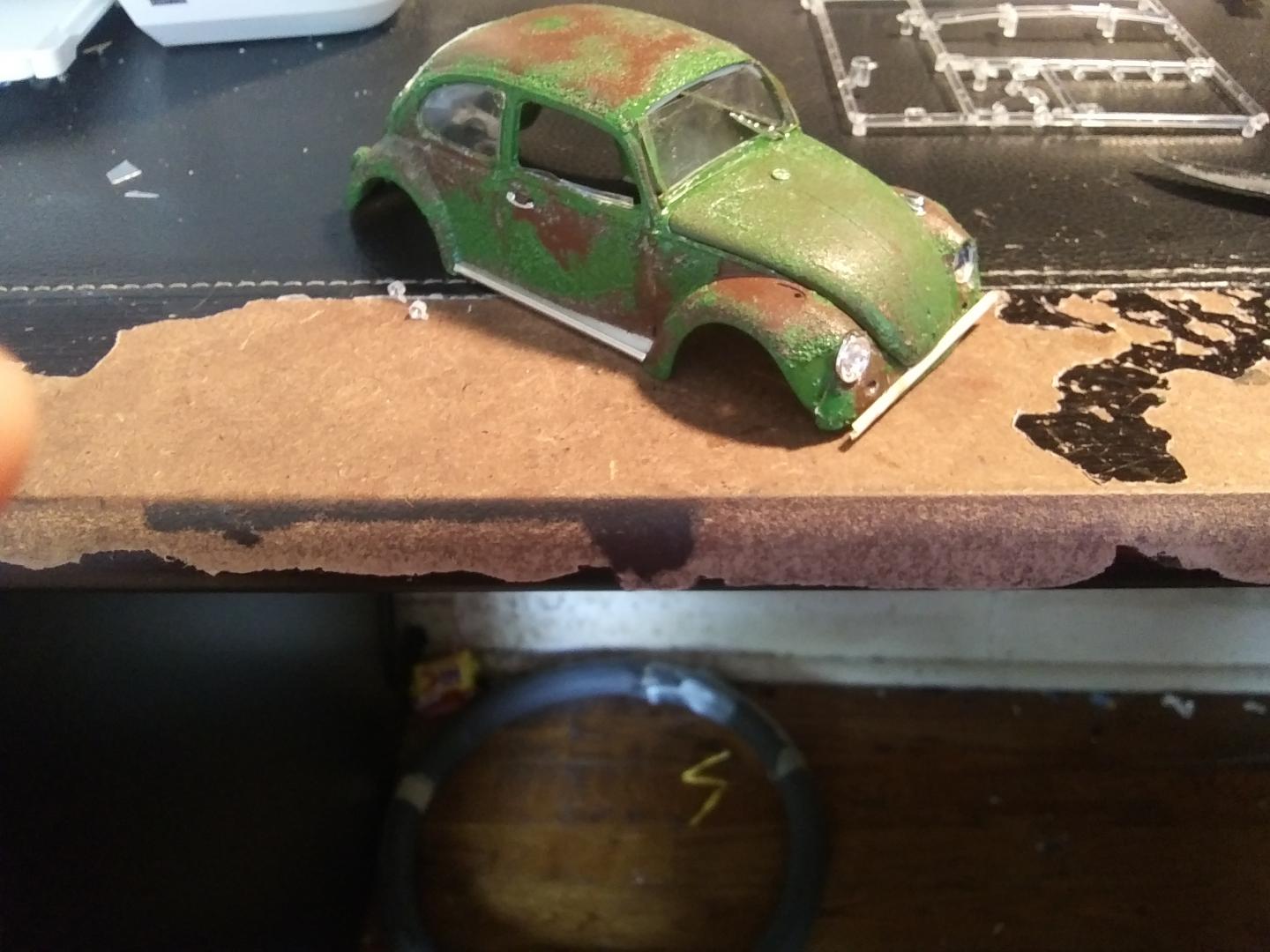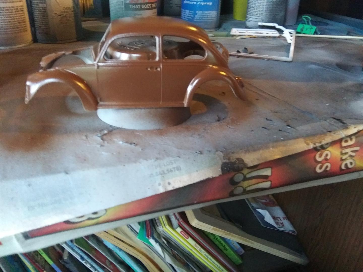 My mom had a super beetle as a first car so I decided to build a replica to the best of my ability. With what I had I think a did a ok job on it. I only have one picture of the car in progress and that is my profile picture so there won't be any in progress pictures.