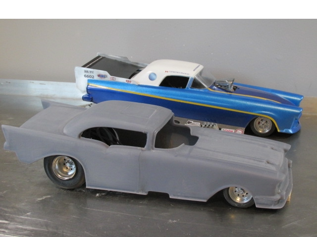 OK here comes the twist on this one. The real car runs two different bodies, one for nostalgia events and another for match races, the 57 Chev for nostalgia and this for match racing. So I'm doing both bodies and they will fit the chassis without having to make any changes to the chassis to fit either body just as in the real car.