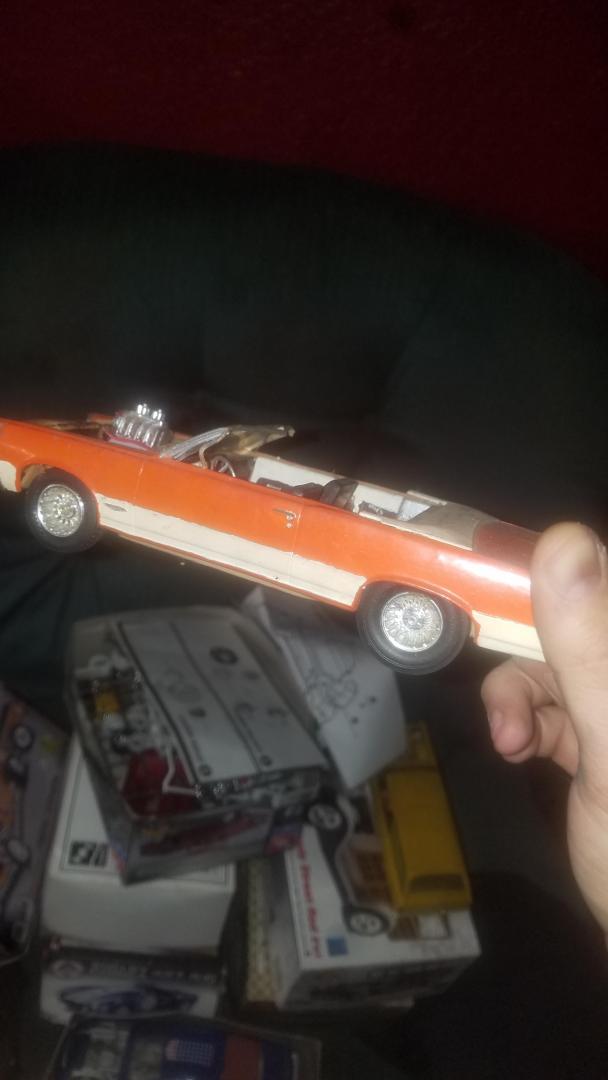I abused myself with that GTO kit quite a few times when I was a kid... never did get one finished that I recall. I have a "built up" convertible gto my dad built as a kid... not sure of the manufacturer as I haven't looked at it closely in years but I recall it has an old promo style chassis pan with molded in exhaust and diff and steel axles for both front and rear. My vote for wke I had as a kid and do not remember what it was.... all I can remember was it had a multi piece firewall that collapsed on me so I sent the thing into the wall at warp speed. Kinda wish I remembered so I could try again now with better skills and most importantly PATIENCE!