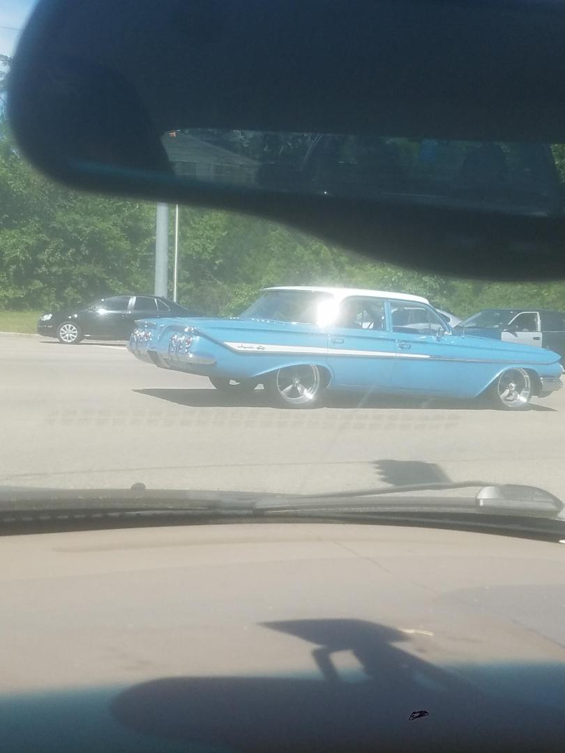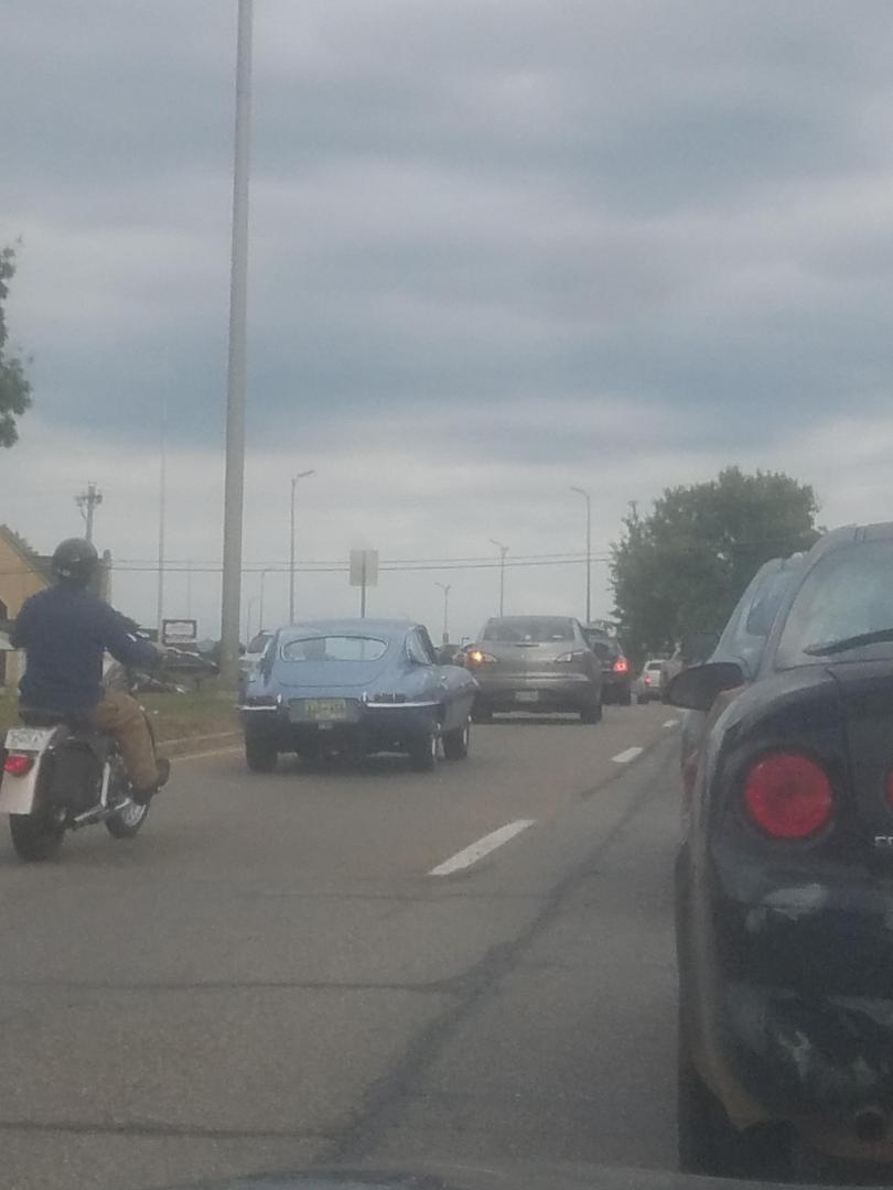 Wish I had been quicker with the cam... (phone is slow) but right through the light on a flat bed trailer is a (very nice) German Panzer IV tank!! Going down the street in my podunk town. Then I saw this... an E-Type Jag... bizarre stuff for these parts! Then this one... very sharp for a 4door. Then this guy rolled up and made my day!!! Wish there was a kit... gonna have to scratch build one someday! I see alot of wild stuff for such a small town... but then car scene here is HUGE! -