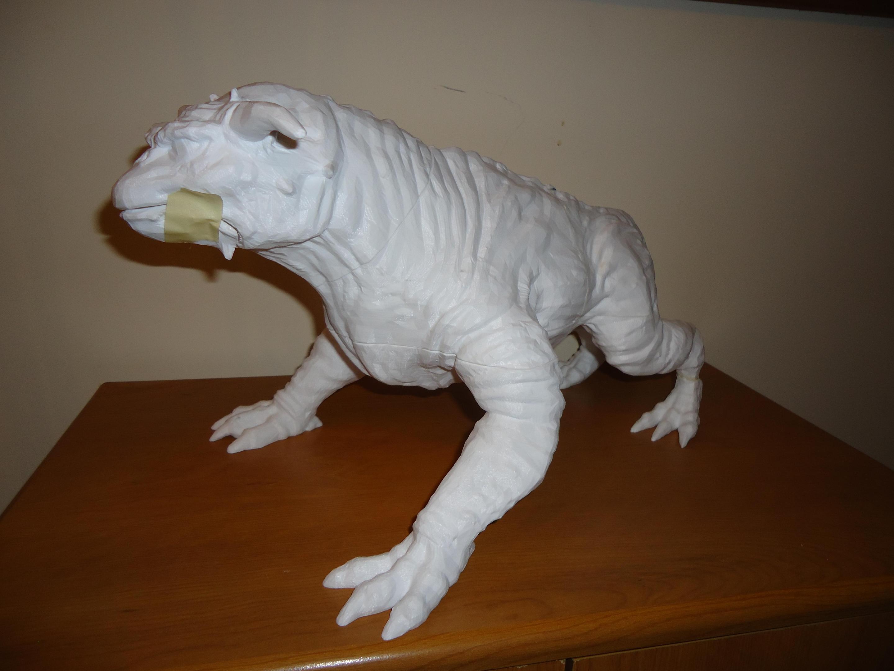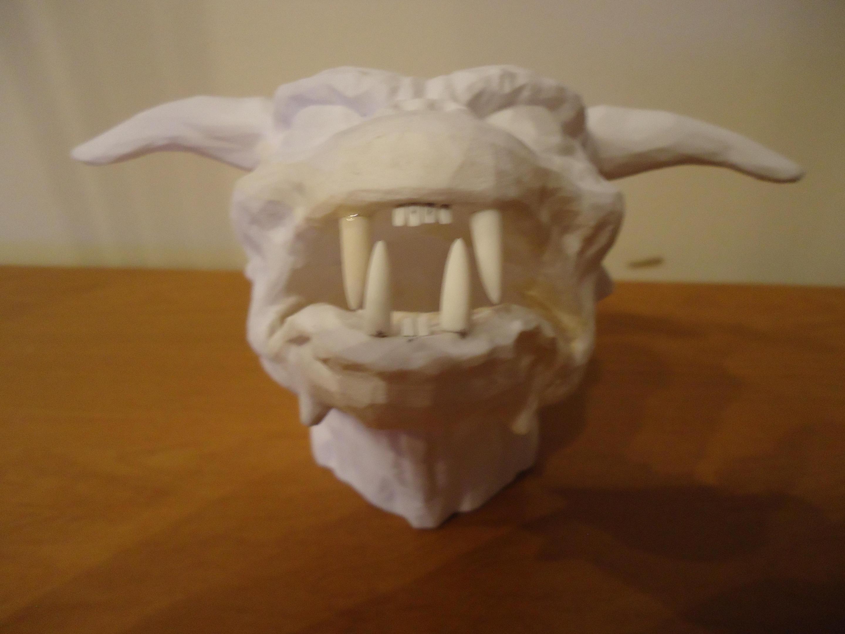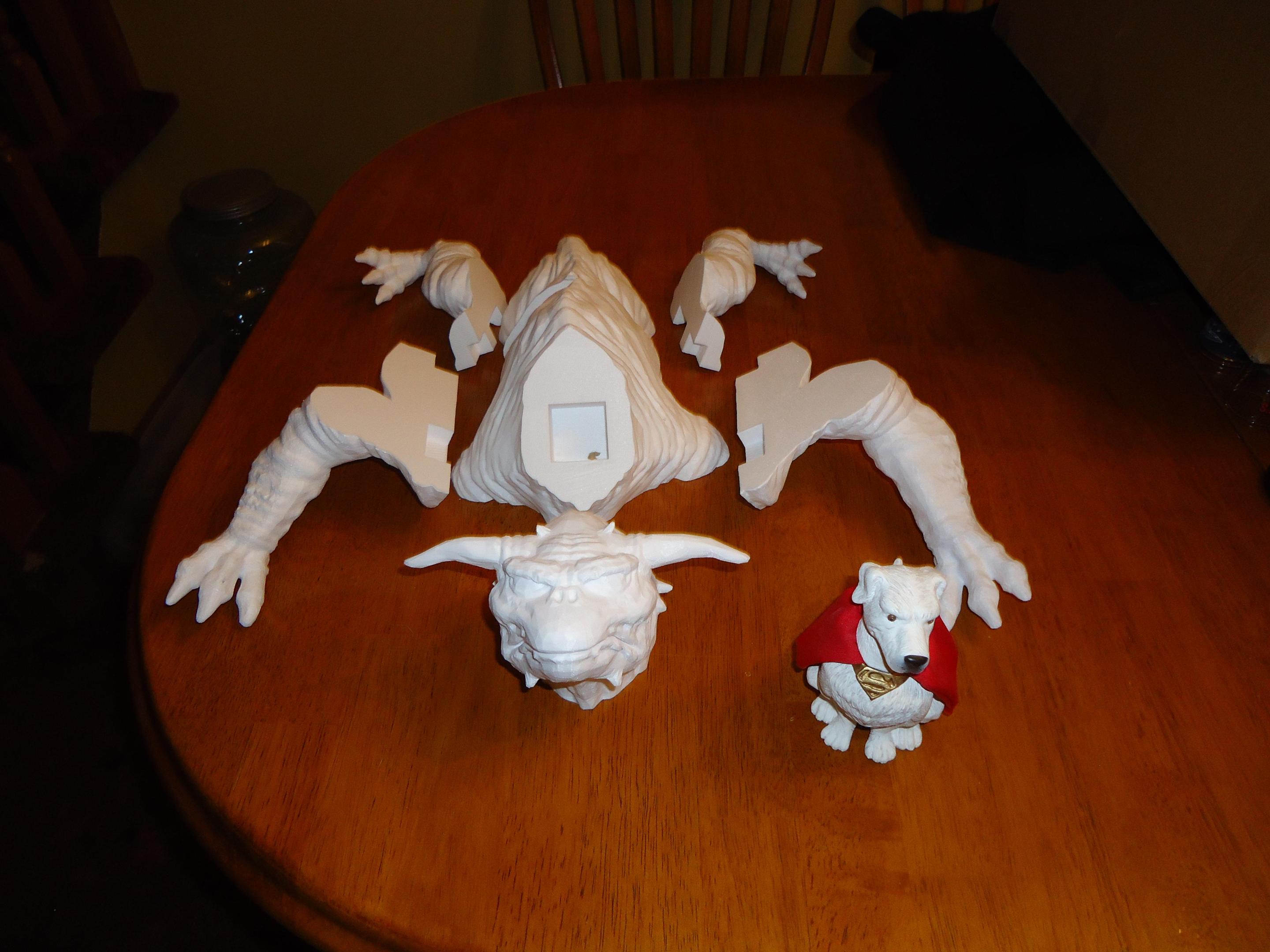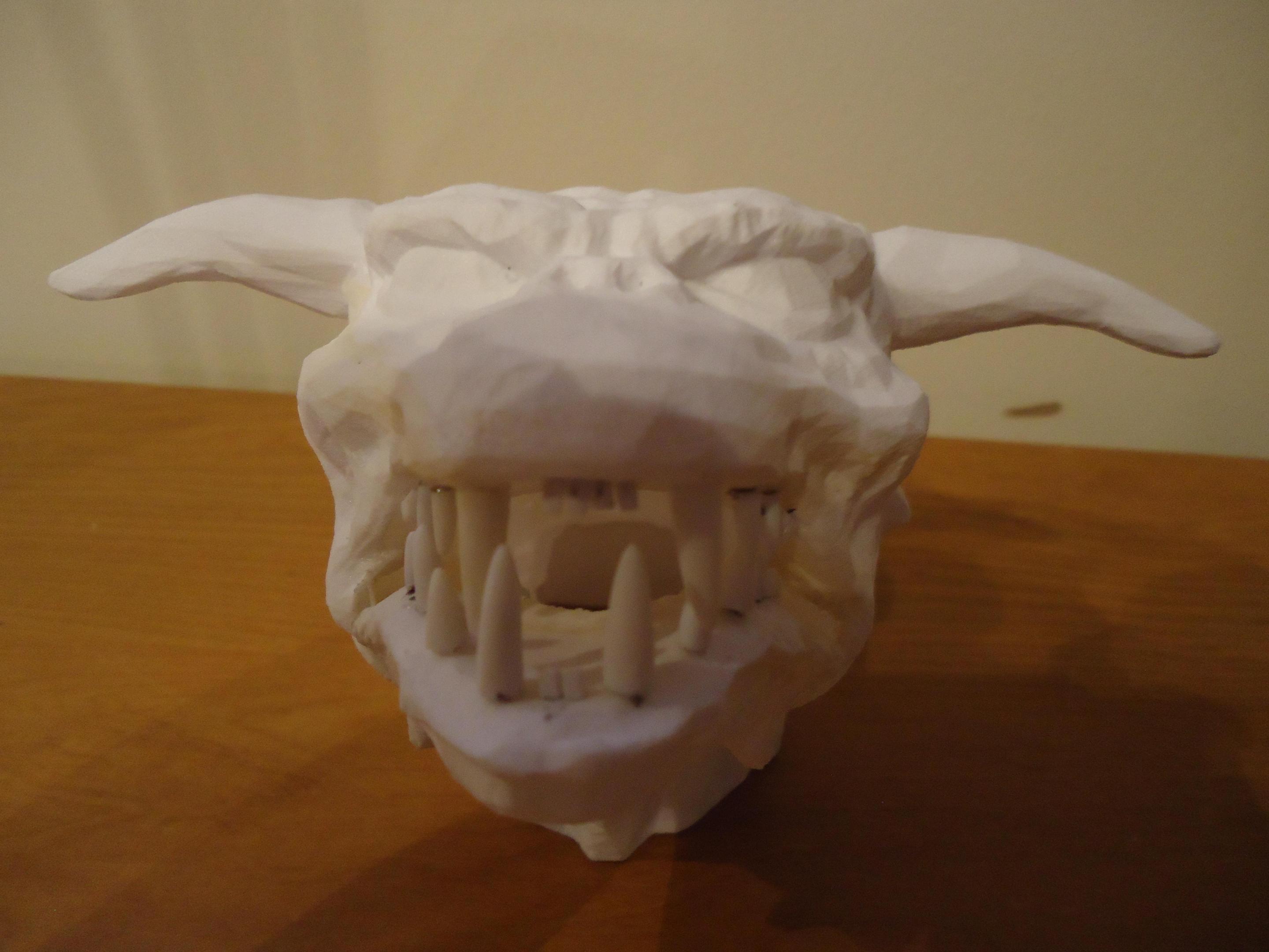 This is the terror dog from Ghostbusters. It is about 1/4 scale and about 18 inches long. I have the mouth cut open as I want to add the teeth give it a more interesting look. I hope to light the eyes, so we'll see. I have thelarge pieces together so next will be to focus on the mouth. This is what I have so far. Hope you like it. Jerry