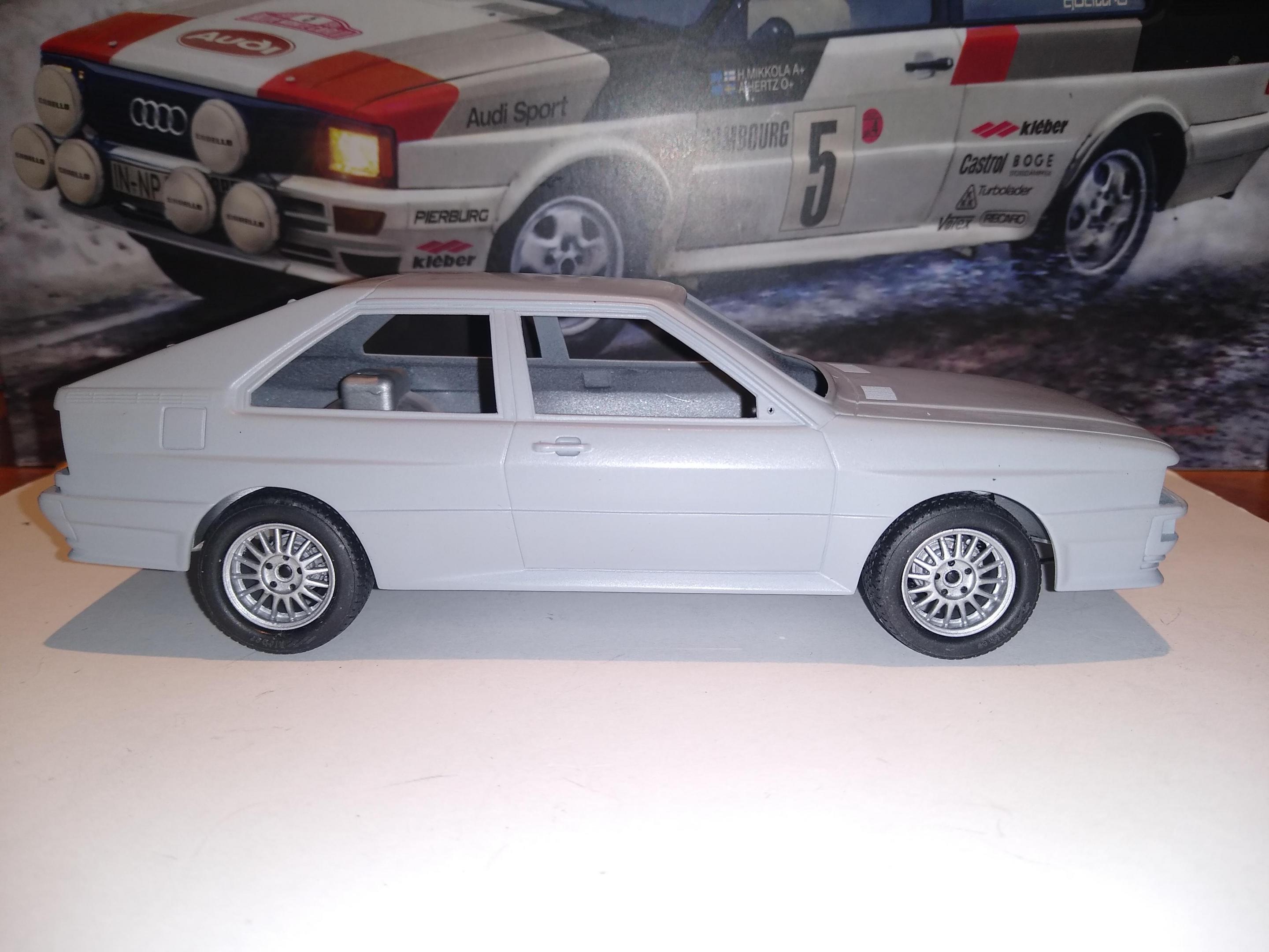 #5 Audi Quattro Got the running gear assembled. Had a bit of an unexpected battle to get everything sitting right in the body but I think I won in the end. Quite pleased with my first attempt at a custom exhaust system ?