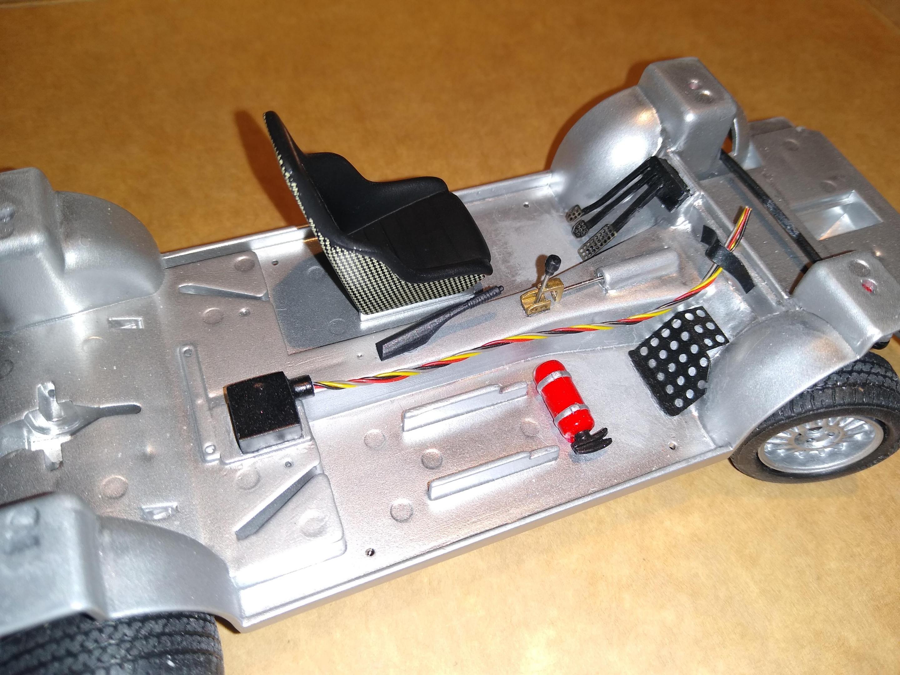 #5 Audi Quattro Gone quiet here - nothing but the sound of Anthony screwing down his hobby room floor! ? Got the body painted & clear coated the other day: Really pleased with the colour, which is Tamiya light gunmetal. Not so pleased that I didn't put enough undercoat on the roof after re-scribing the panel line & now have the dreaded "white line" that reveals itself after you finish the clear coar and take a flash photo! ☹️ Not the first time it's happened & I've developed a hack where I mask it off & touch up with a brush before the panel wash. Also started assembling the interior: Installed the scratch built gear shifter, plus the PE pedals & co-driver footplate together with some foot scuff marks. Decided to run the wiring loom into a SB junction box so I don't have to think about where it all goes after that! Thanks for looking & get Cannonballing, y'all! ?