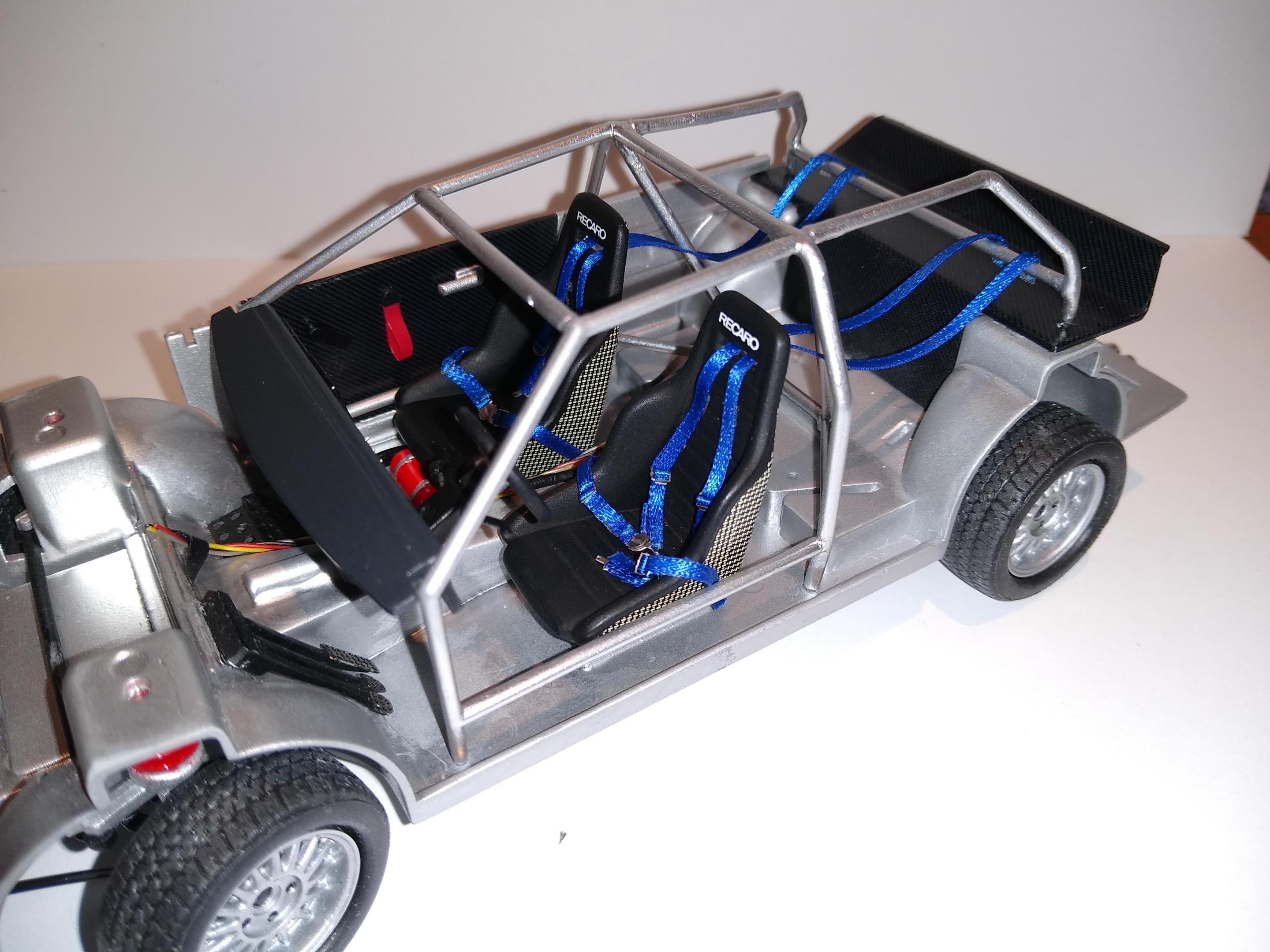 Wow, @Pat Minarick those two look great! Love the weathered bodywork, it looks so realistic. I've officially finished my Audi interior. I decided to do a carbon fibre rear firewall and door cards to go with the Kevlar seats in the name of weight saving/looking cool! It was easier to decal on a flat surface so I stripped the doors and added scratch built winders, levers & pulls. Tried using double sided tape for the belt ribbons - ok, but fiddly & will take some practice. Just waiting for the clear coat to dry on the bodywork now. Keep on Cannonballin' y'all!! ?