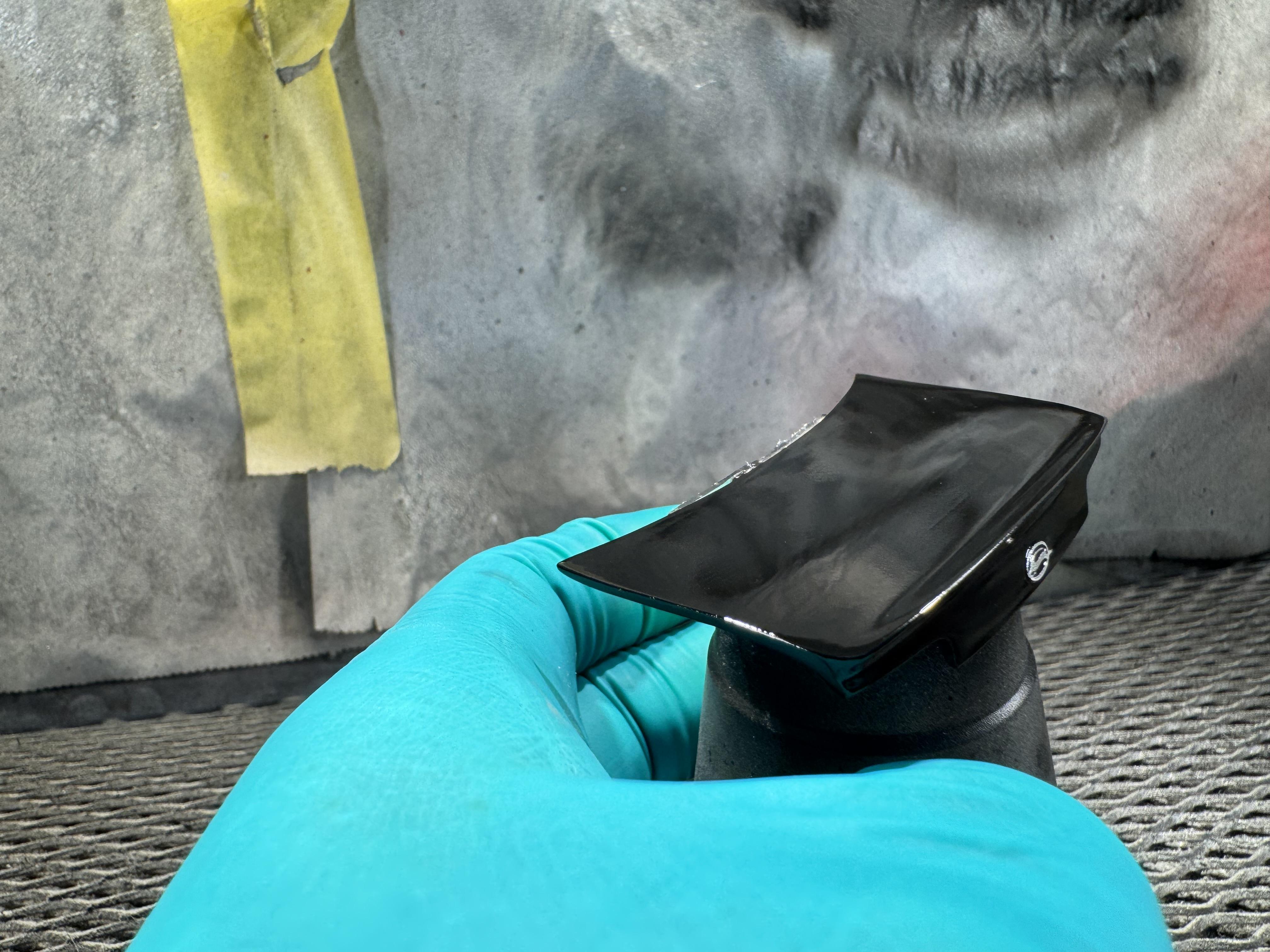 Was laying some black paint on the booth lid, had a problem with sanding through when polishing. So I stripped it and put bmf on the emblem and painted again. Looks good straight out of the AB, LP Clear is not as “hot” as TS clear which is good. Did an other wet coat after this. .