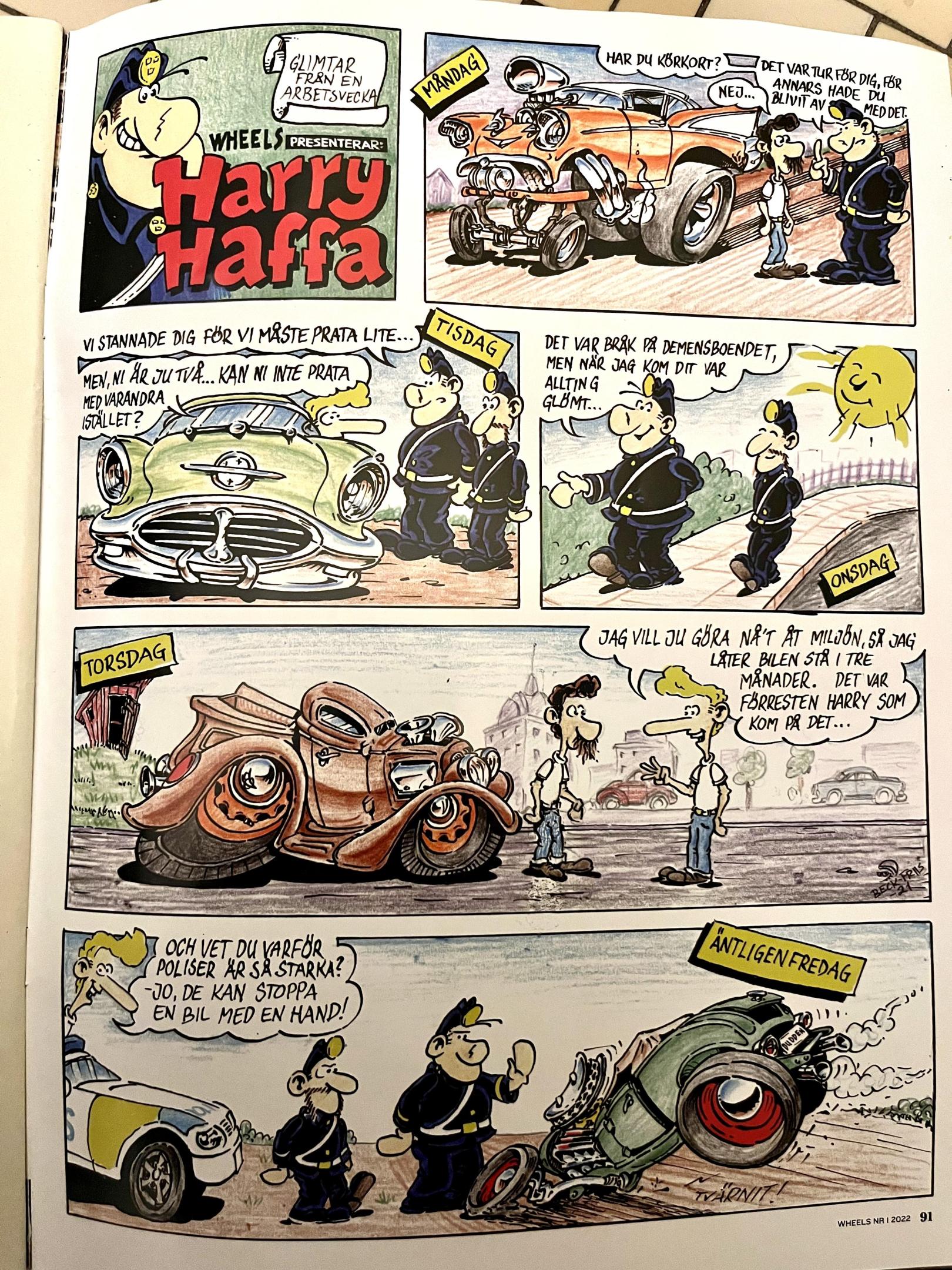 6. I was browsing some mags when I thought about sharing some Swedish car comics. It’s the same characters in al of them and they are found in the back of the magazine Wheels. The main character is Wille Wheelie. The police is called Harry Haffa which is a slang for police. I just did automated google translate so I hope it’s some what “correct” ? it’s allot of slang in the original. And I see that it’s messed up but it might be fun any how! Haha! original: