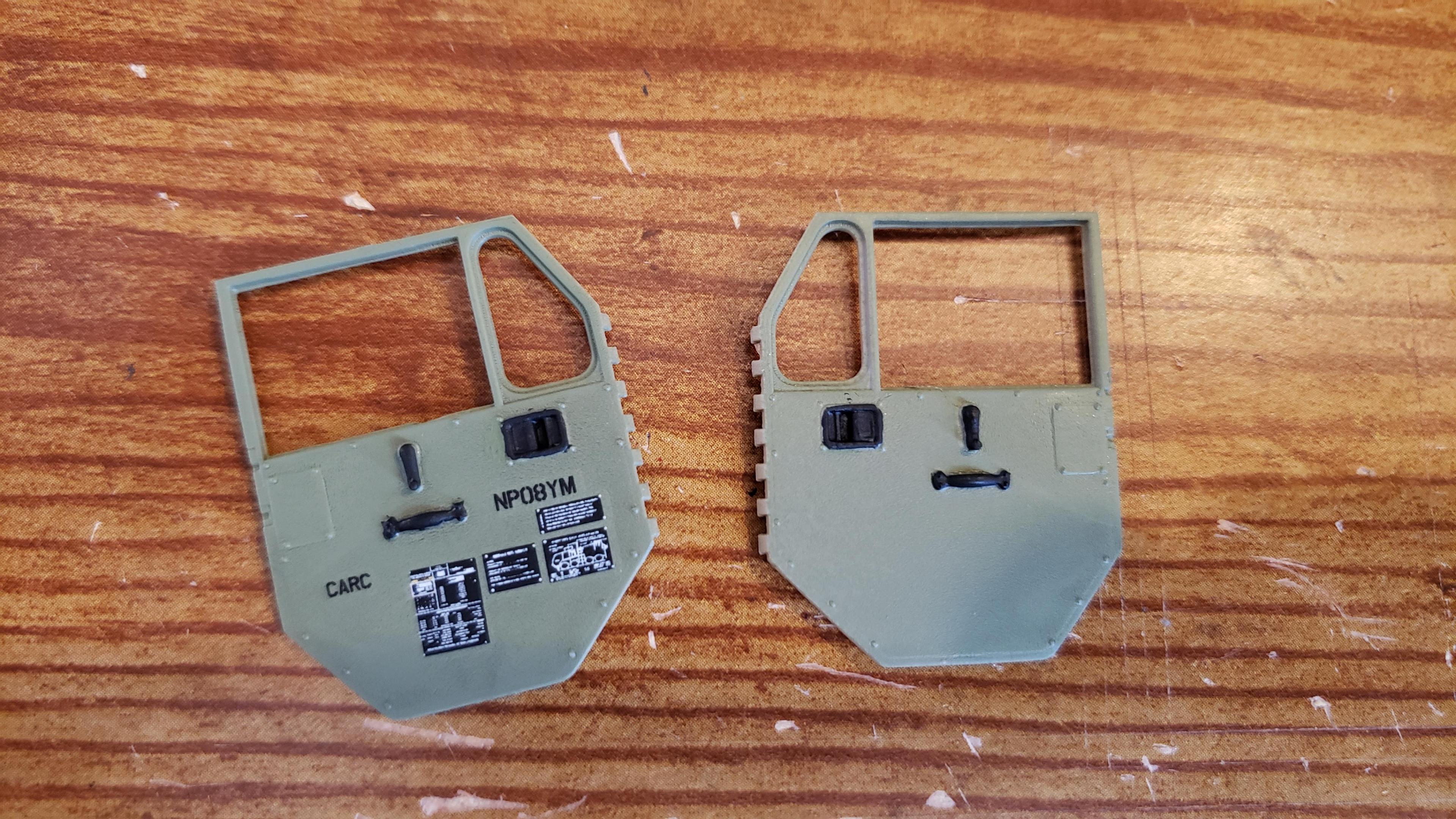The CARC decal goes on the inside of driver's door. I searched for photos, and found a few "walk around" photo sets. I verified it this way I agree, it should be SGT Engelmann. I got rid of the space, and used hydraulic oil decal. Couldn't use Diesee Fuel, drain air tank saile, allcu for expansion, etc. I found that a lot of the decal placement as per instructions are incorrect also. For instance, it shows the decal for the gear shifter as going underneath the dashboard on passenger side. Besides the decals, this is a great kit -