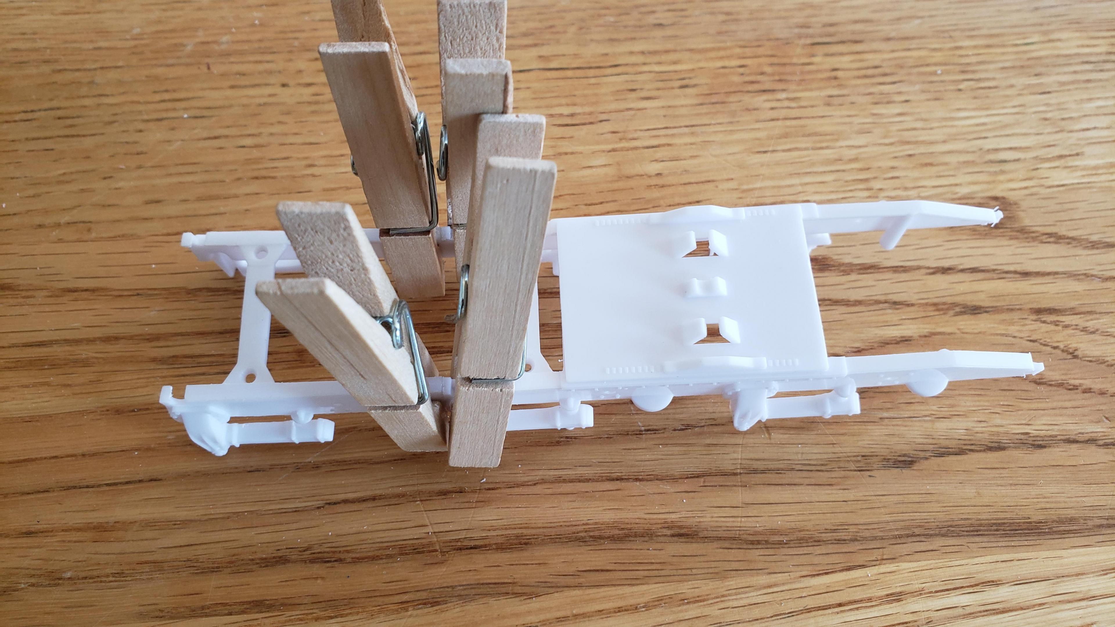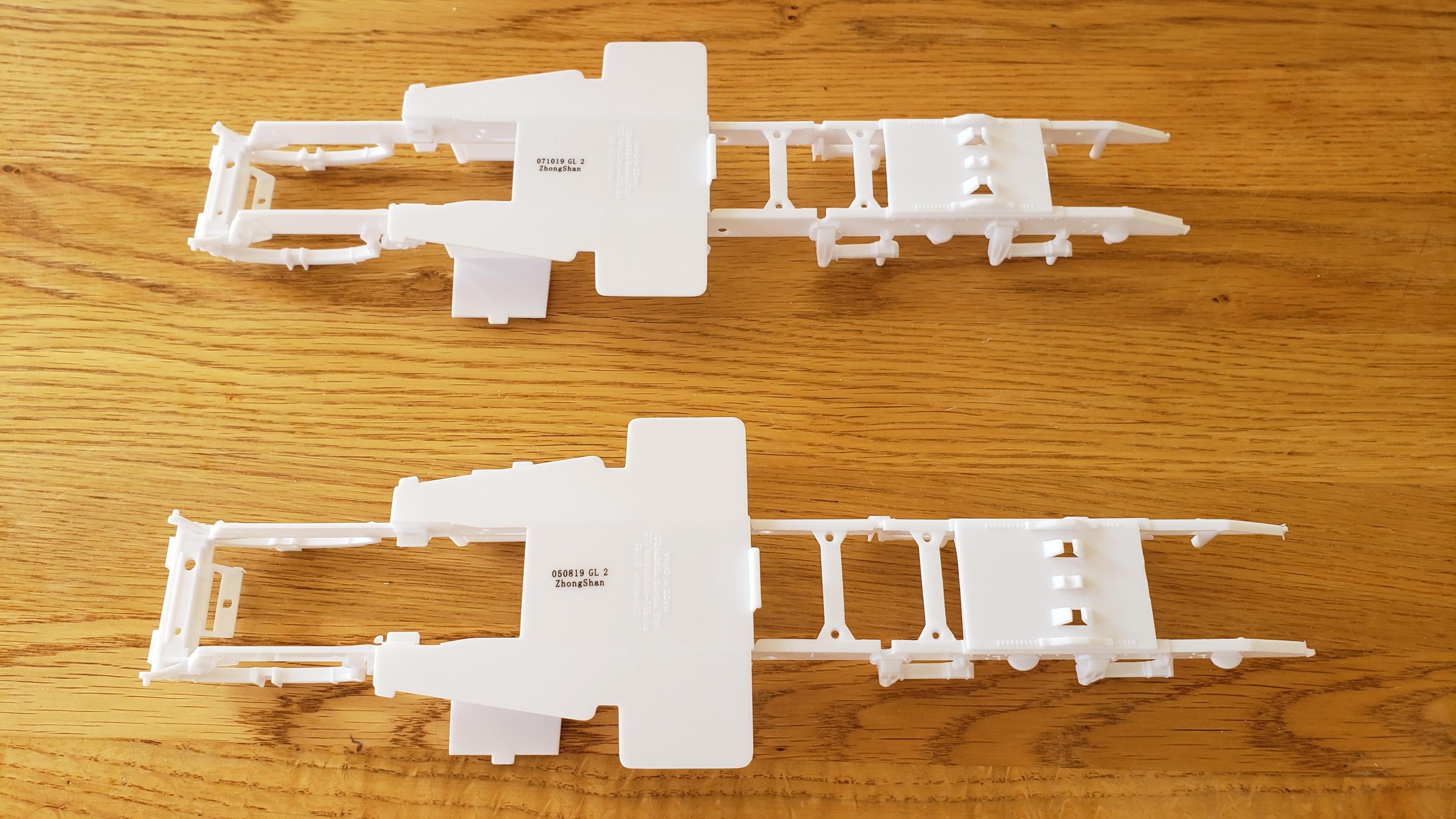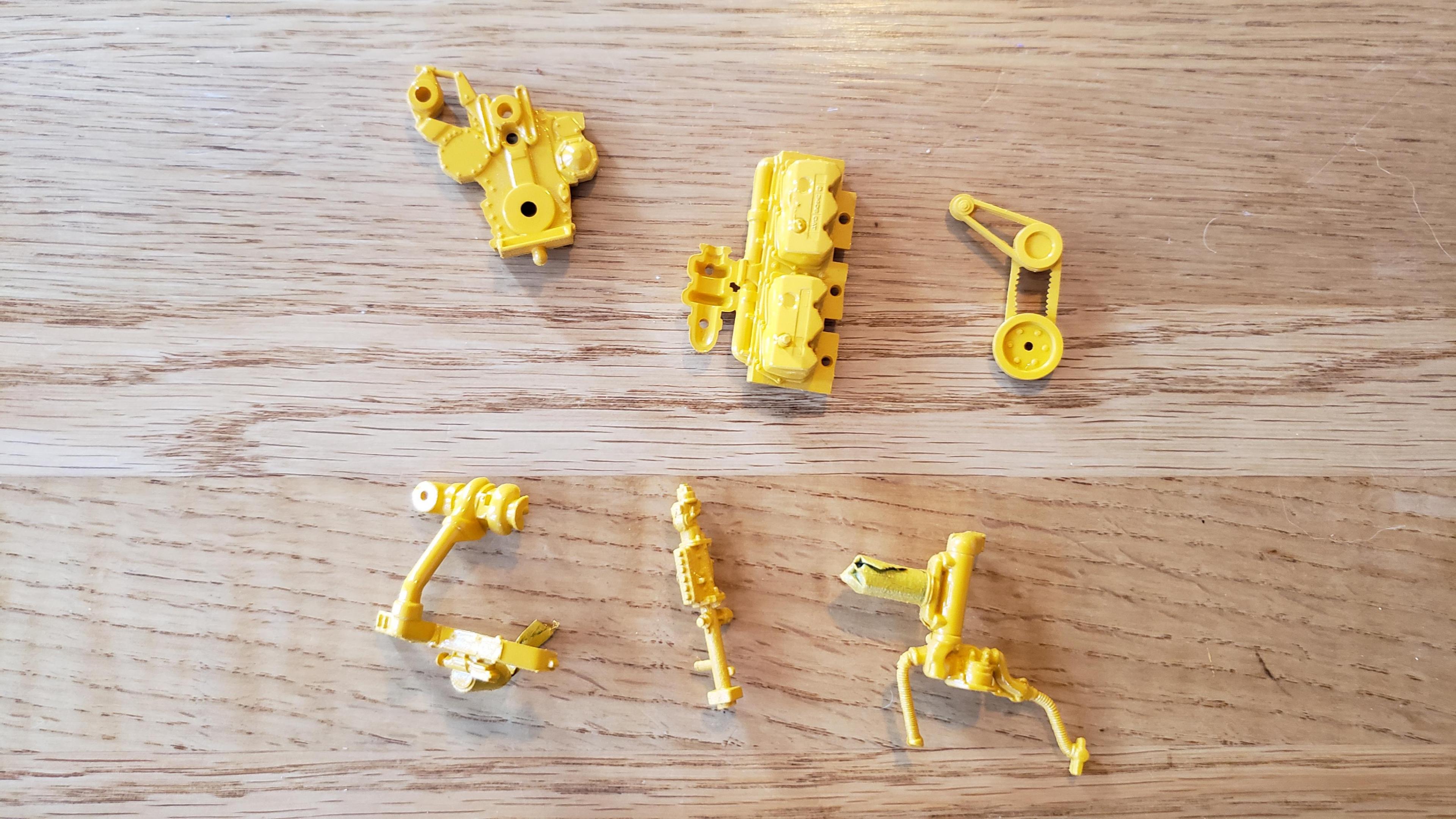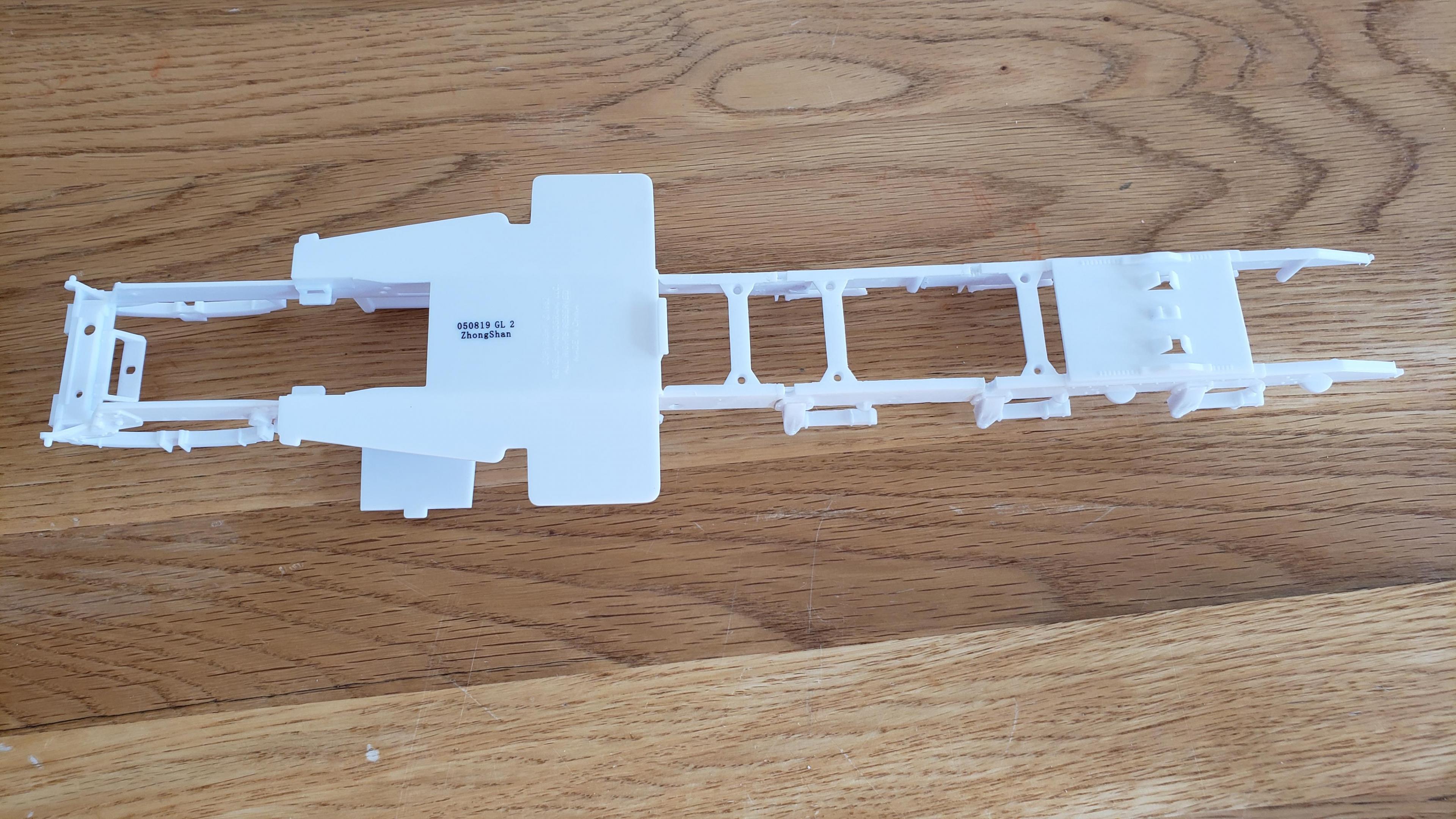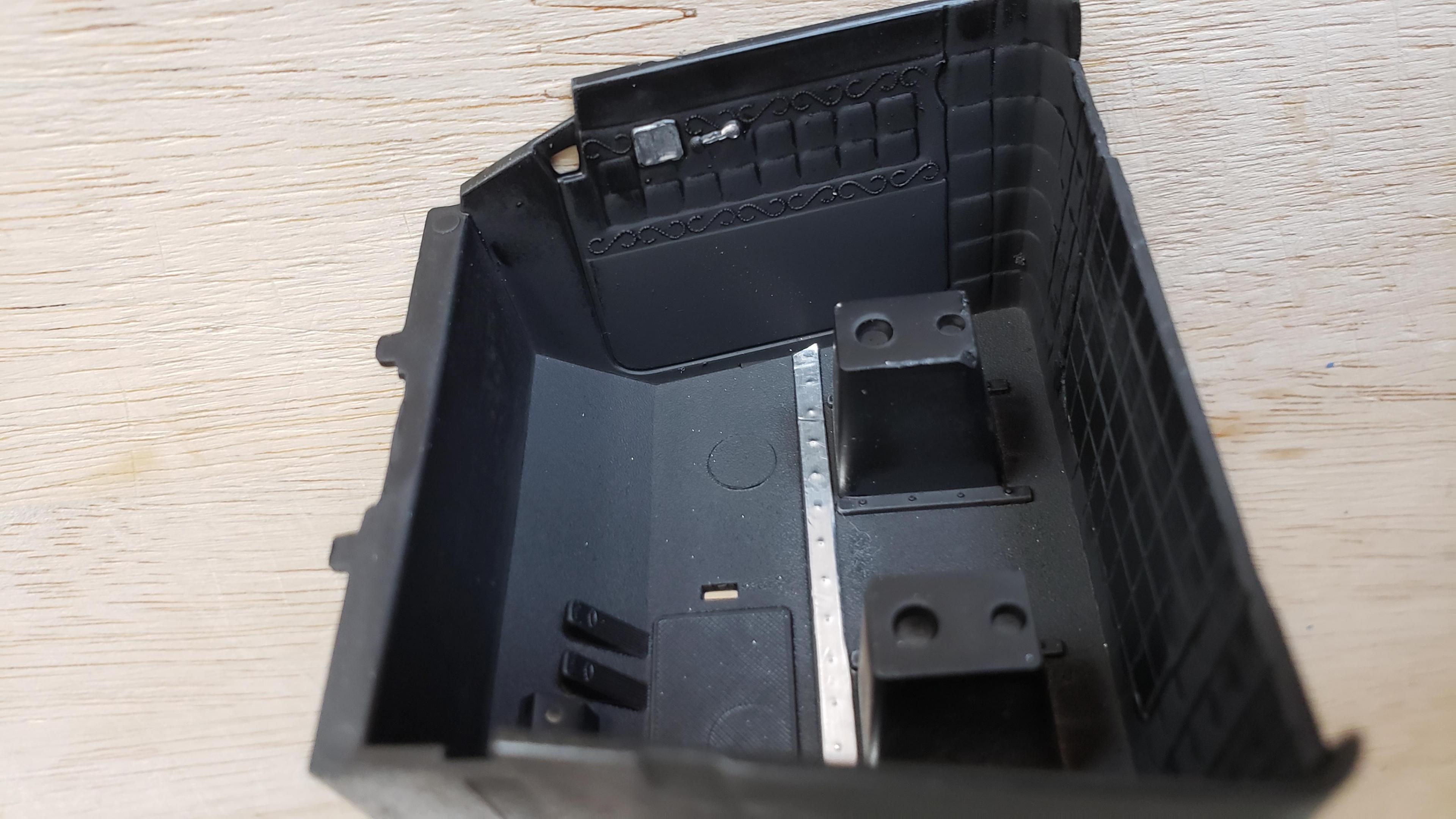 I got a bunch more work done this weekend. First I fixed the engine front cover which had a paint malfunction. I got back to work on the frame. I made some cozad ramps for picking up double drop trailers. First I made the side plates Mounted them on the frame Then put the ramps on And some crossmembers The frame is too narrow where the sleeper was molded on, so I added strips to bring it to the correct width, as well as add some strength I also got the lift axle built. I made it from 3/16 rod And here's what I wound up doing with the suspension for it. Not perfect, but it will suffice Then I worked on the interior. I cut the bunk off I made a filler section from sheet, and scribed the pattern on it. And a little bit of detail work And a couple more bits I made a pogo stick from sprue, and a deck plate from sheet And some various other random parts I had a lot of fun this weekend, and made a lot of progress. Thanks for looking! -