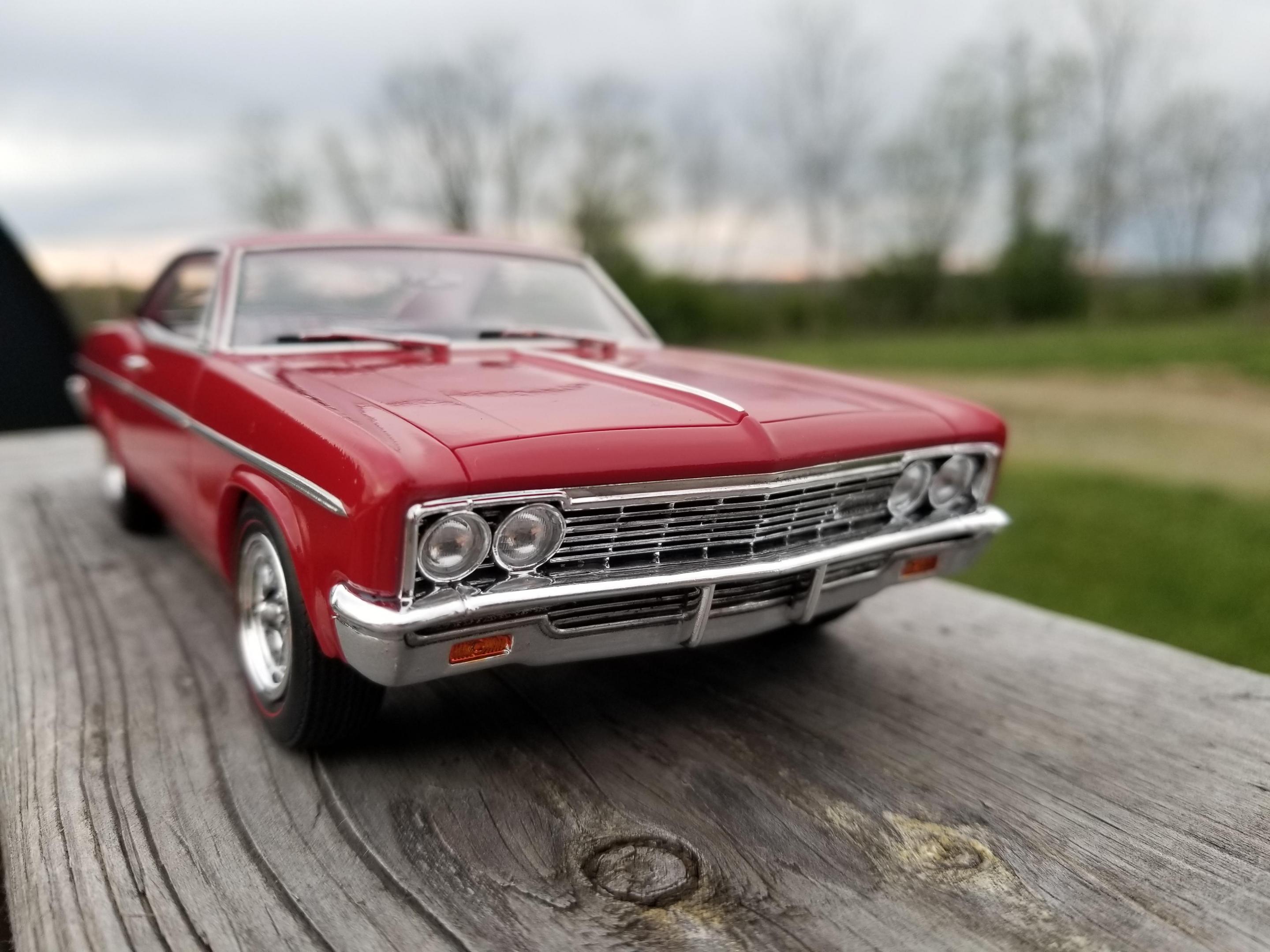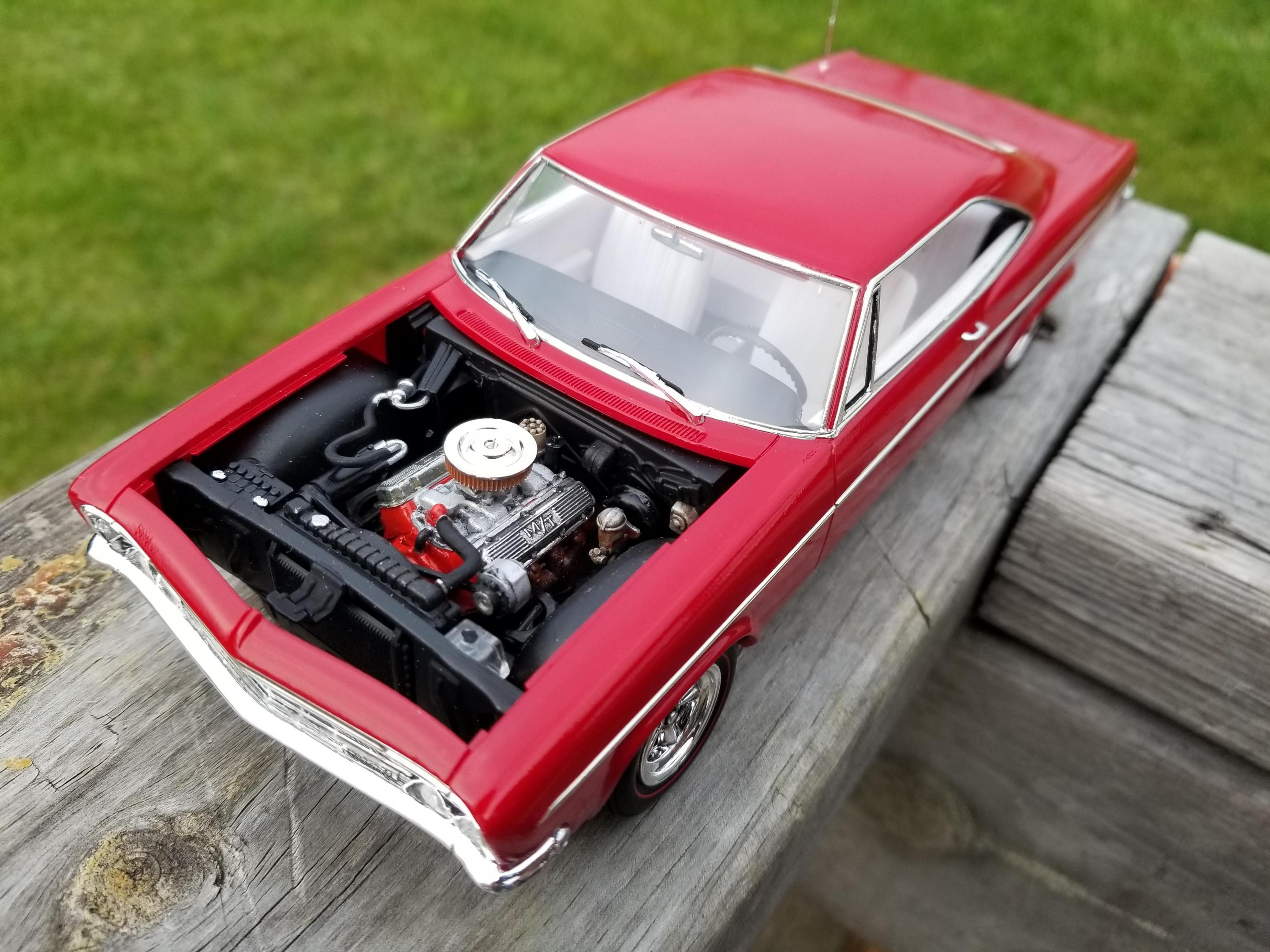 Just finished today. This quarantine really speeds up the build process! I started on it less than two weeks ago. Paint is Testor's Flame Red with their wet-look clear. Rims came from an Amt/Lindberg Dodge 330 with the redline tires from the Dirty Donny GTX. The air cleaner and valve covers are from my junk box. I didnt put the mirrors on (I'll just knock them off by accident) and there's still some Turtlewax in the panel lines. I also shaved the emblems, as they're getting harder to paint as I age lol