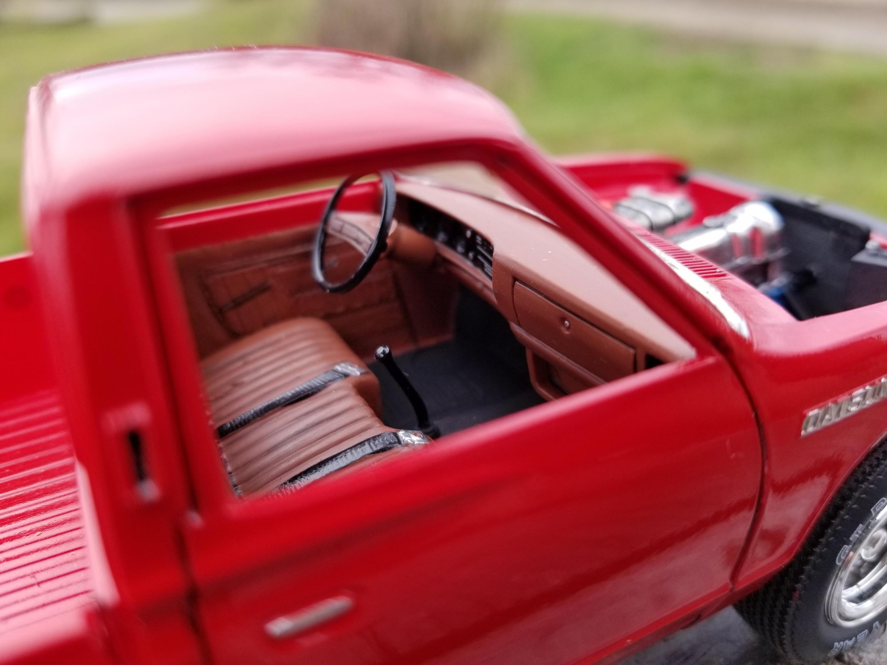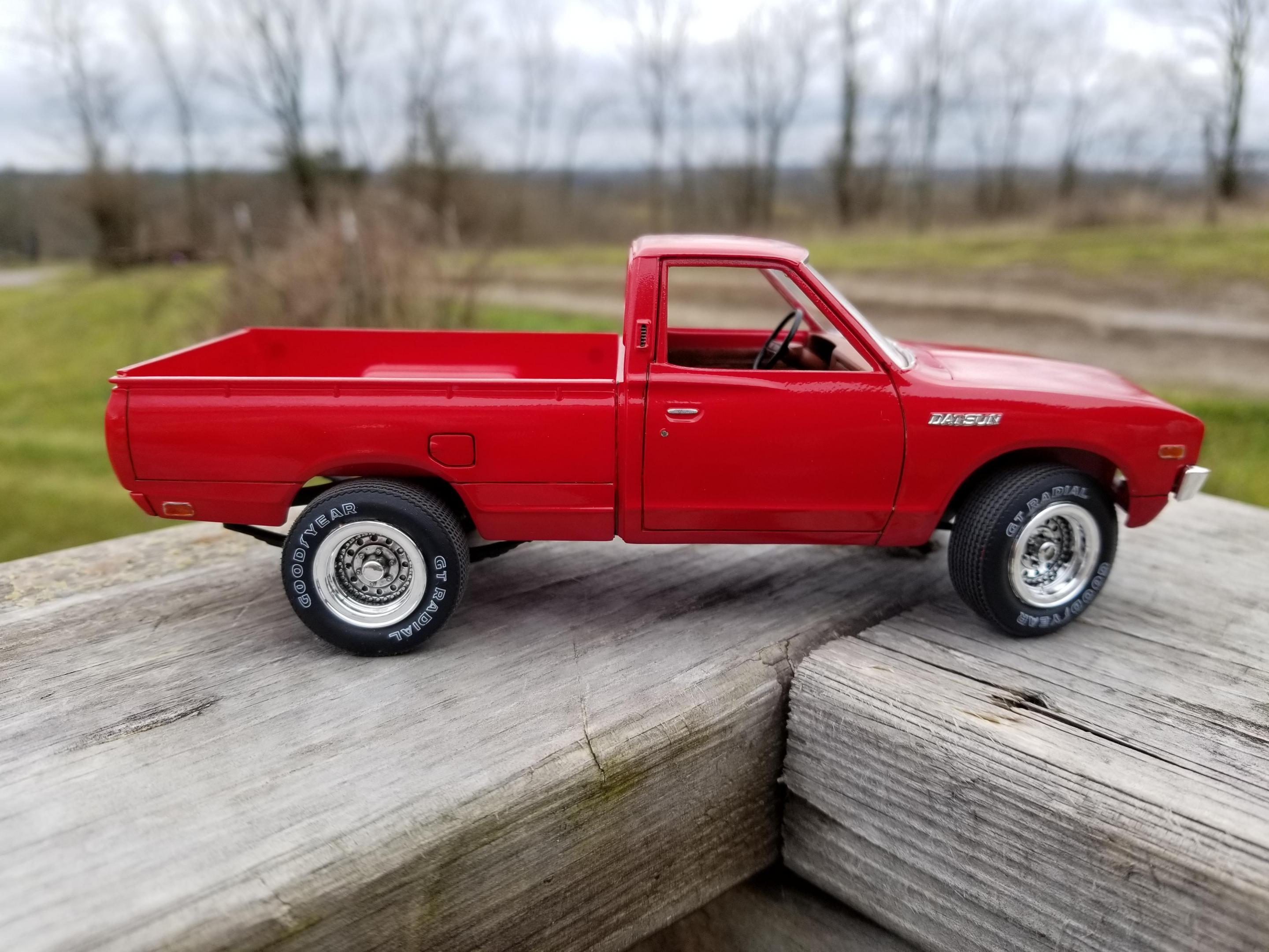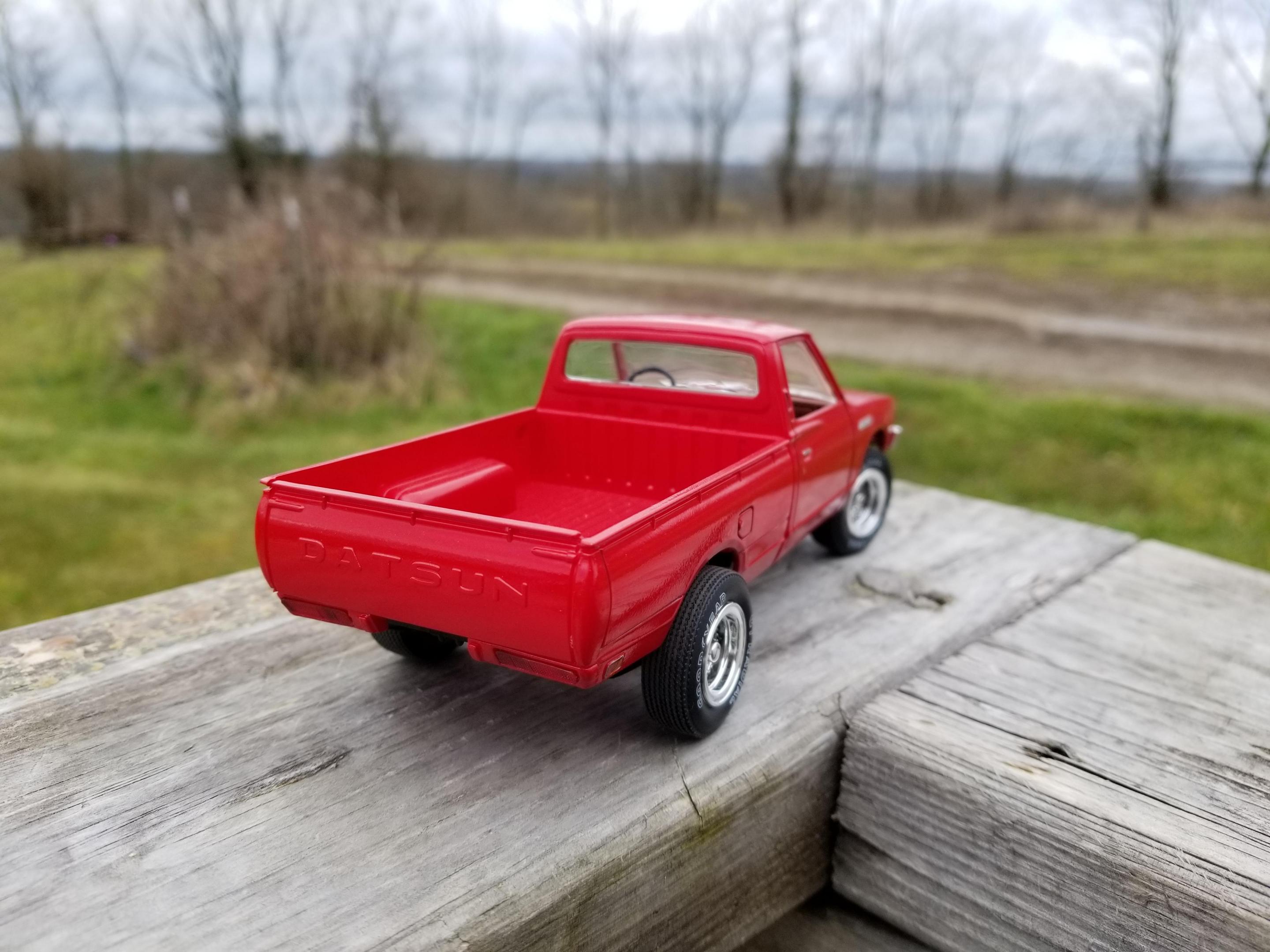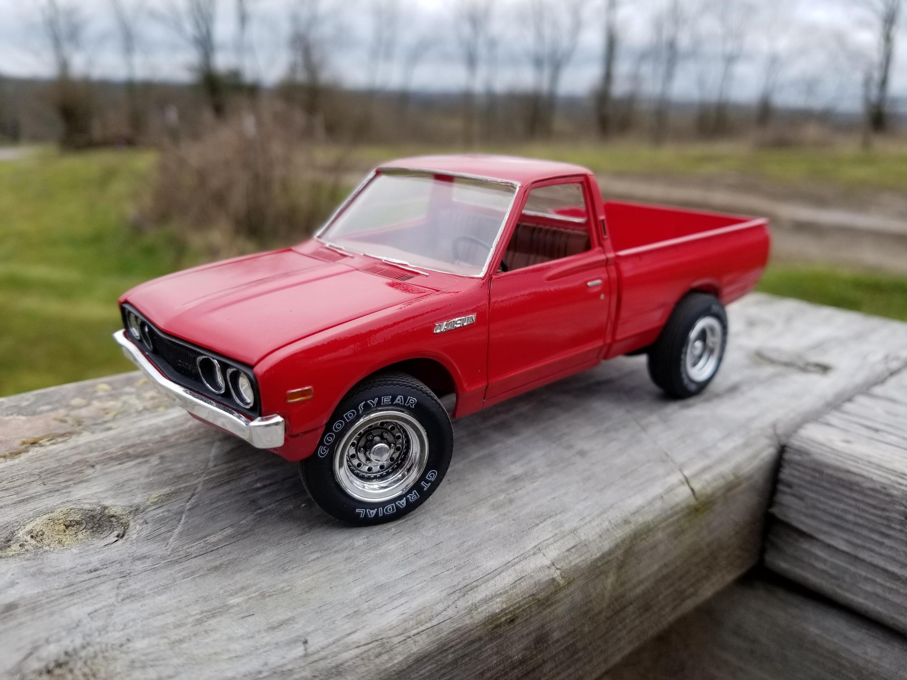 Built mostly out of the box, except for the little Edelbrock air cleaner, and the custom rims from the amt/mpc 69 Firebird (who knows why they included 6 lug wheels lol) Paint is Testors GM Flame Red. I built it to look like the 76 Toyota that my dad had when I was a kid.