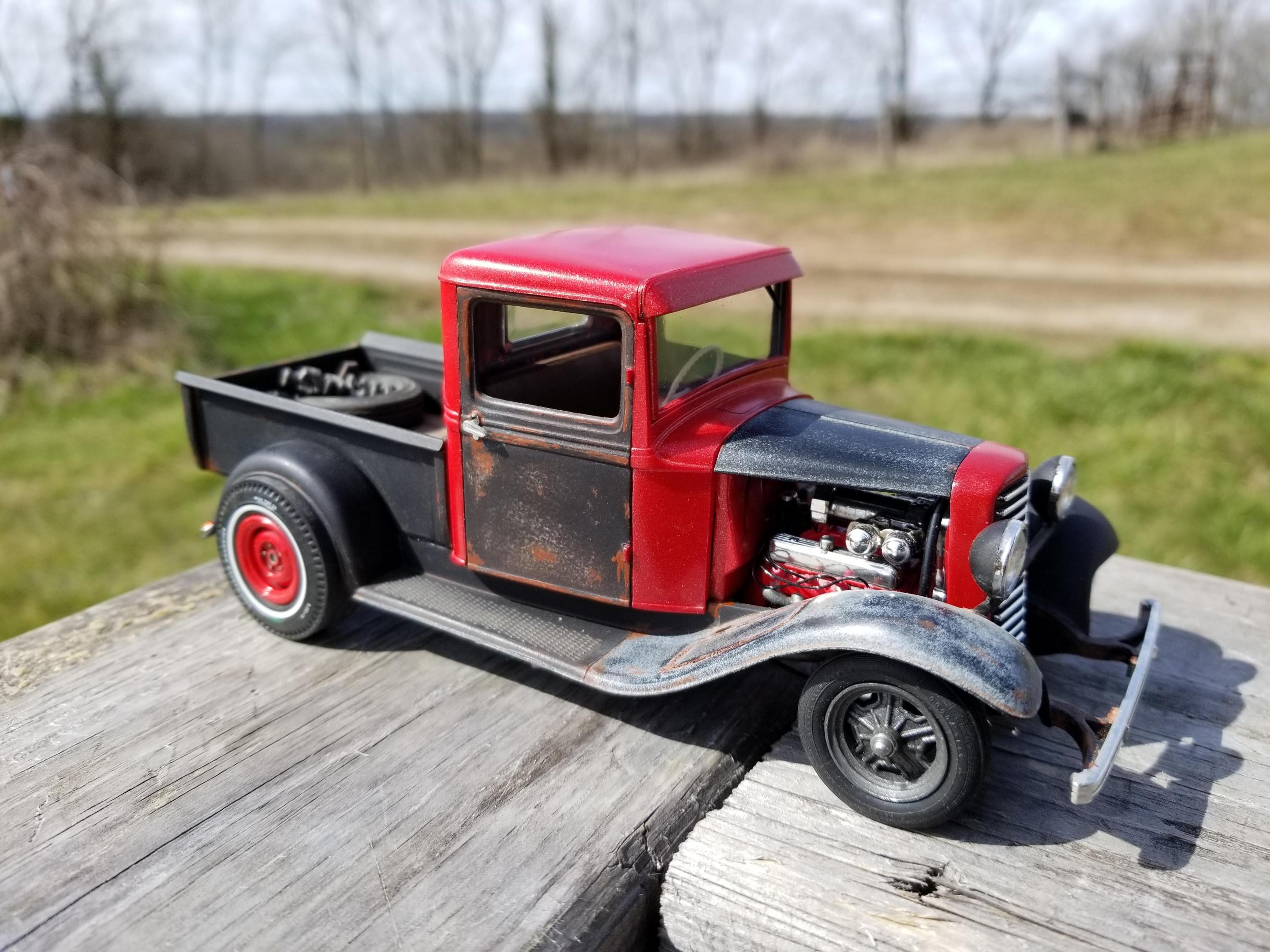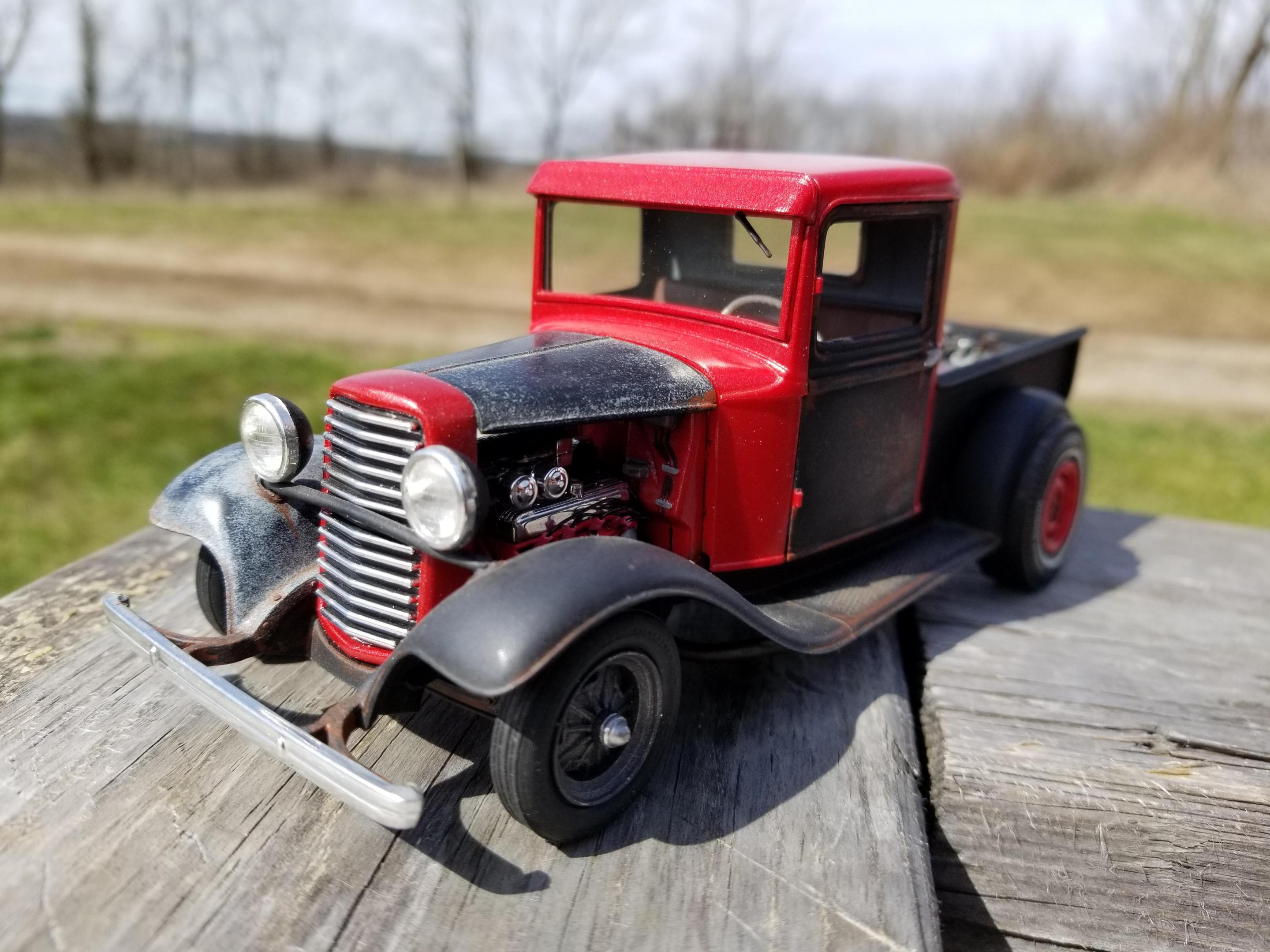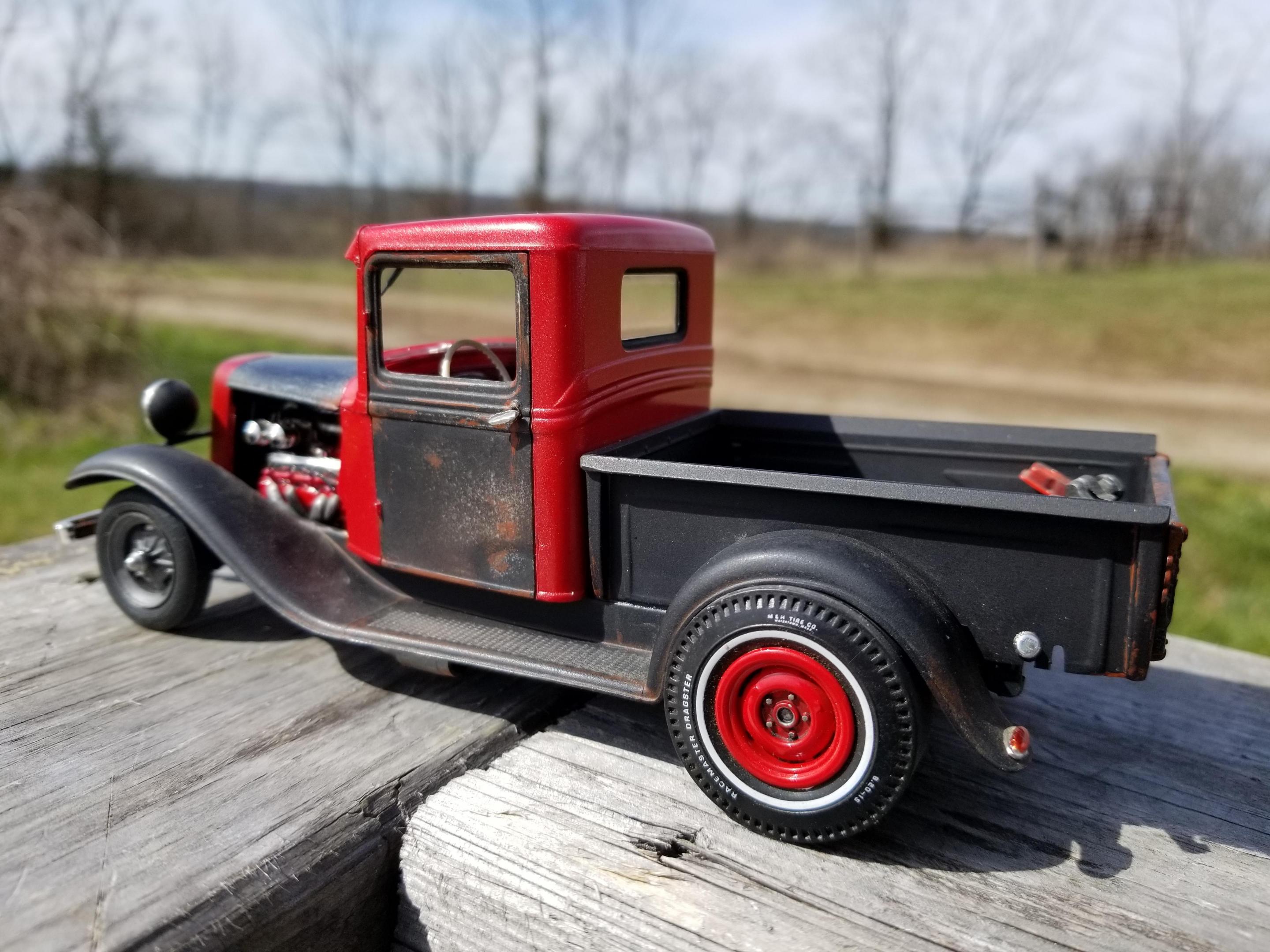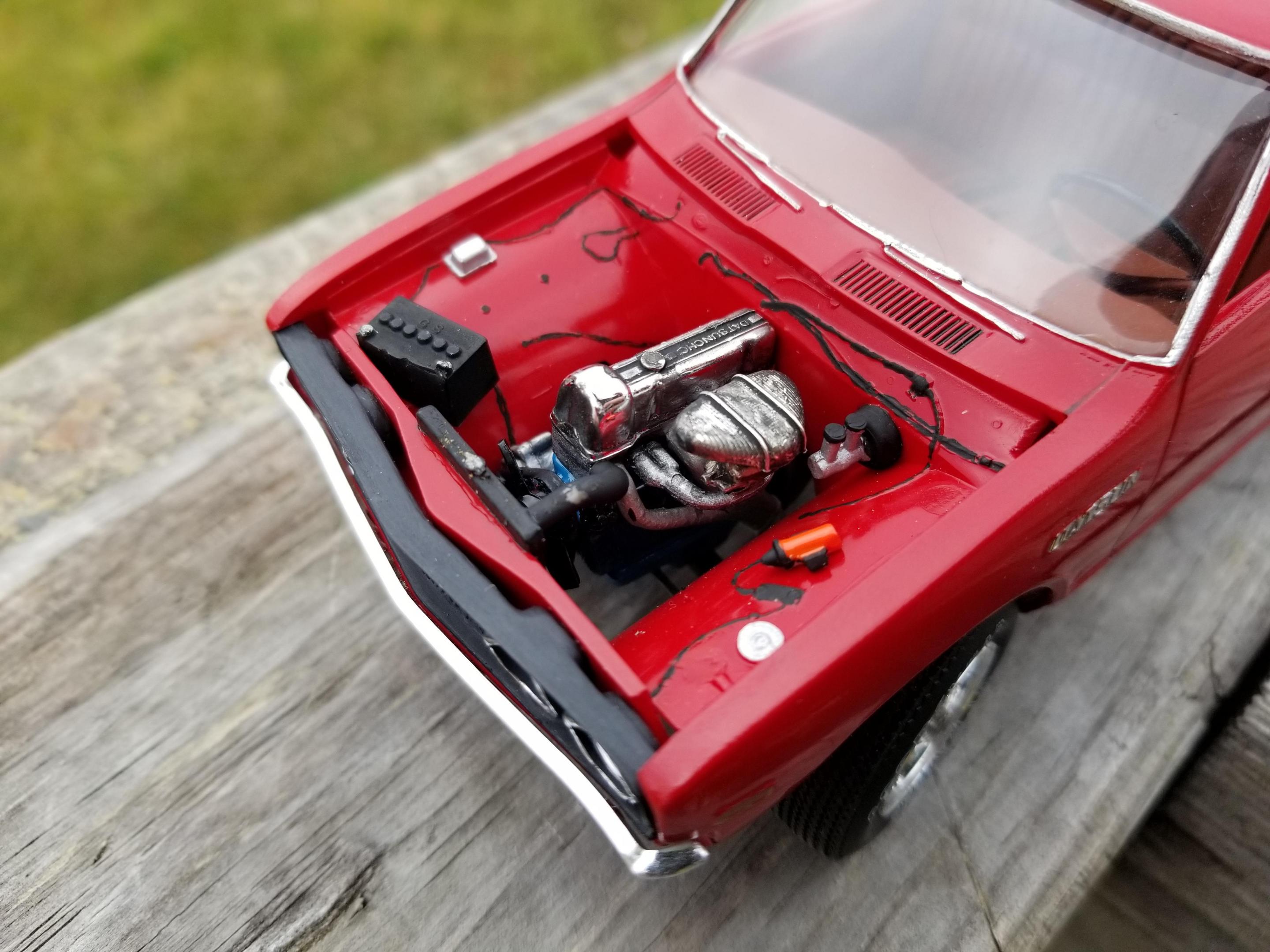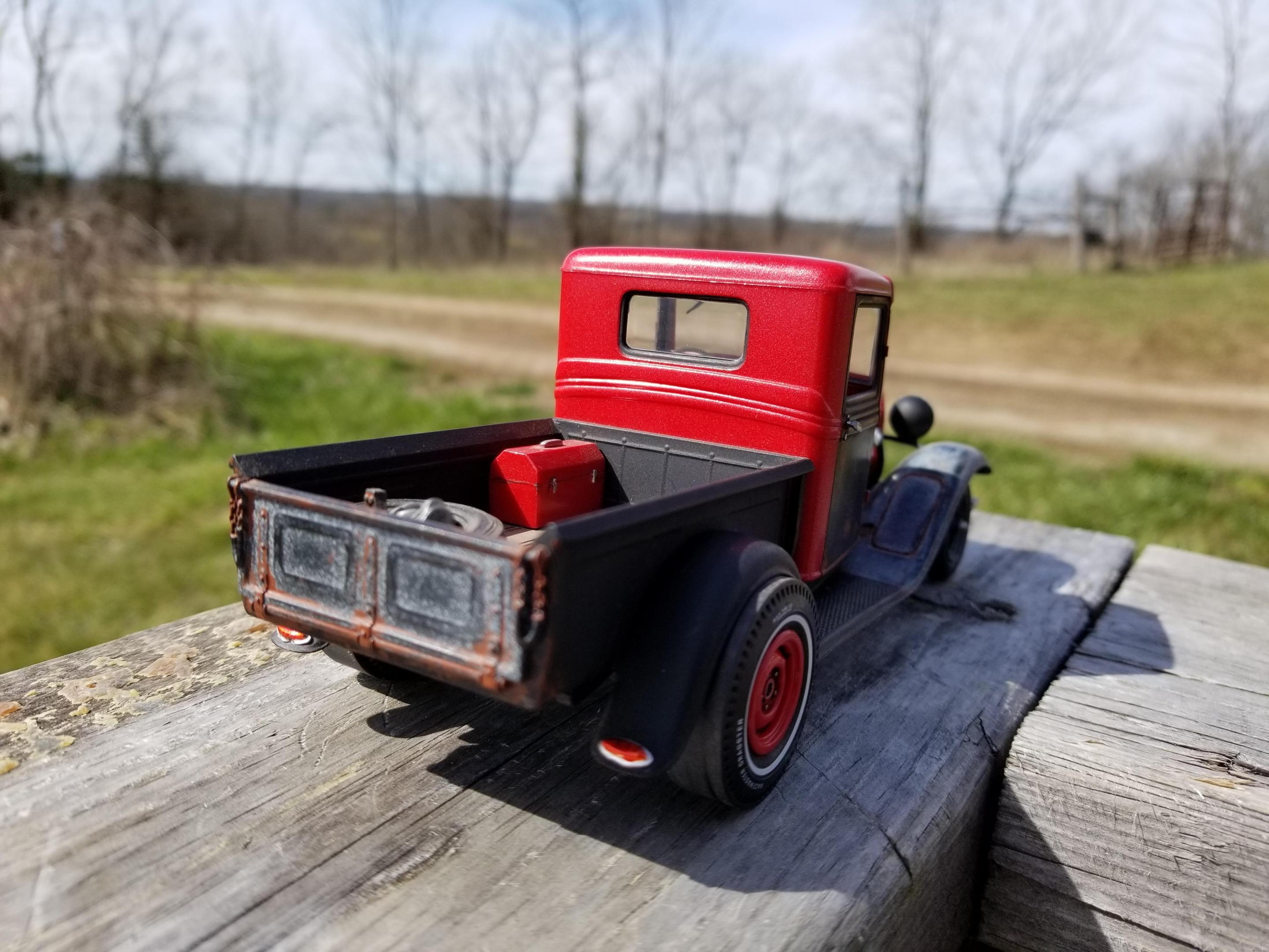 Built mostly out of the box, except for the little Edelbrock air cleaner, and the custom rims from the amt/mpc 69 Firebird (who knows why they included 6 lug wheels lol) Paint is Testors GM Flame Red. I built it to look like the 76 Toyota that my dad had when I was a kid.