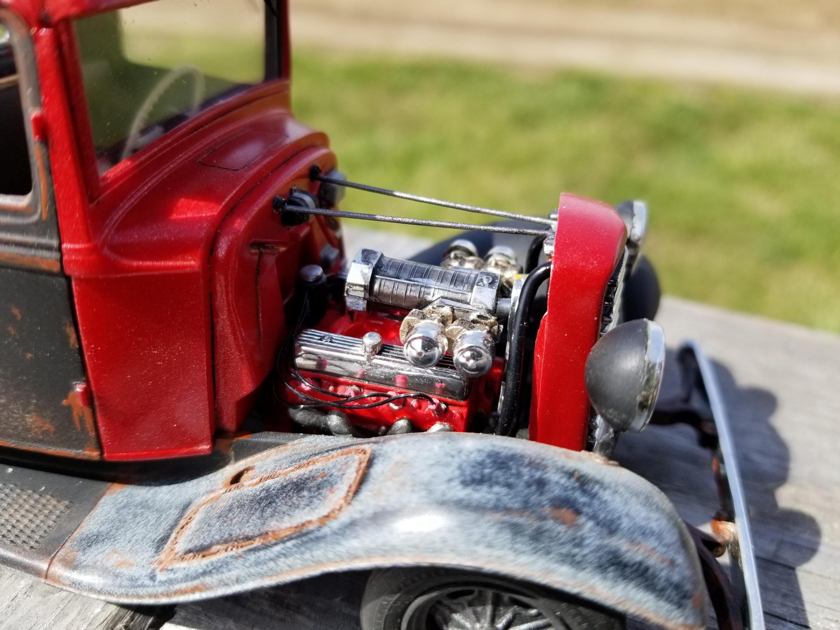 Thanks! The grill conversion was fairly easy. I dug through my parts box until I found a pair of round headlights that looked to be the appropriate size. 30s-40s vehicles usually have decent ones. Next I drilled out the molded-in square lights to fit the new round set, then paint the bezels black. -