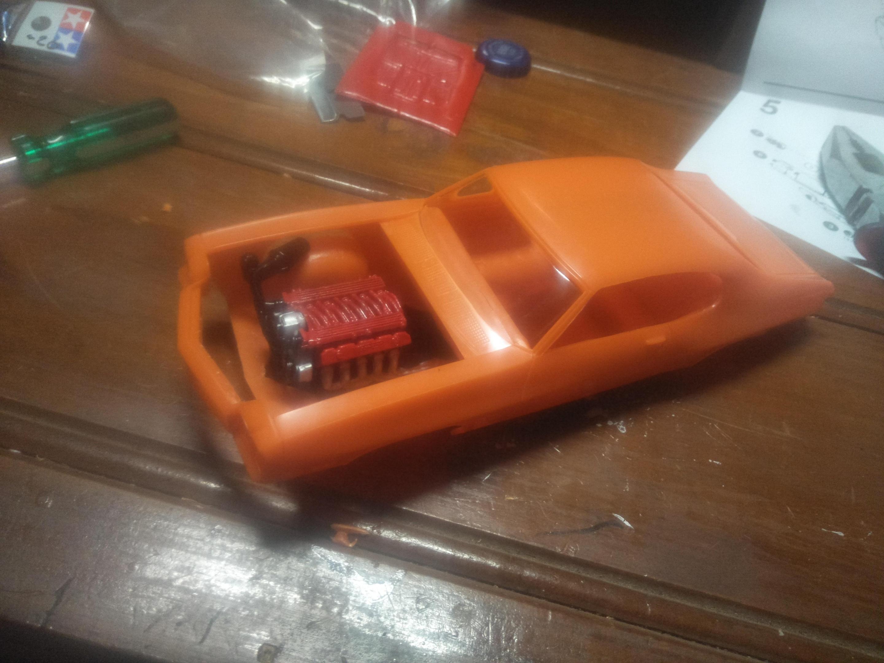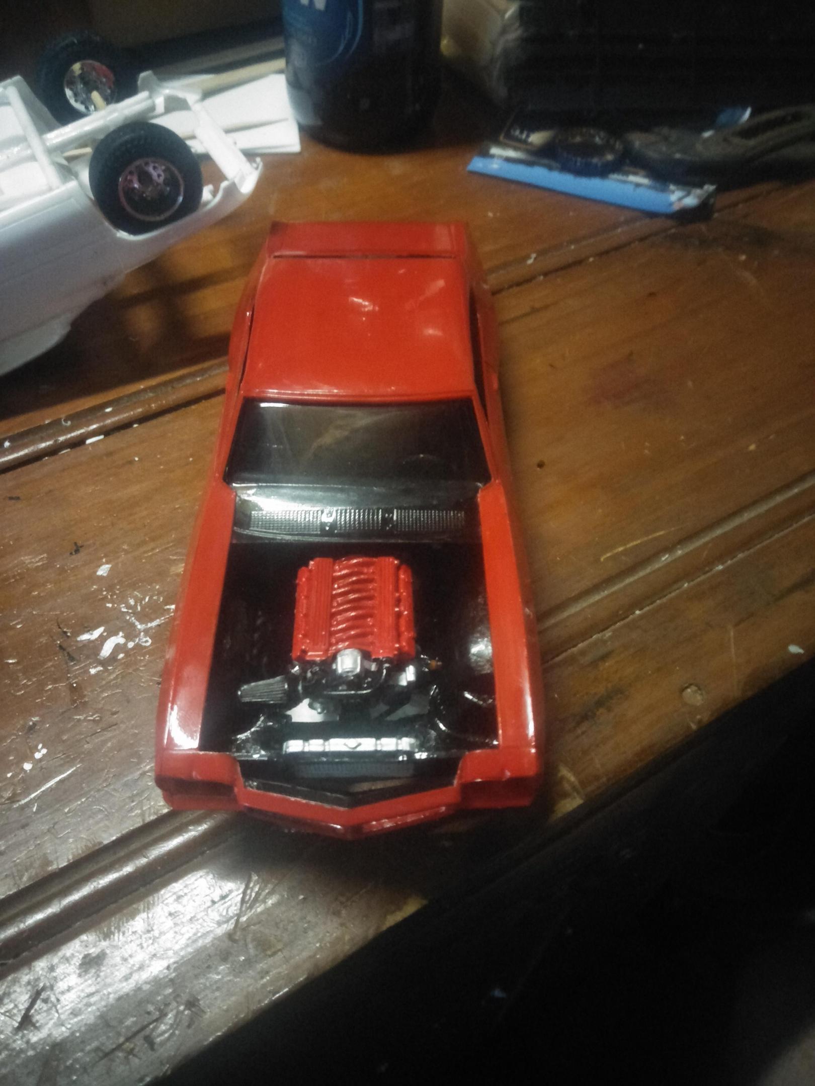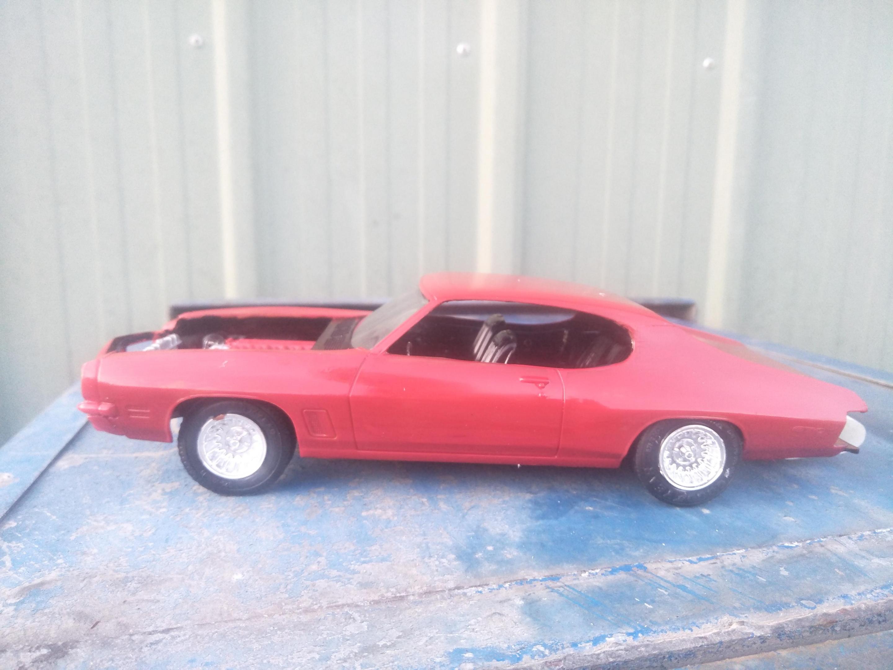 This is my first post. Just joined after looking on the net for some ideas and came across your forum. I purchased the GTO from a hobby shop and old mate said if I choose another id get $5 off. Not that he needed to twist my arm. Hence where the dodge viper V10 engine comes into play (original engine looked to small). After massaging the chassis and not putting the fire wall in the engine bay the V10 slotted in nicely. The bonnet fits on perfectly too. Once painted the model looks a cross between a HQ Holden Monaro and an XB Falcon Coupe here in the land down under. Will be looking at building more models in the future to include trucks as well. Found a half finished truck model that dad had as a kid so tinkered with that today as well.