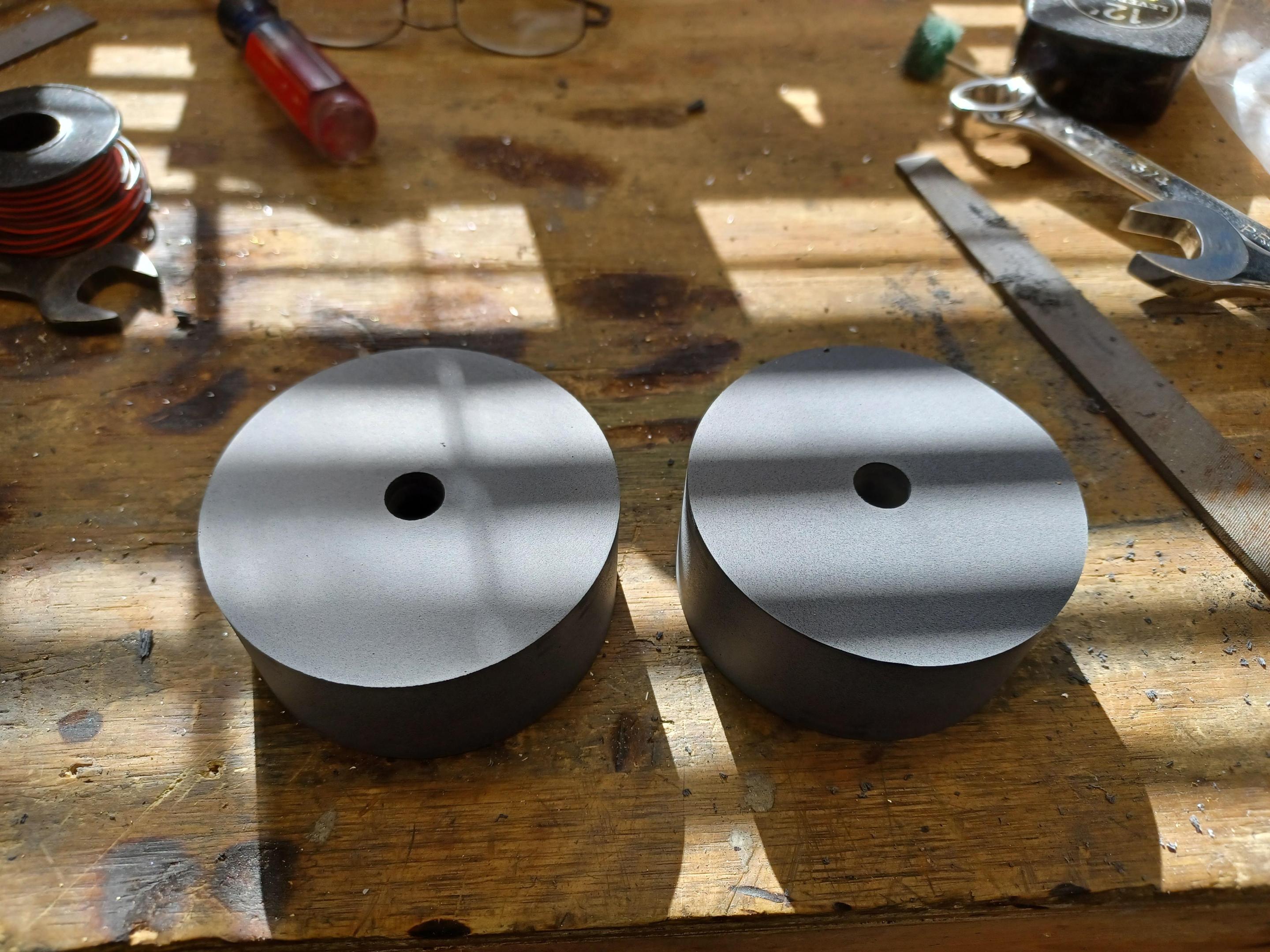 hi andrew ,yes , ijust used the bowls as a cheap way to make a round piece thicker than i needed from black 2 part polyurethane , it worked as planed but its not very black after machining. i felt that i could machine the tires better than i could machine molds for the 2 different size tires. have a great holiday. hi noel,nice to hear from you. i have purchased 2 sf. of black 1.5 oz leather and i think it will work fine. i appreciate the suggestions. the thin ladies gloves never occured to me. happy holidays