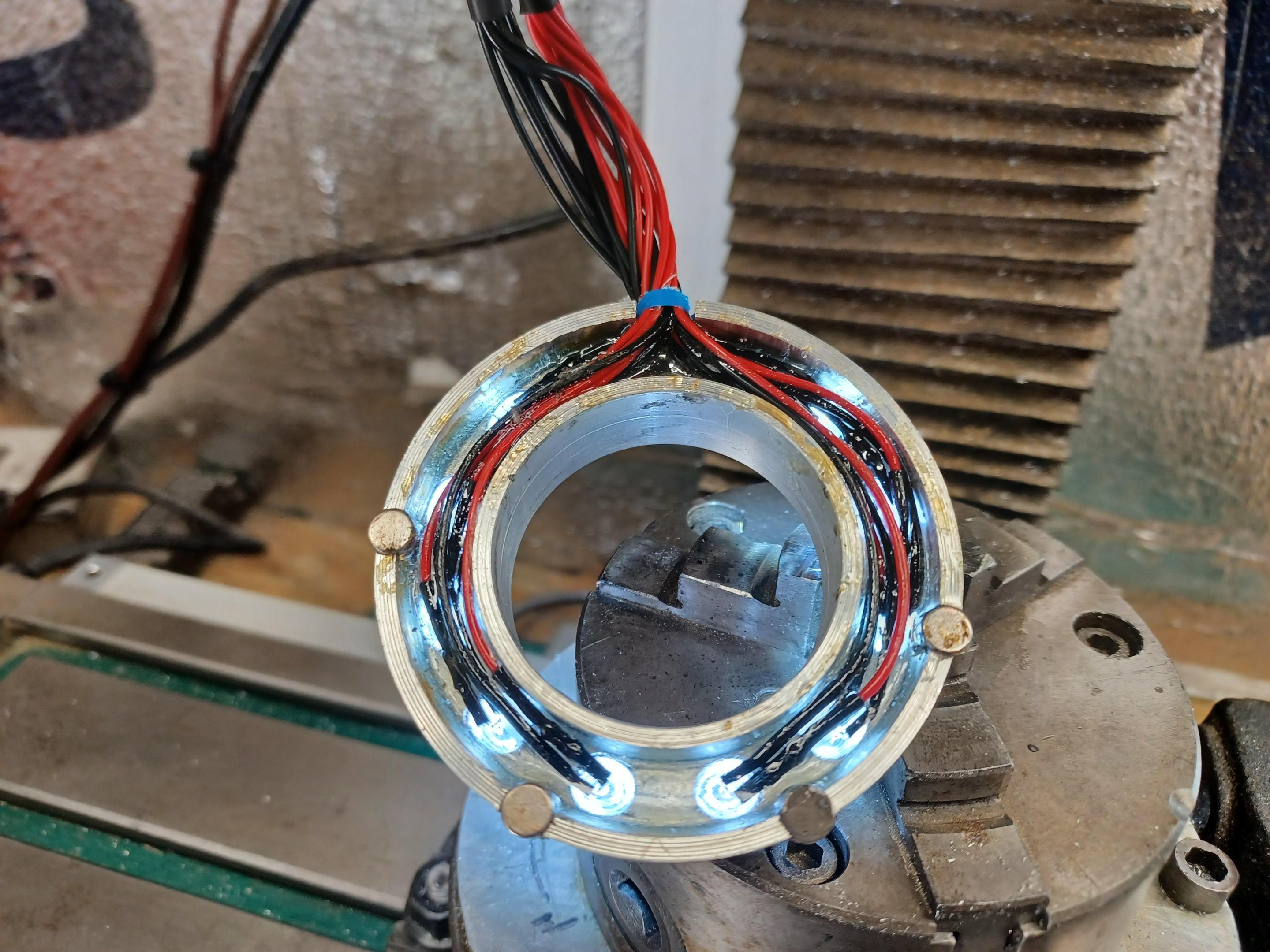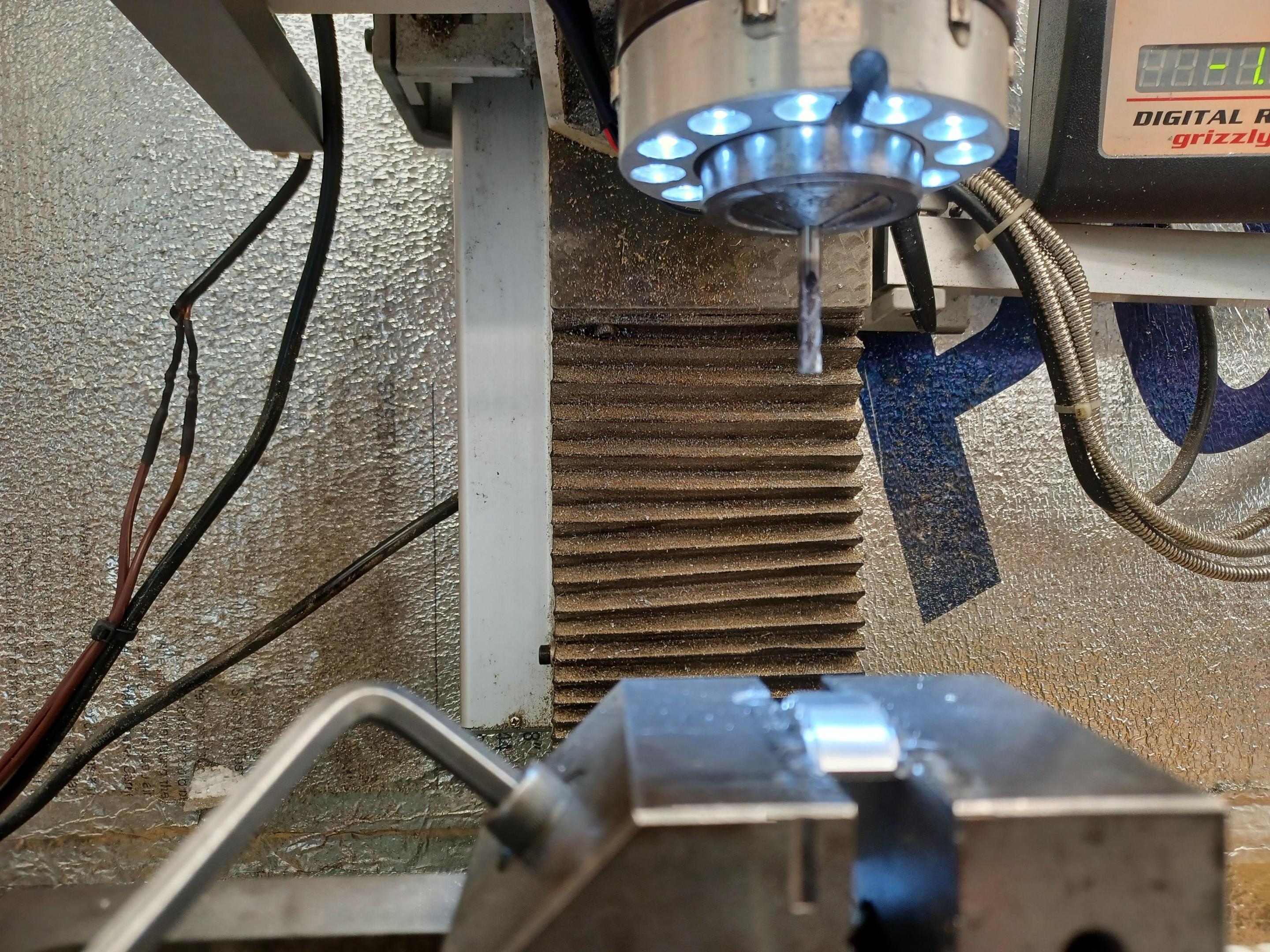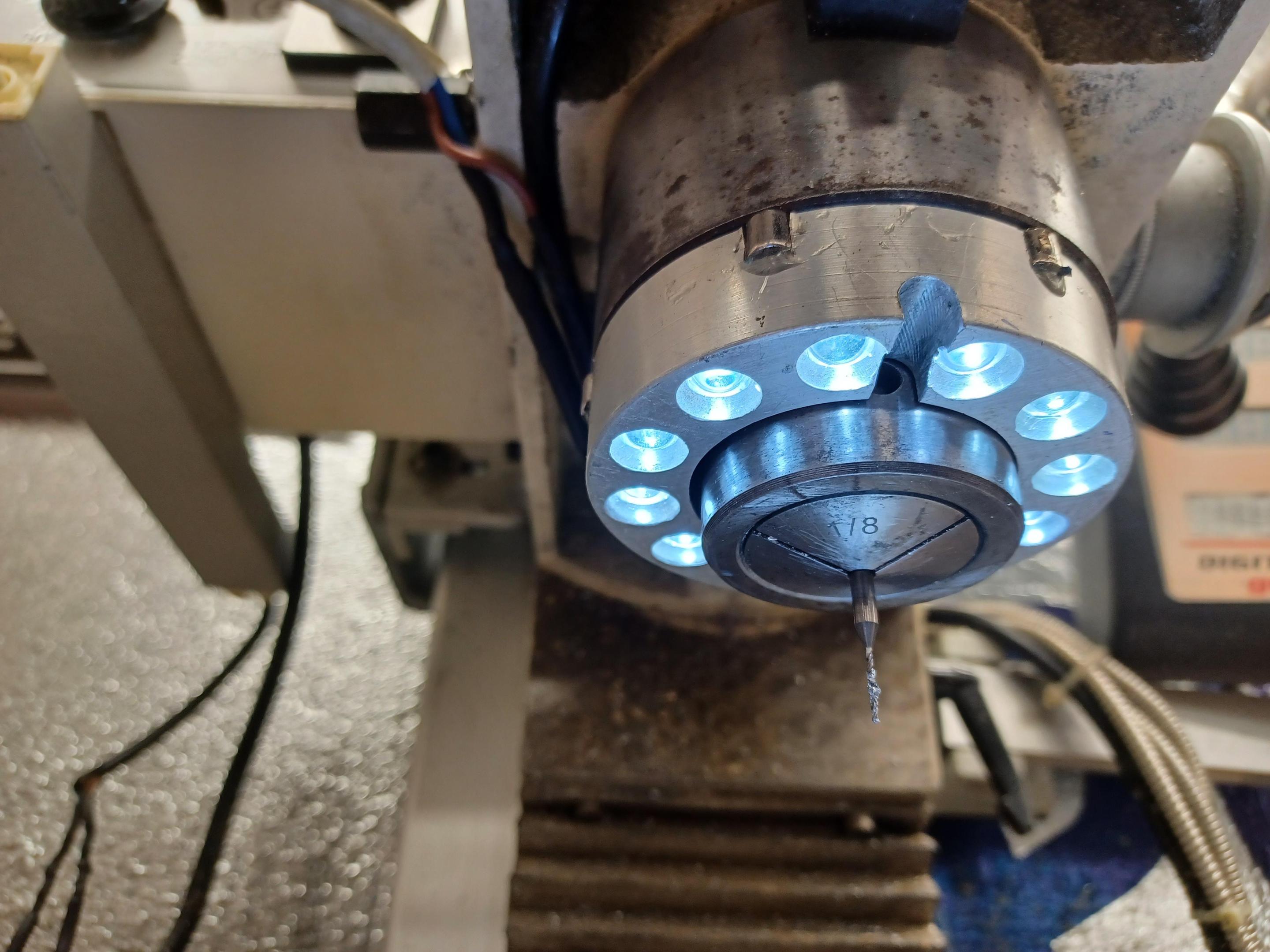i made a lite for my mill 4 or5 years ago and it stoped working. i could not figure out why. put it in my tool box and forgot about it. i took it out the outhr day and decided to work on it. i ended up removing all the leds and installing new ones and its working fine . glad to have it back. if i were to make another one,i would drill the holes for the leds at a about 5 degrees to the middle but it works fine. it attaches with magnets. i did not like the size of the front brakes so i made new that are much larger.hope u all had a great christmas and have a happy newyear.