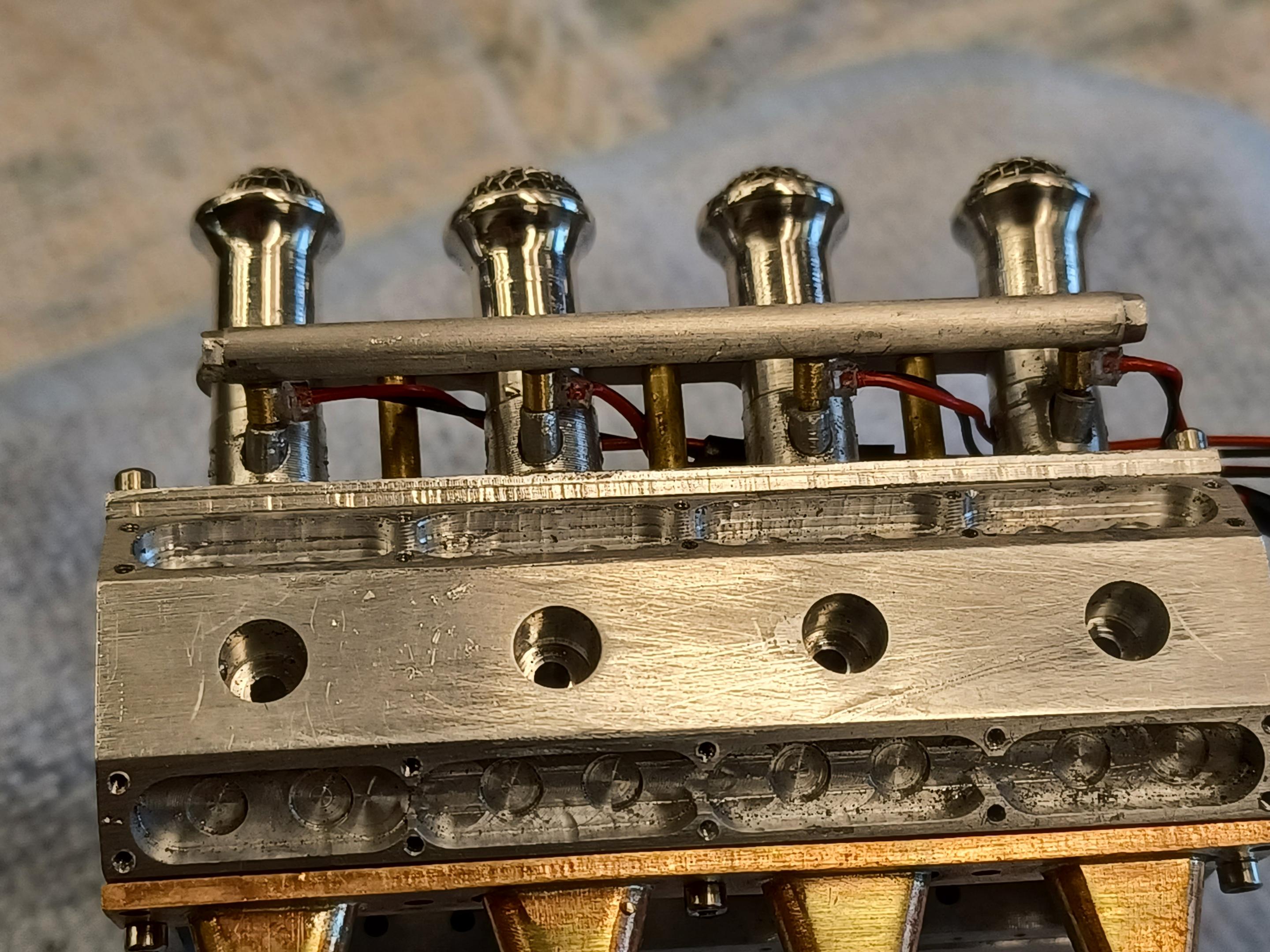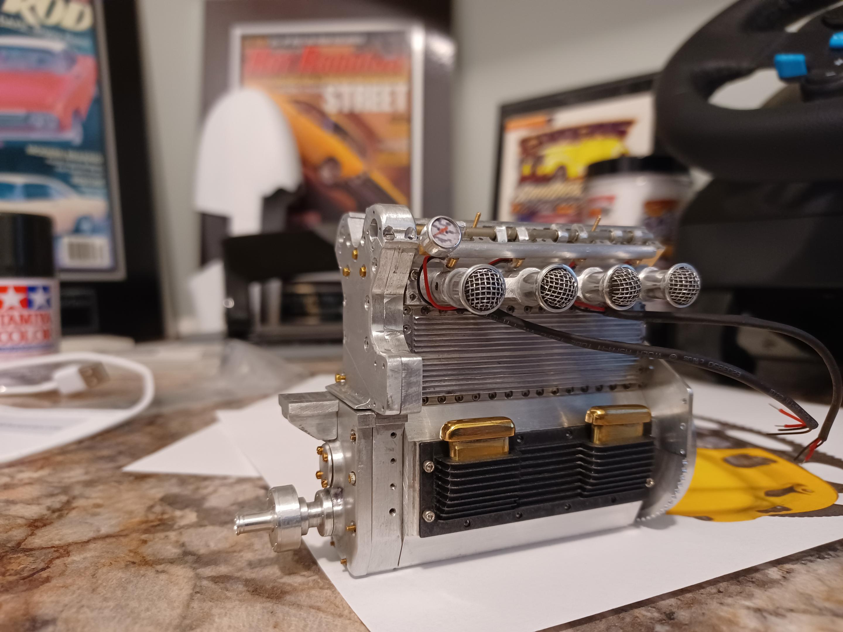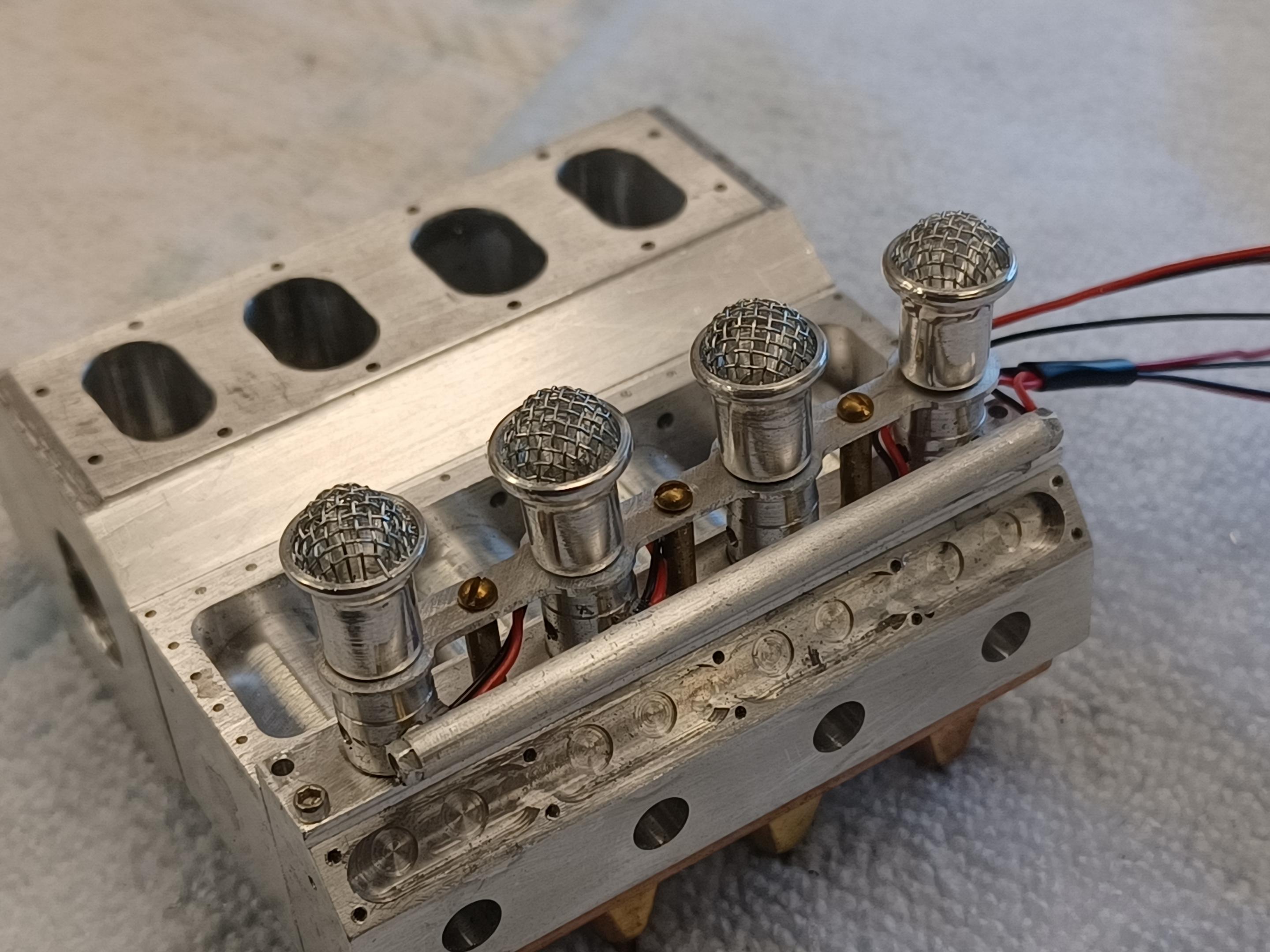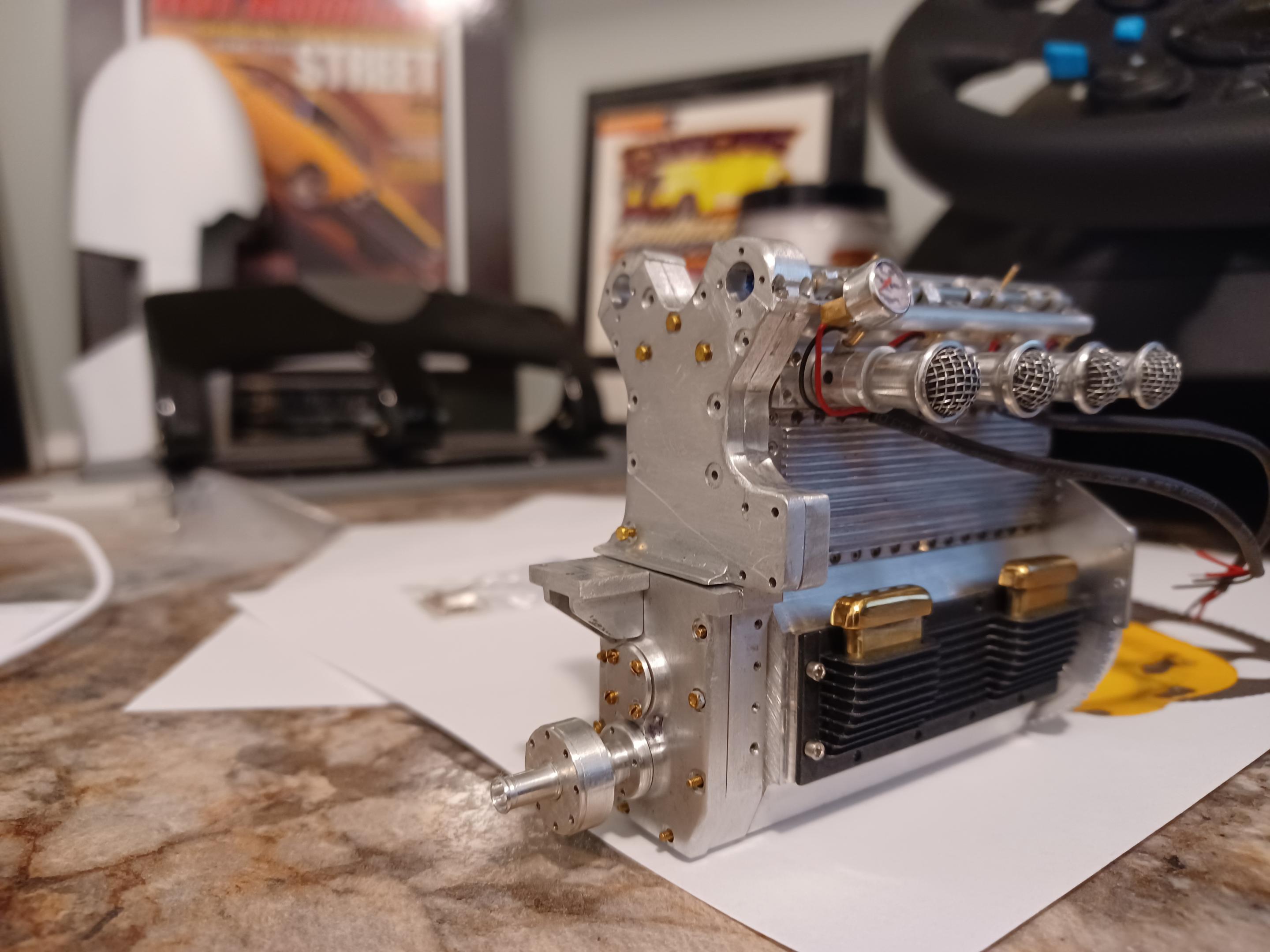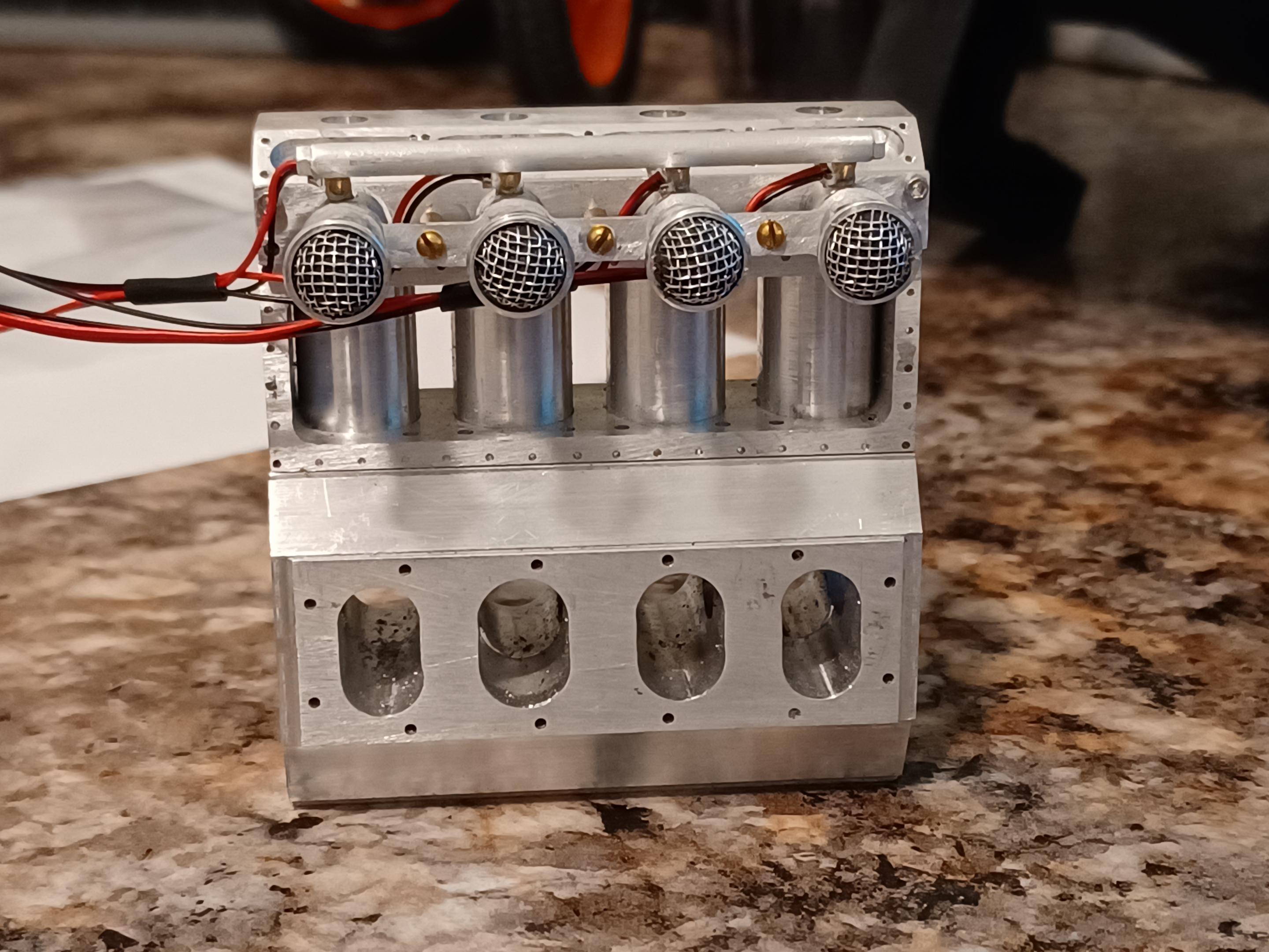 havent ben on much lately. i have done some work on my projects the mustang gasser is done and i am continuing on my offy project. it seems to be coming along fine. trying to do the front of the engine , the gear tower and mag drive and the exhaust and intake flanges. i have started on the magneto the cap is done but the mag is not . the fuel injection is electronic , the car will be more modern than the an original. the clear plastic parts are the connectors for the wiring on the injectors. they will be painted black with the injectors. the breather flanges and horns came out nice. the foam breathers under the screen were a little difficult to form,a few got lost because my fan blew them around.it is warm down here right now. all for now thank you for looking