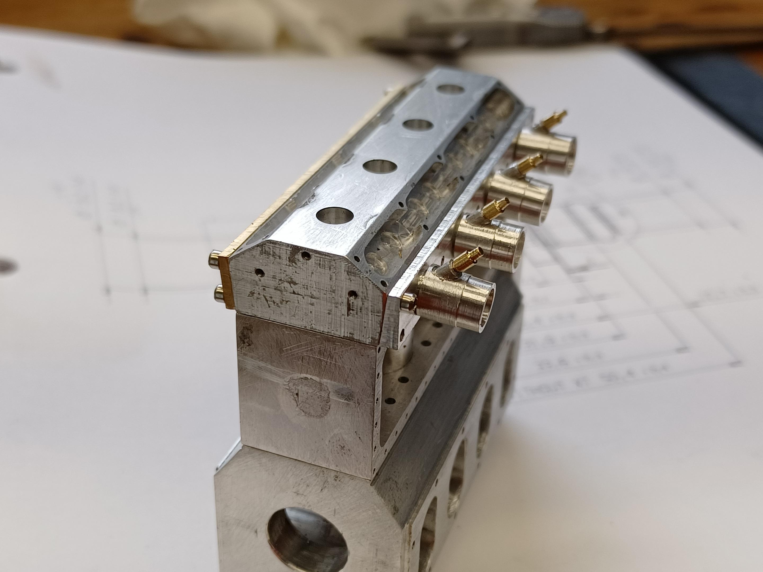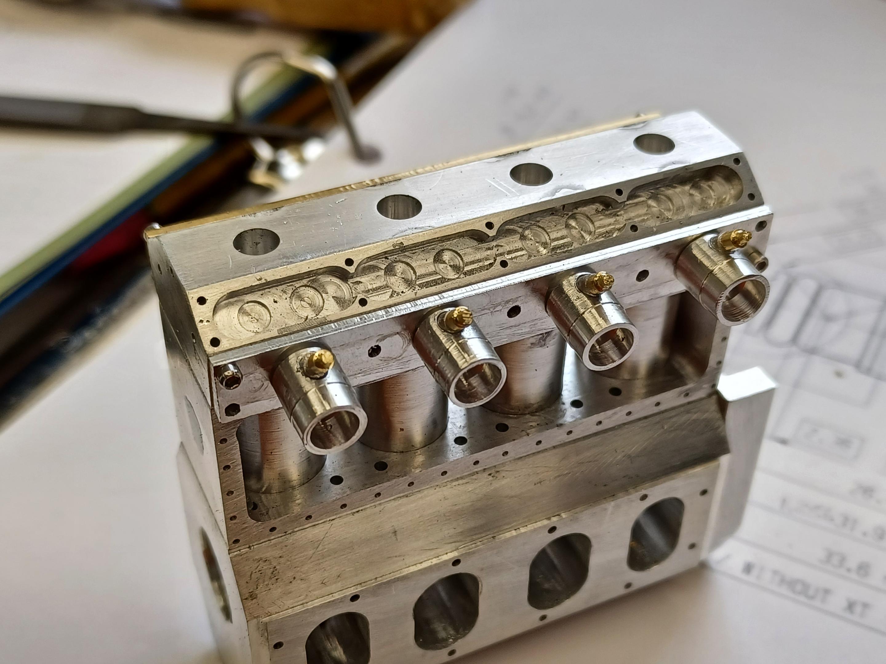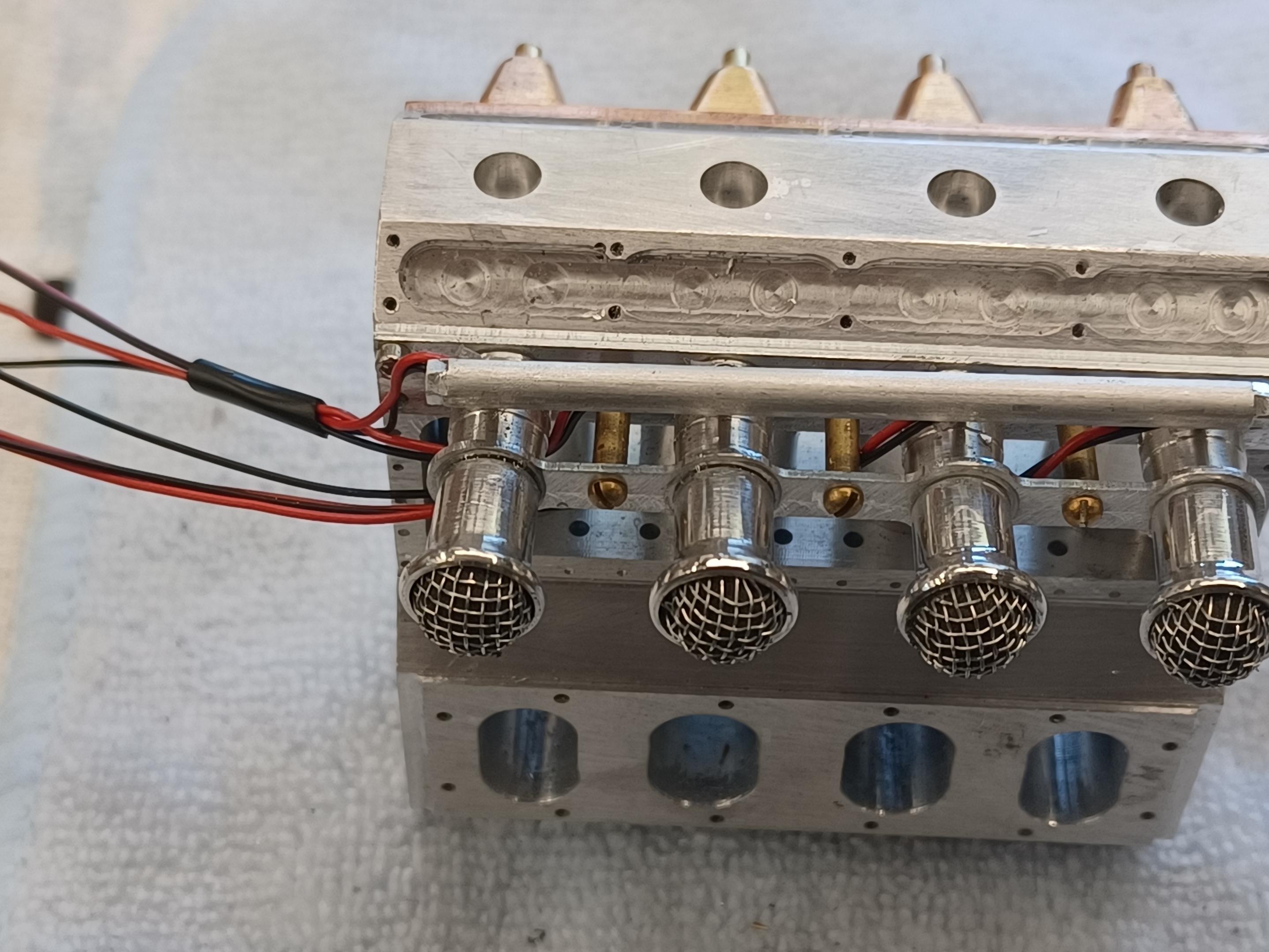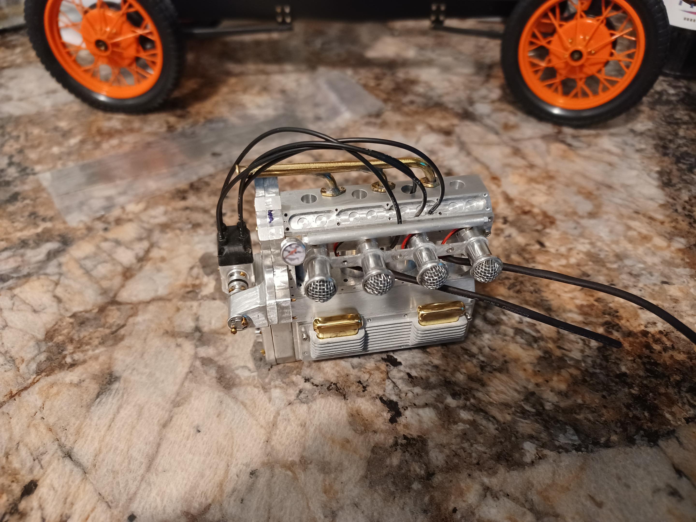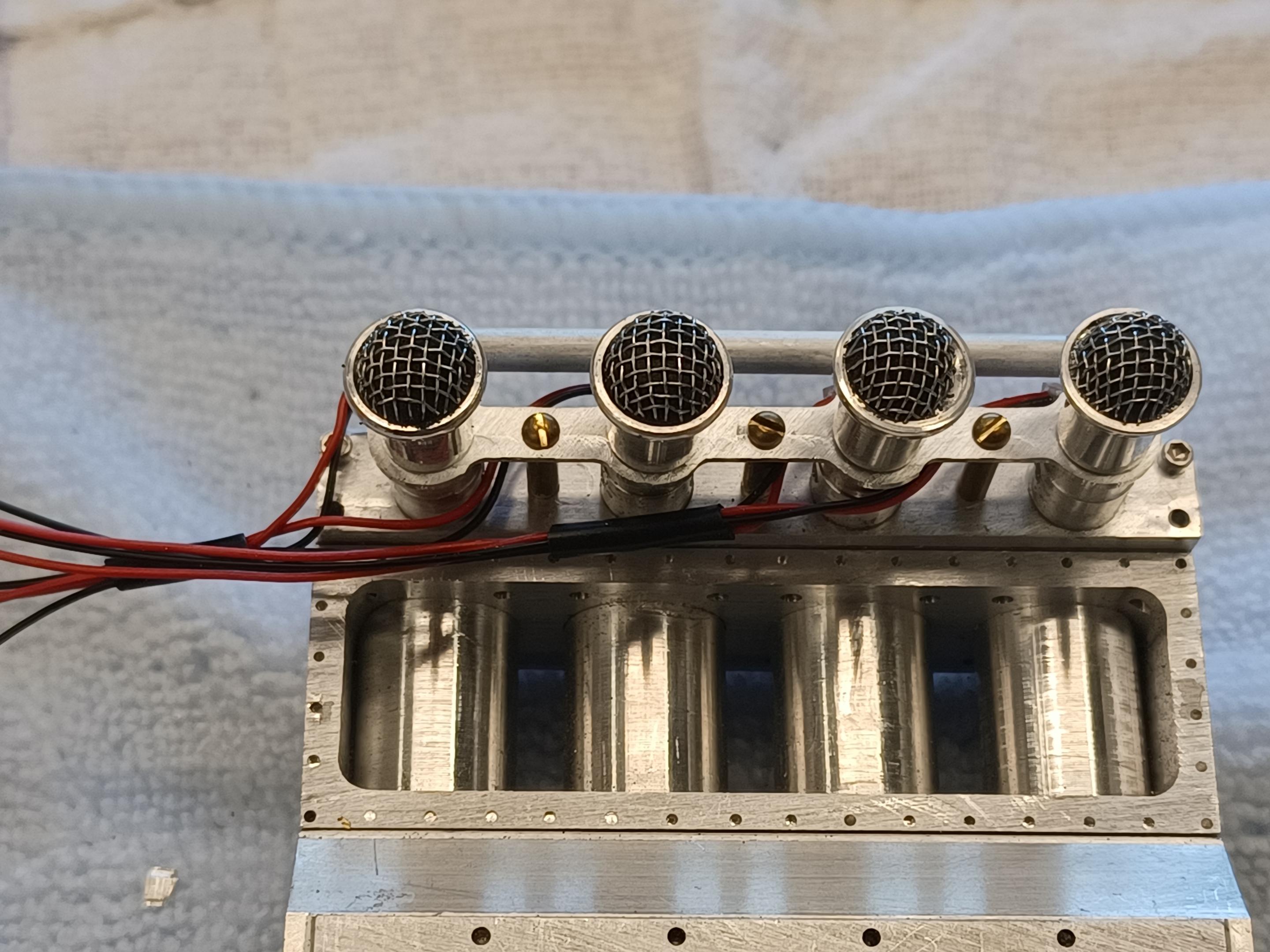 havent ben on much lately. i have done some work on my projects the mustang gasser is done and i am continuing on my offy project. it seems to be coming along fine. trying to do the front of the engine , the gear tower and mag drive and the exhaust and intake flanges. i have started on the magneto the cap is done but the mag is not . the fuel injection is electronic , the car will be more modern than the an original. the clear plastic parts are the connectors for the wiring on the injectors. they will be painted black with the injectors. the breather flanges and horns came out nice. the foam breathers under the screen were a little difficult to form,a few got lost because my fan blew them around.it is warm down here right now. all for now thank you for looking