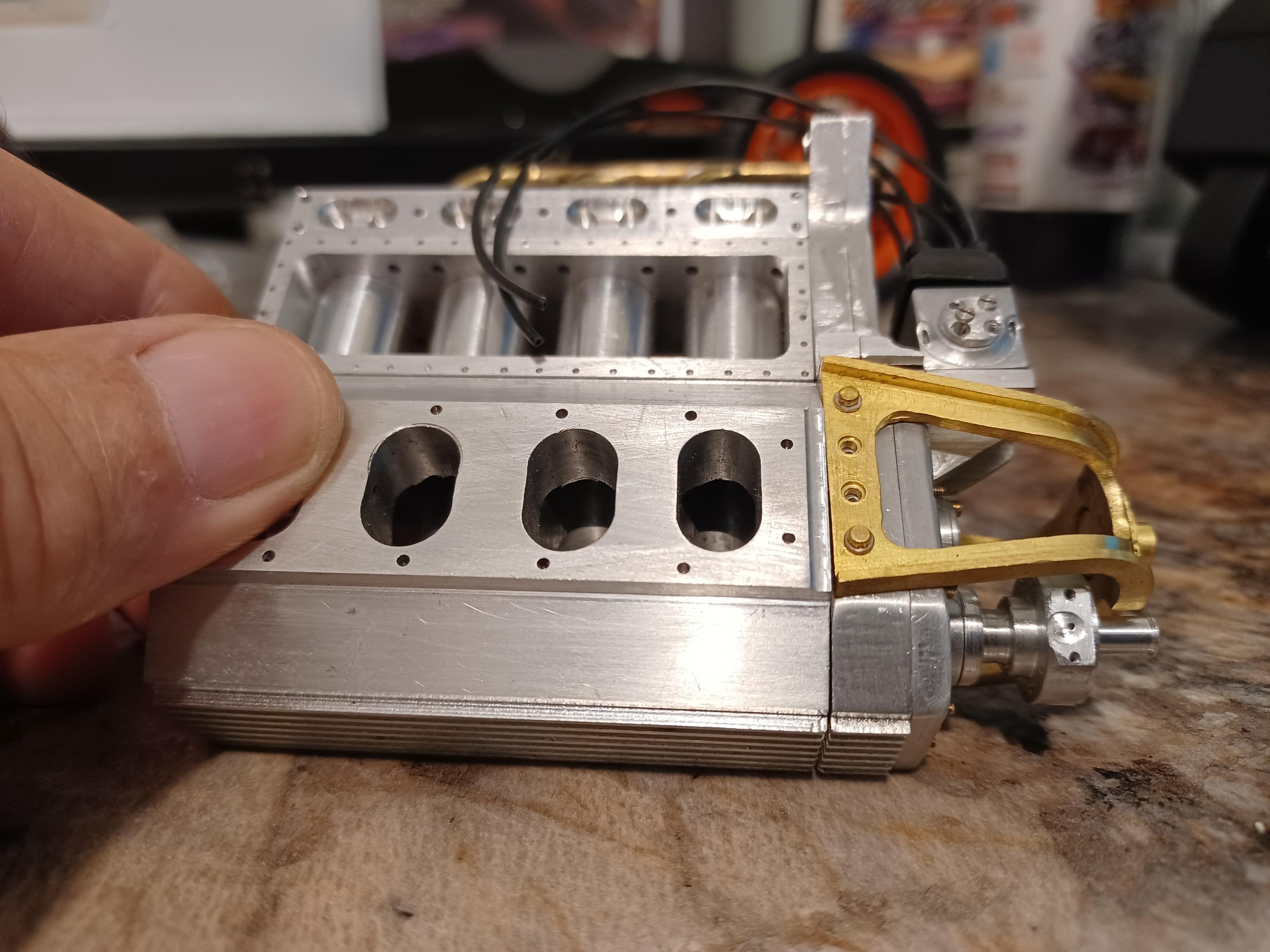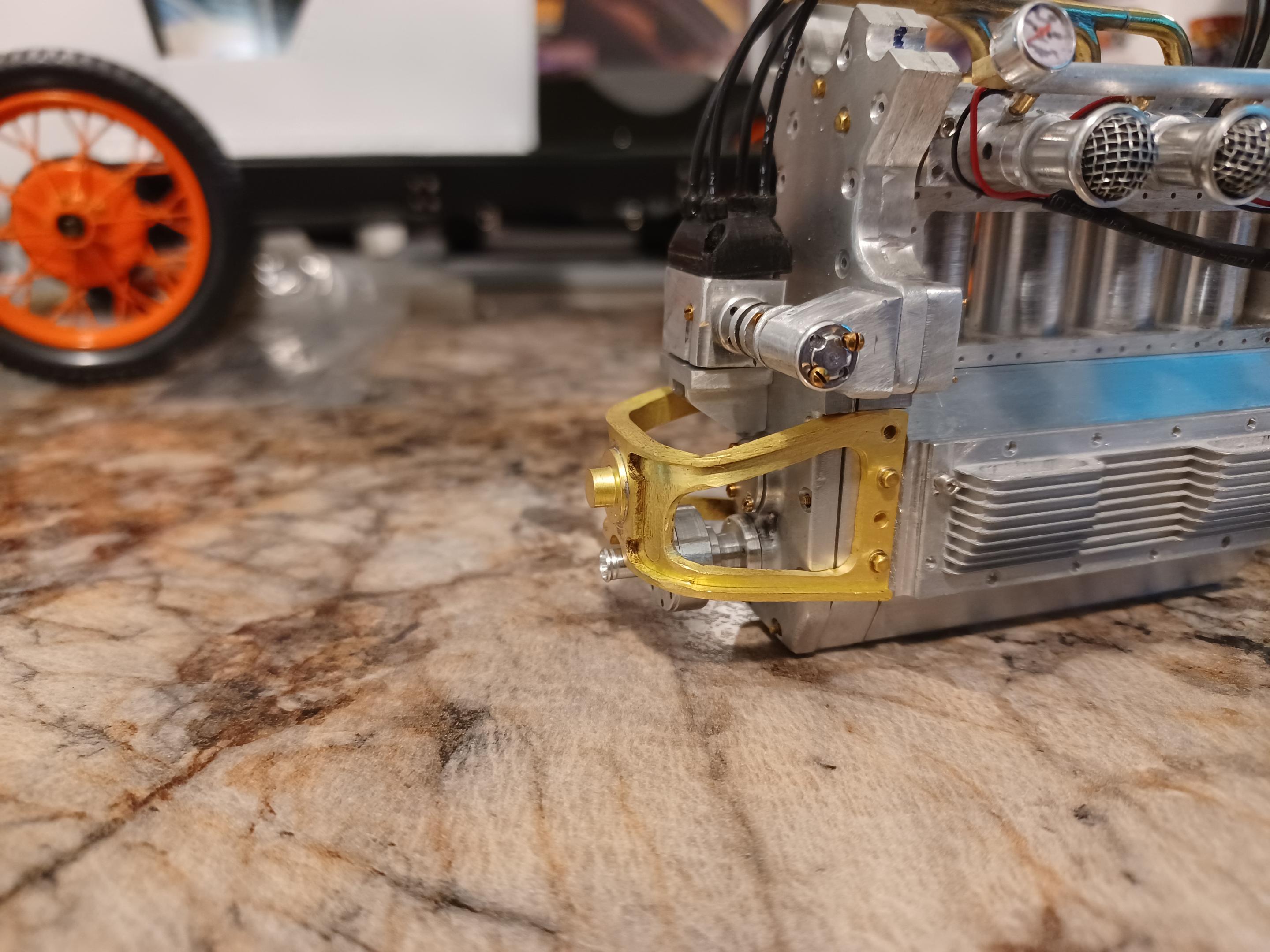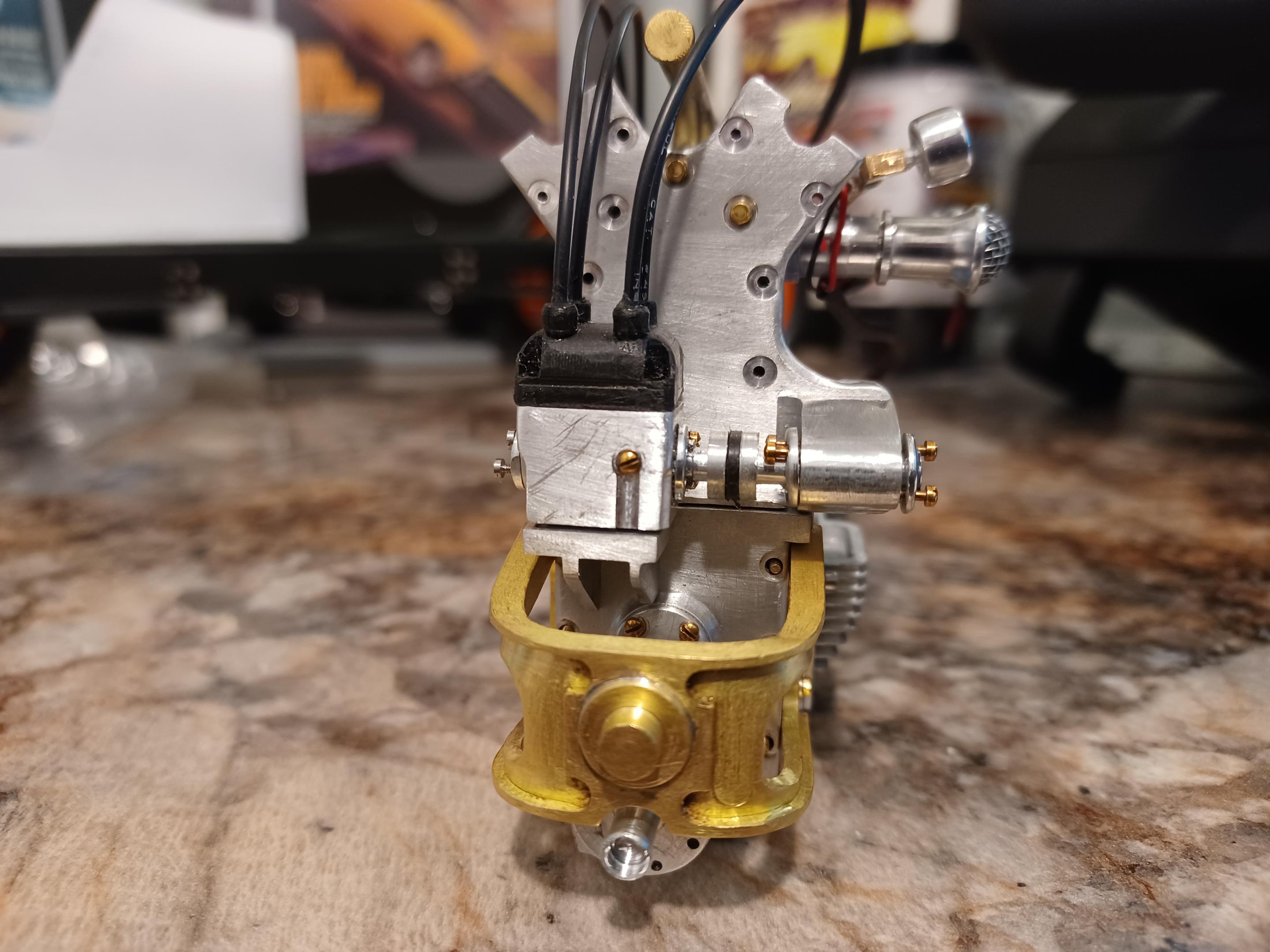 hi you guys, thanks to all of you. i have just made my nickel plating solution and plated a piece of brass tubing as a test. it took about 3 minutes to plate this small piece. tomorrow i am going to plate the motor mount that i just finished that is bolted on the front of the offy. thats the water pump on the bottom of the front cover under the mount. i got to get a small window air conditioner francis , i have got to purchase a few more things to try anodizing. got to wait for clearance from my wife. i didnt like my first magneto so i made a new one, in case you noticed its not brass anymore.