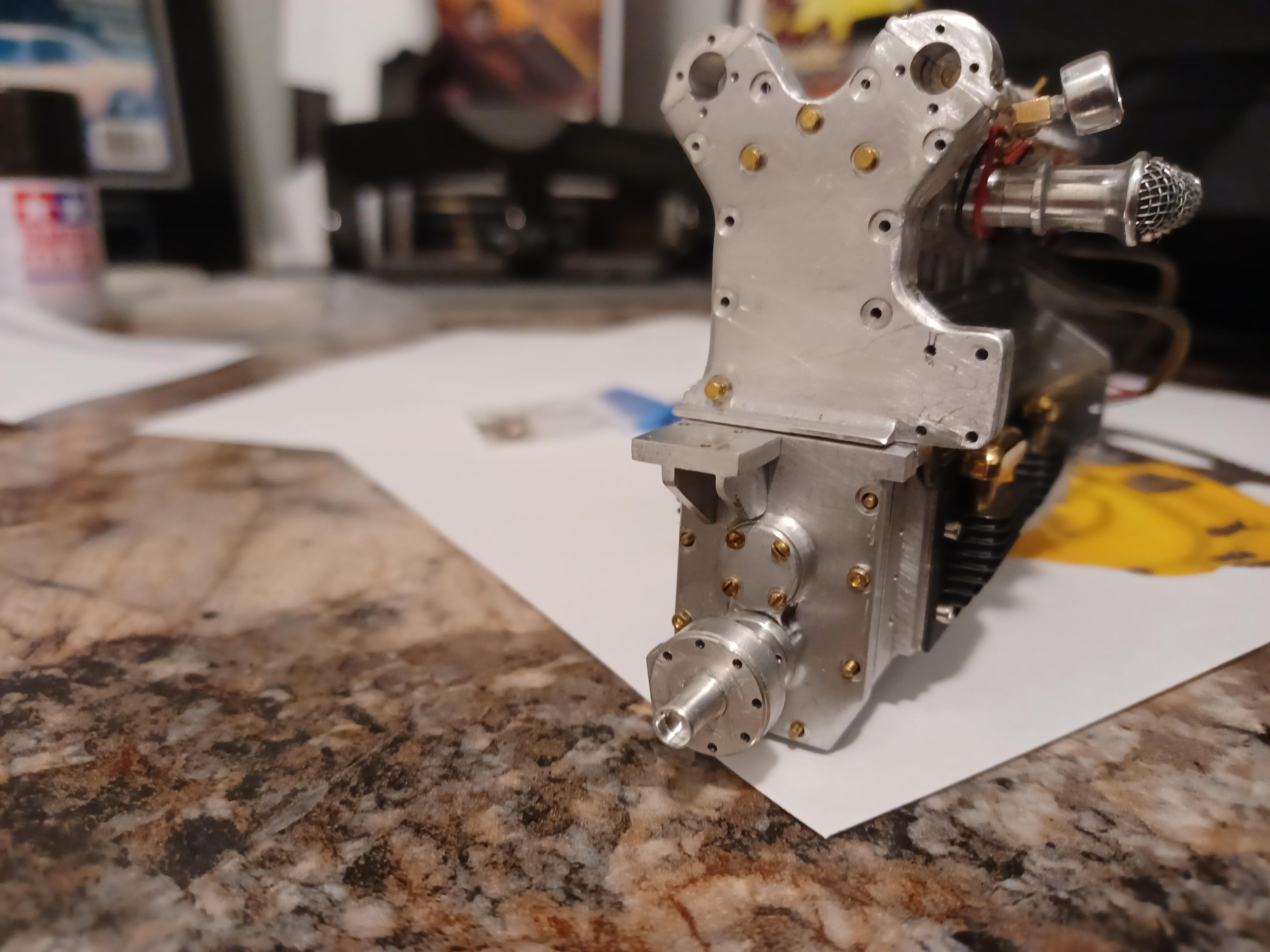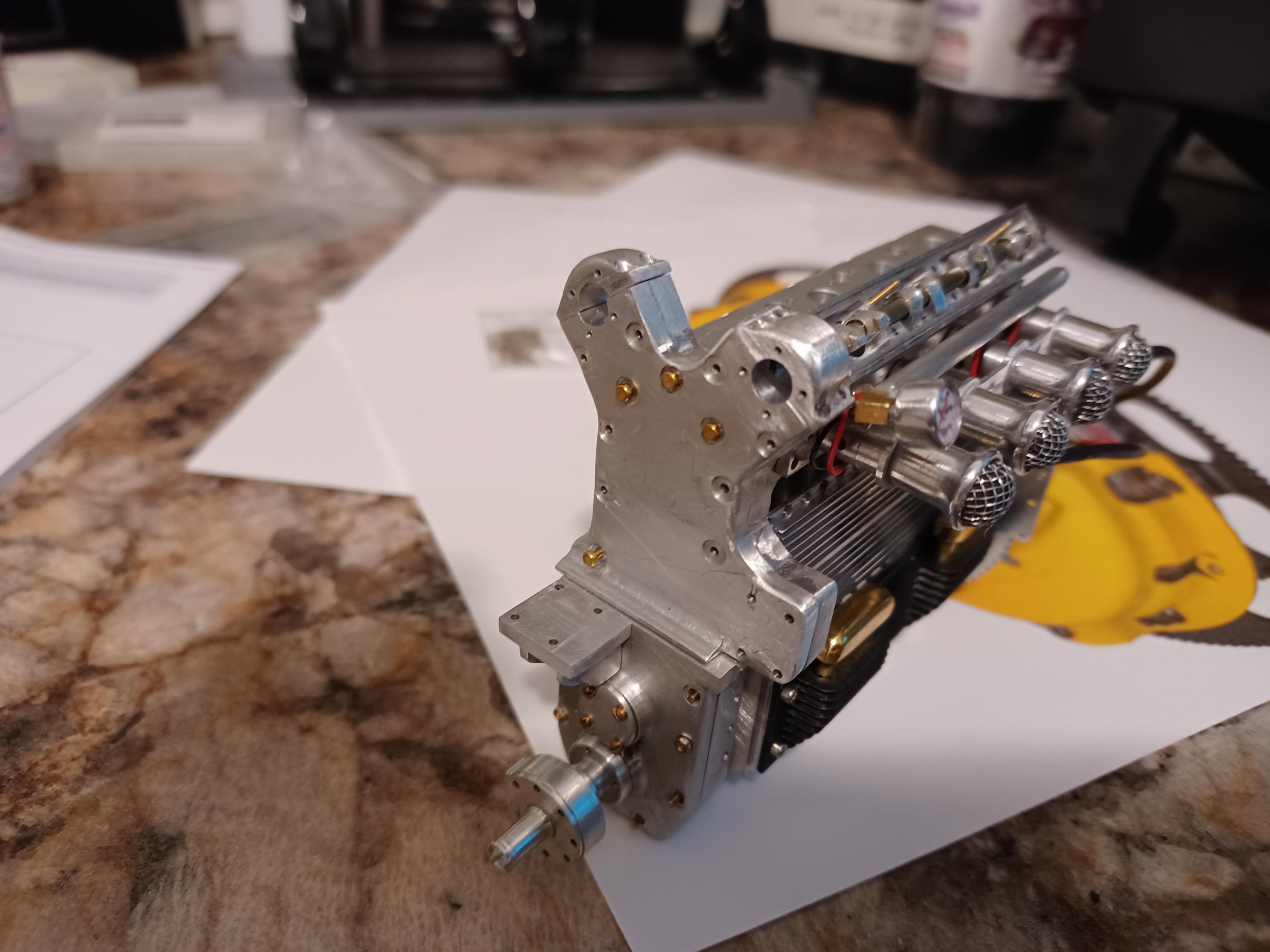 hi andrew, using plating solution that i made with vinegar and salt. . i learned on you tube , it seems to work great. yeah i anealed at the bend points and made a bending fixture for the final shape. daniel ,thanks for looking and your kind comments. francis,i made the plating solution as per 2 or 3 you tube videos that were very informative. it works great. it only took about 5 minutes at 15 volts and 1.5 amps to cover it. you have to move it around in the solution to aim it at the anode to cover all sides evenly. am purchasing the dyes and acid this week for anodizing. hope it comes out as nice as yours. the flywheel and ring gear came out really well. the clutch is next. i got a little carried away and did cams and lifters, but i have the time. hope you all enjoy. i painted the lower crancase covers to see if i liked them in black before i anodize them . i like them in black so i will strip them and anodize them . do you think the upper finned panels in black would be to much?