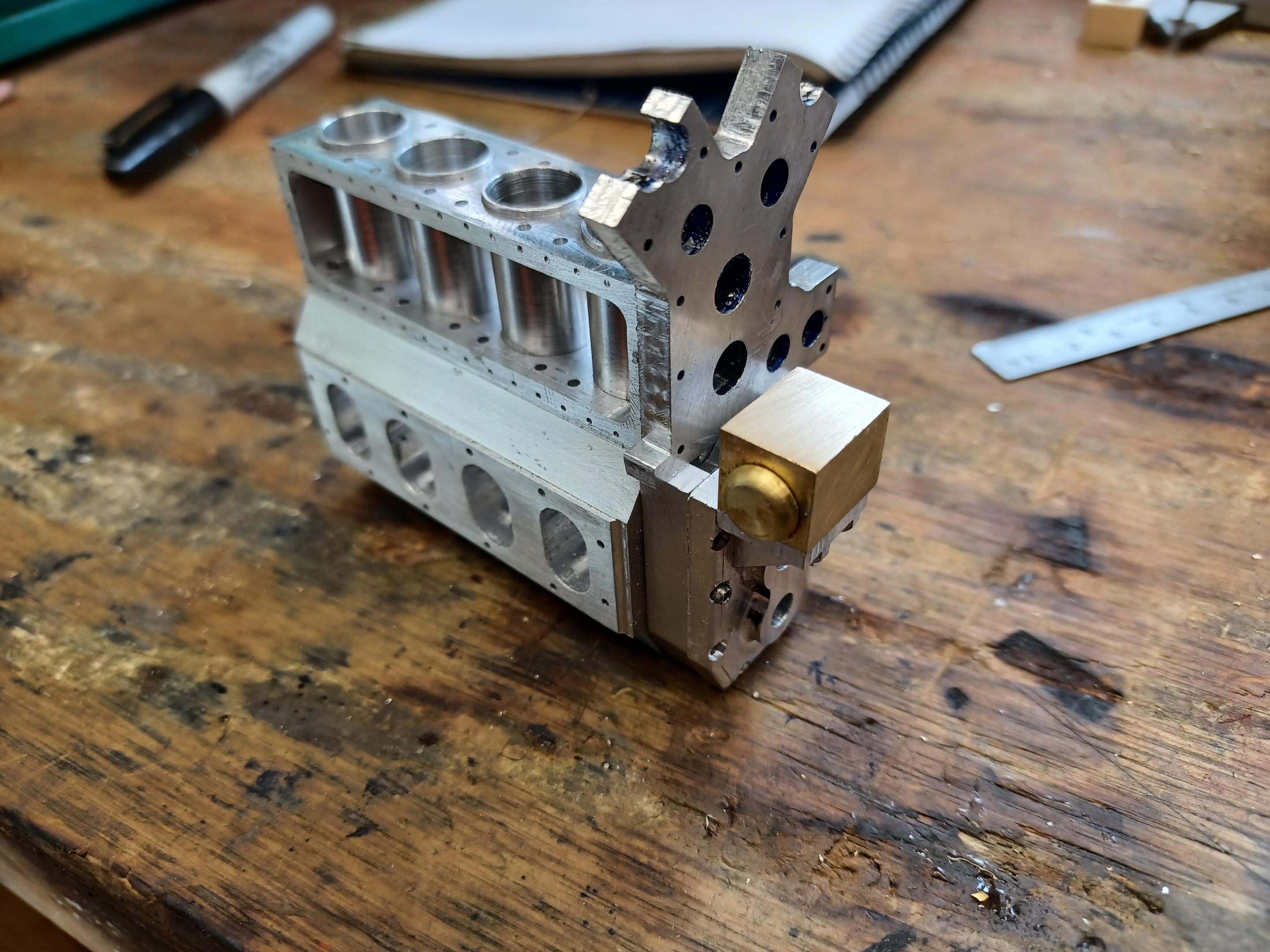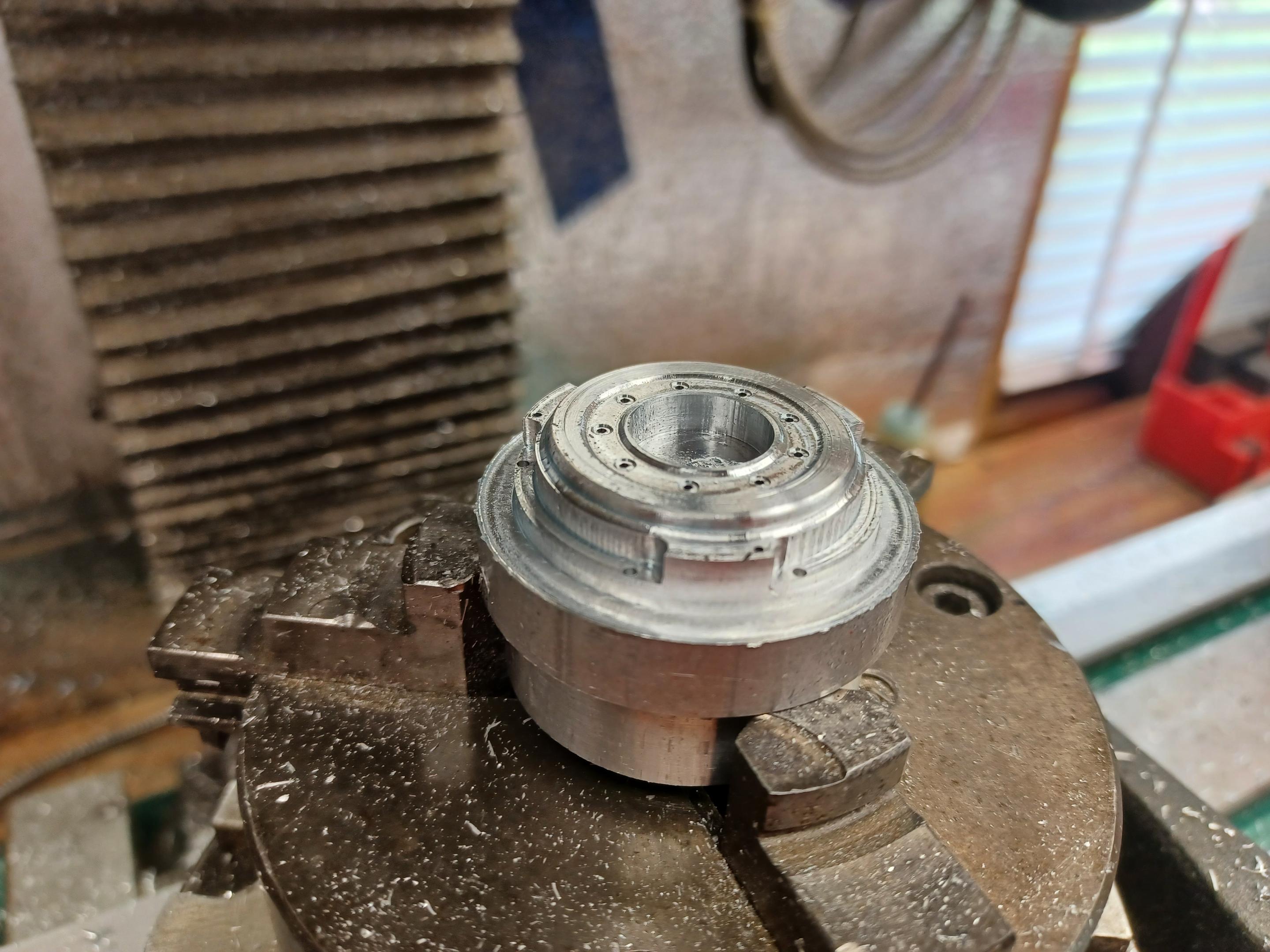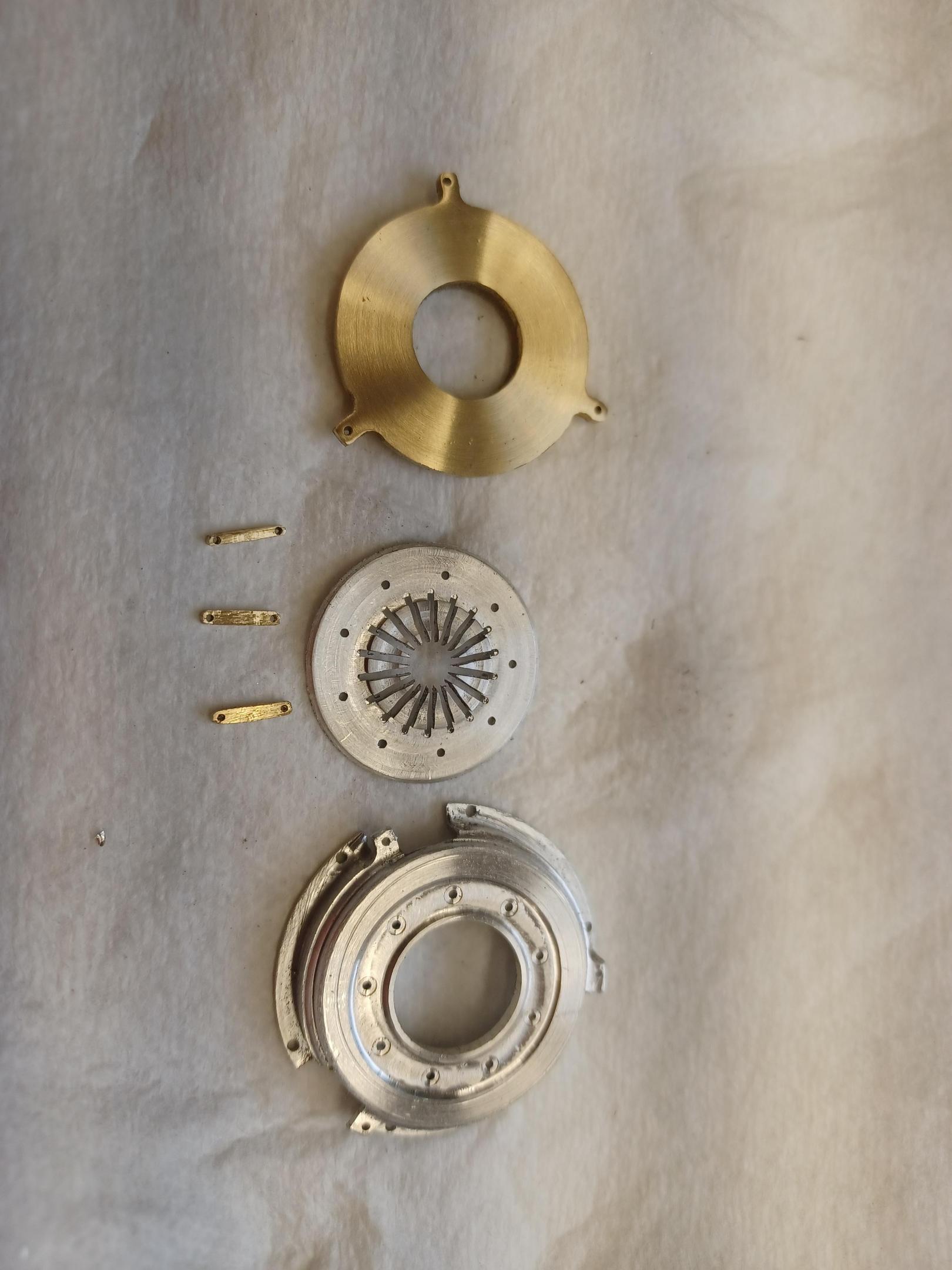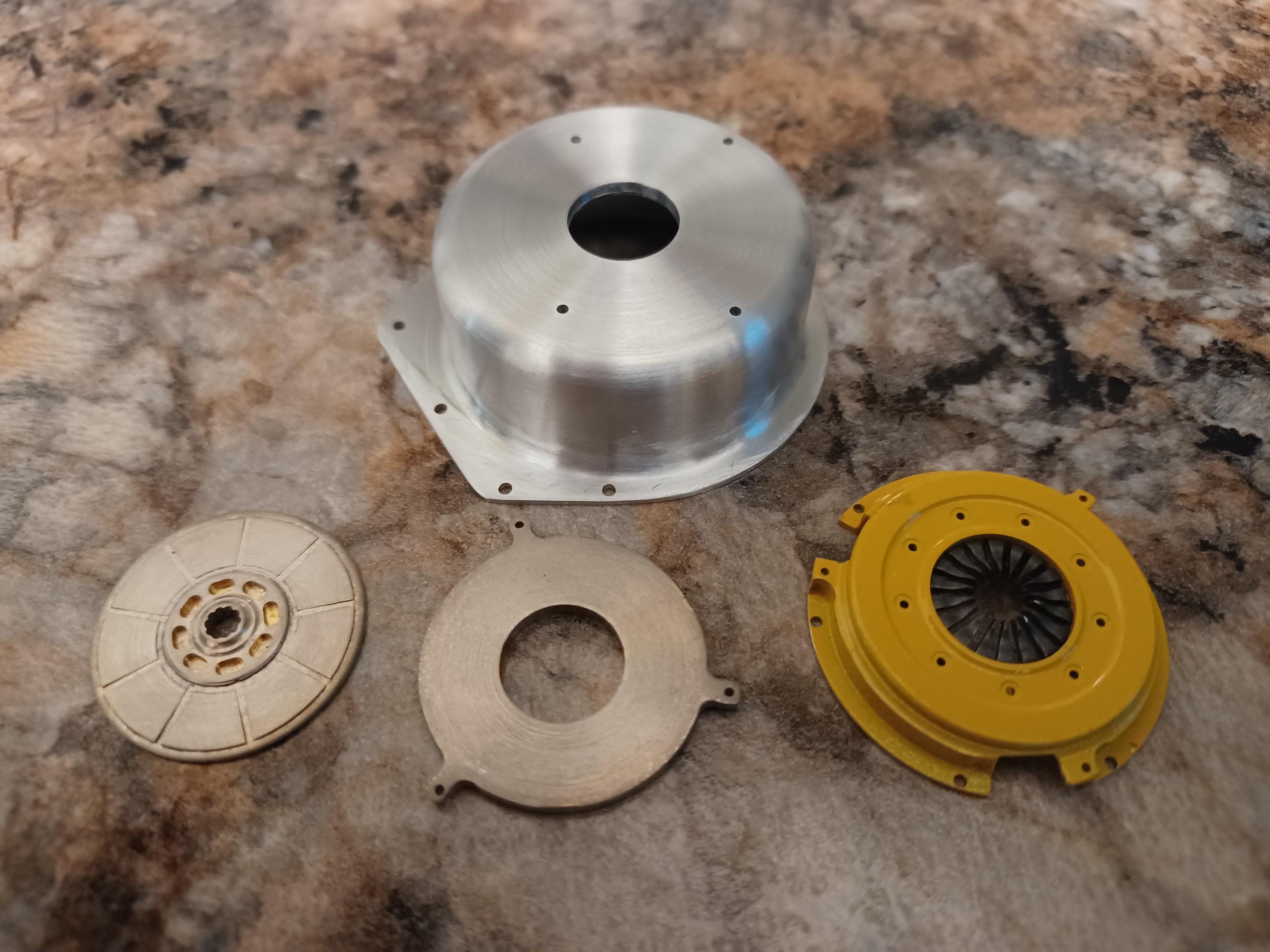 got the clutch finished and most of the bell housing .have to locate and machine for the starter and make the starter. transmission is coming along. had to ues brass for the back half so i could solder all the pieces. not quite done. maybe 2 more days. when the tans is done i will final finish all the parts and assemble it all to make sure it all fits together.
