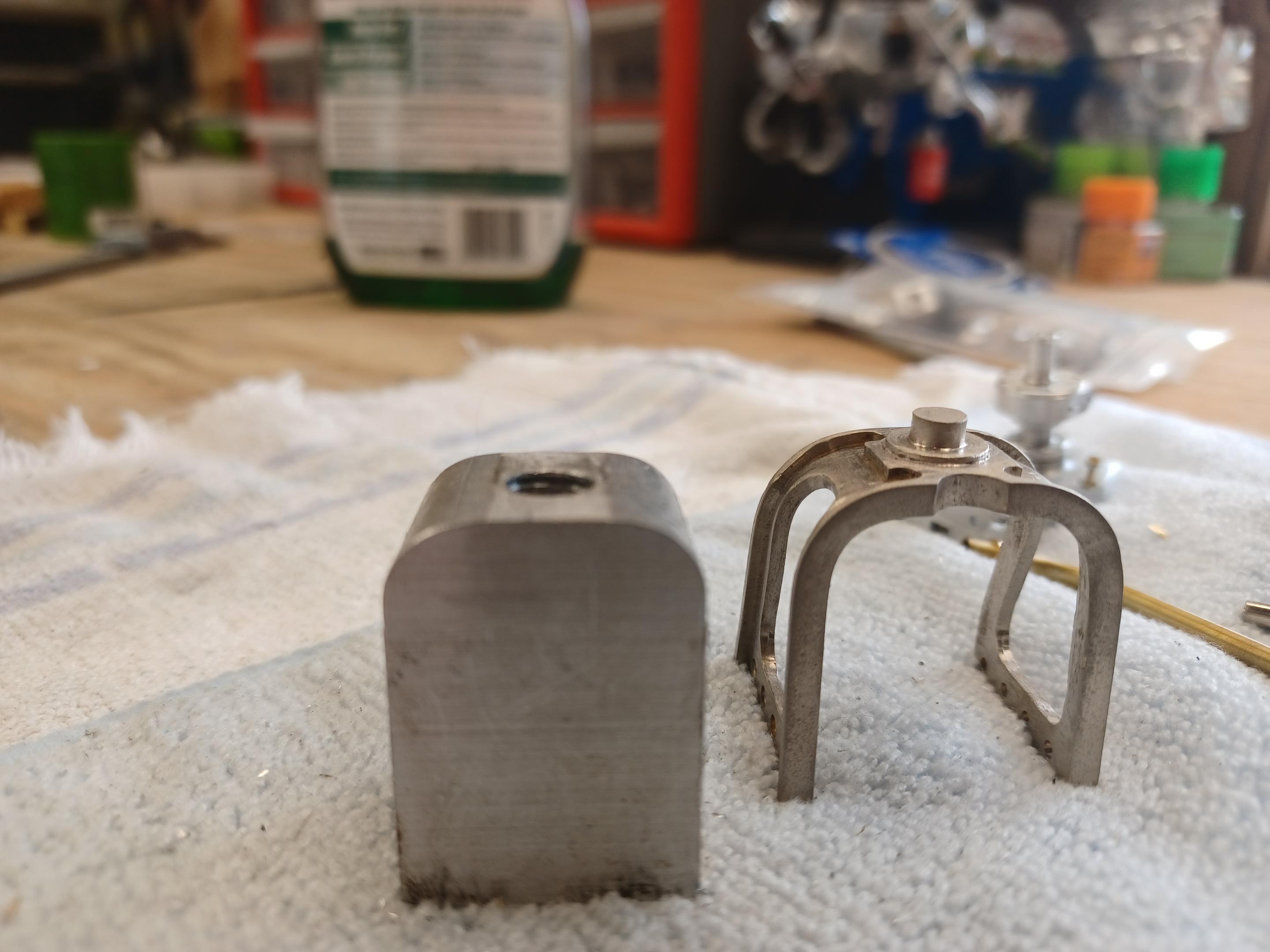 got a good start on the clutch hope to finish it tomorrow. ordered all the stuff to attempt anodizing. should be an interesting science experiment. here is also a picture of the bending fixture for the front motor mount to get the width correct.. still have the actual plate and the attachment arms left for the clutch. the fingers in the center will rivet on like a real one through the 9 holes on top.