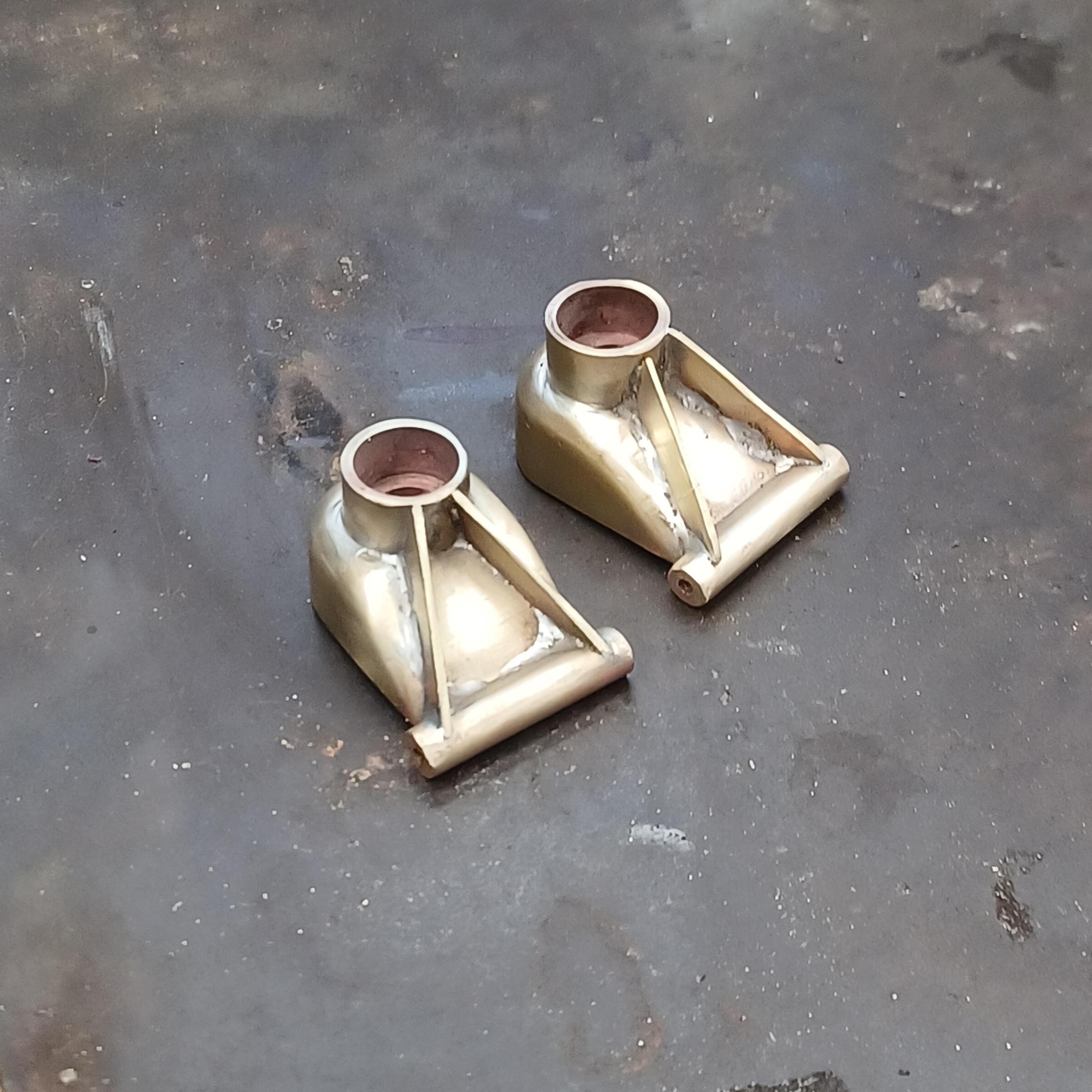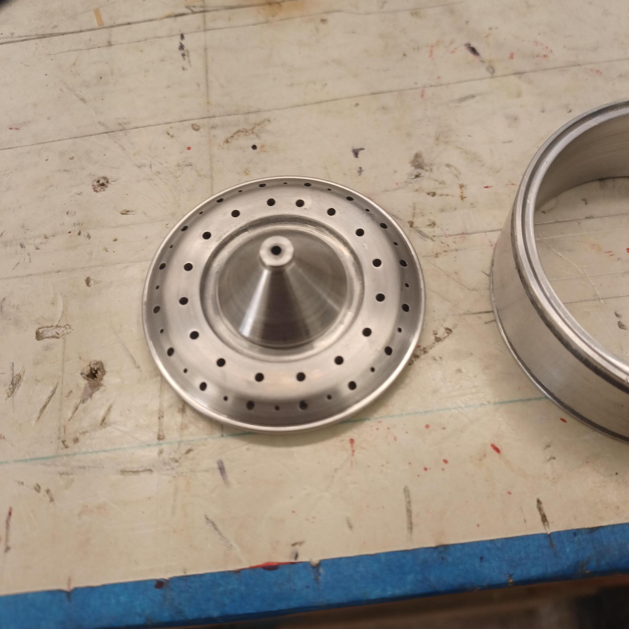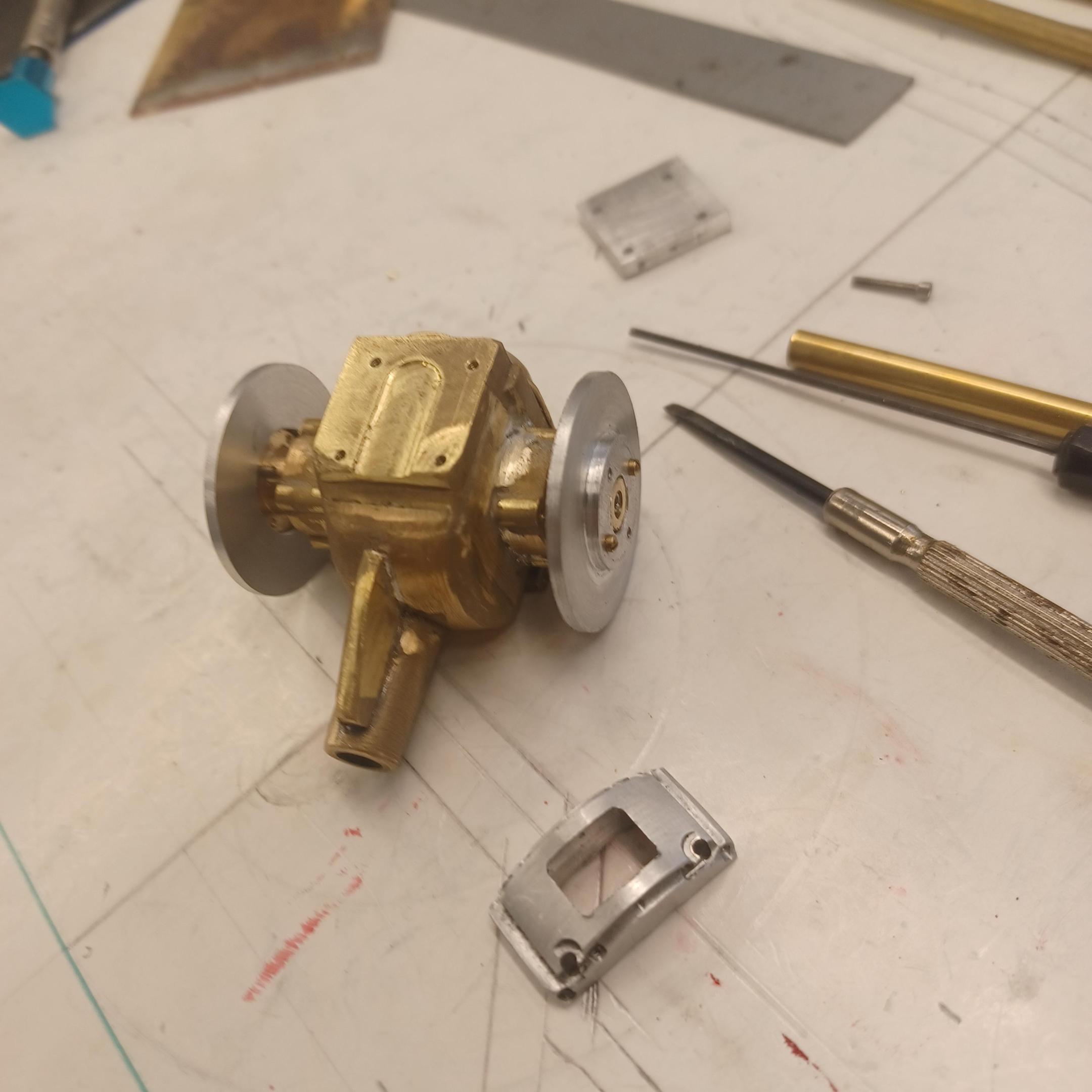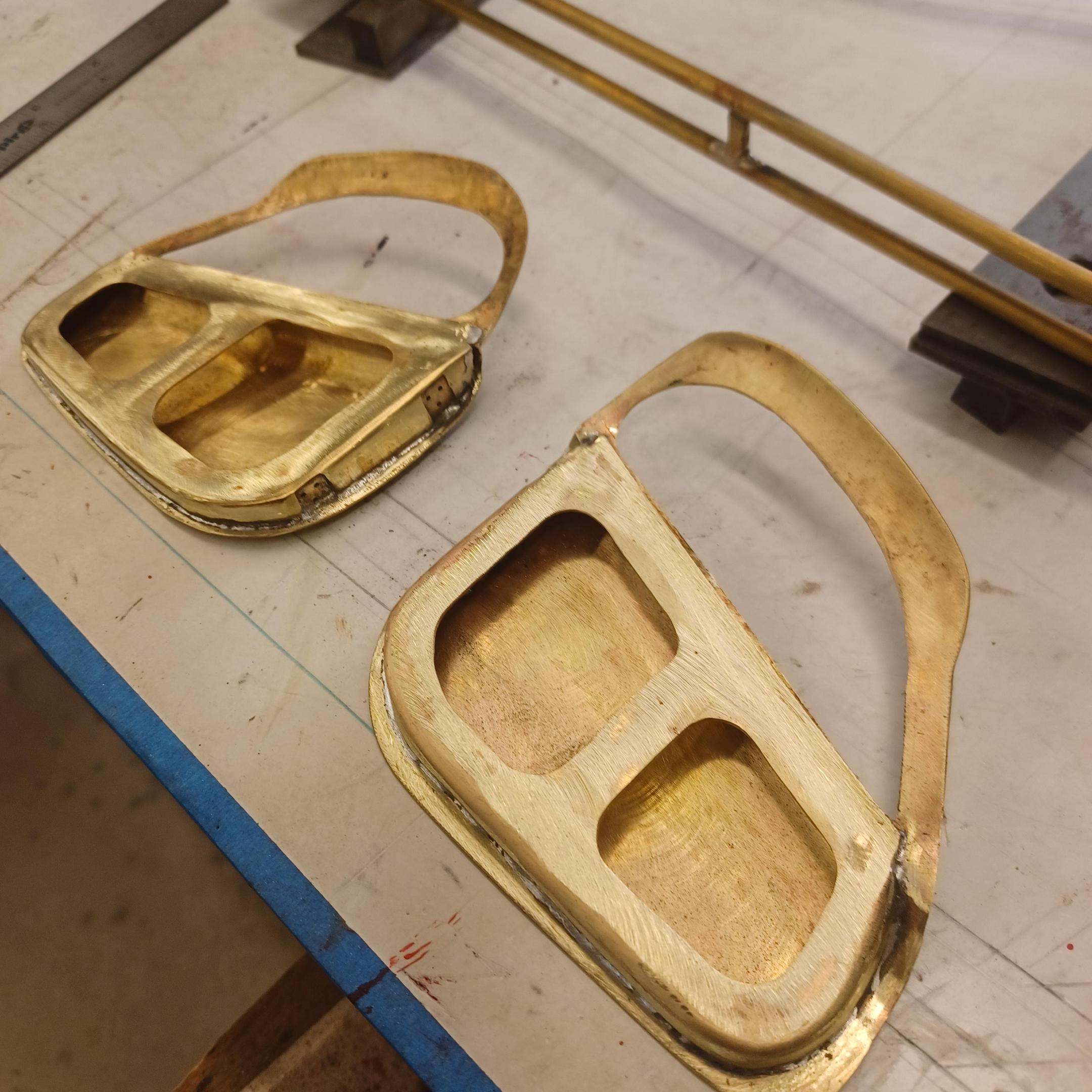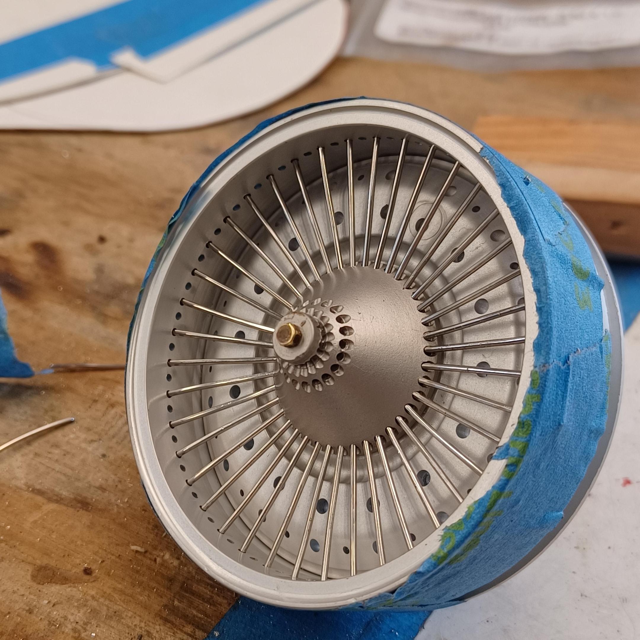hi mark ,hammer forms have been around for along time. i have been using them 30 or 40 years. i don't know idea they were. hi francis your wheels look great. here are a few pictures of the 2 halves of the fenders soldered together. and the filler between the fender and the body. the inside of the fender in picture 2 shows the solder. this was done with my favorite solder tool the resistance solderer. great tool. the wheels are looking good. 128 holes in each wheel, not counting 80 spot faces on the center hub to give a flat spot for the .035 hole to be drilled. the center hub is bolted in from the backside. they have 4o spokes only half ,40 more to go in each. i dont know why they look twisted in the picture, they are just straight .035 stainless safety wire. i have about 15 to 18 hours in each wheel and i have 2 more to go. i made the bore in the wheel .002 smaller than the wheel center then heated the rim so it would expand and dropped the center in on a spacer for the back space and let them cool. no glue needed. -