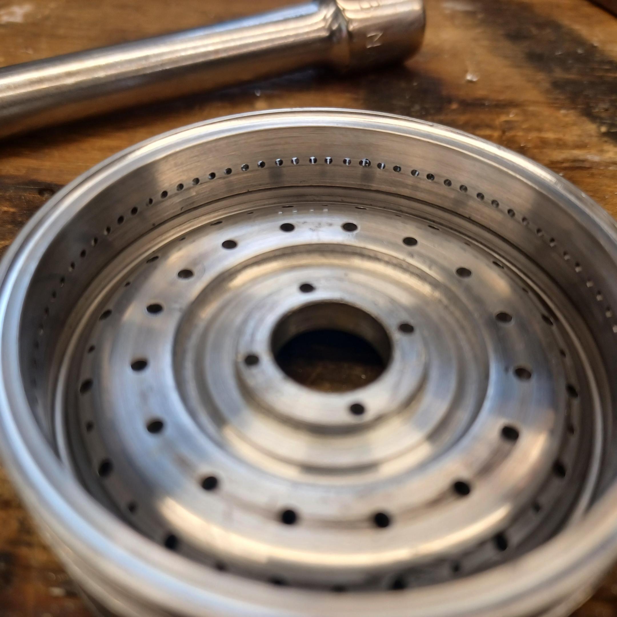 hi andrew, took about 15 to 18 hours total for each, making the rim, the center the, center hub and drilling 160 holes. cutting and fitting 80 wires. but i think it was worth it. 2 more to go. going back on the fenders for awhile till my eyes come back to normal. i am doing the right rear next. i have the front hammer form shaped. nice to hear from you also mark,thank you. -