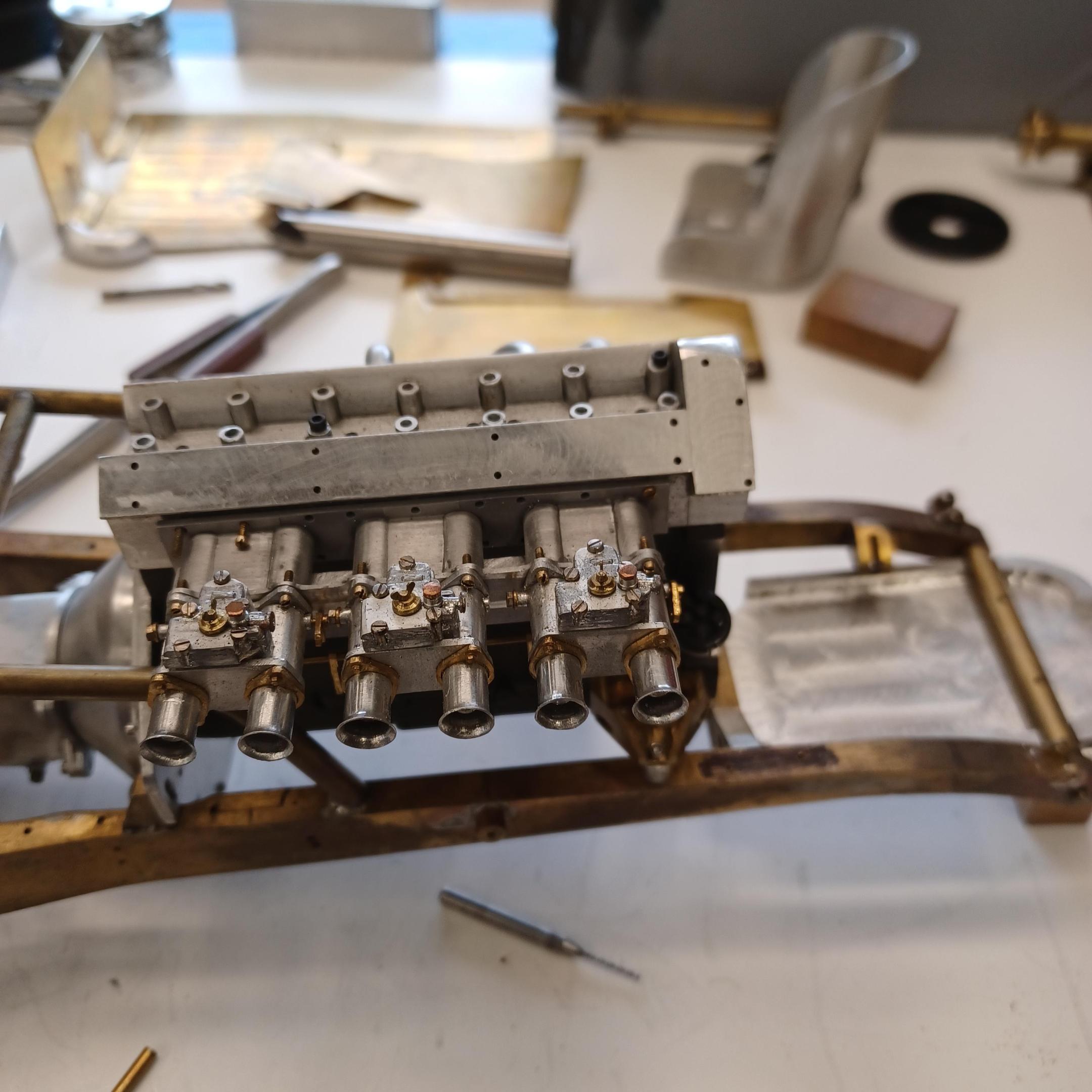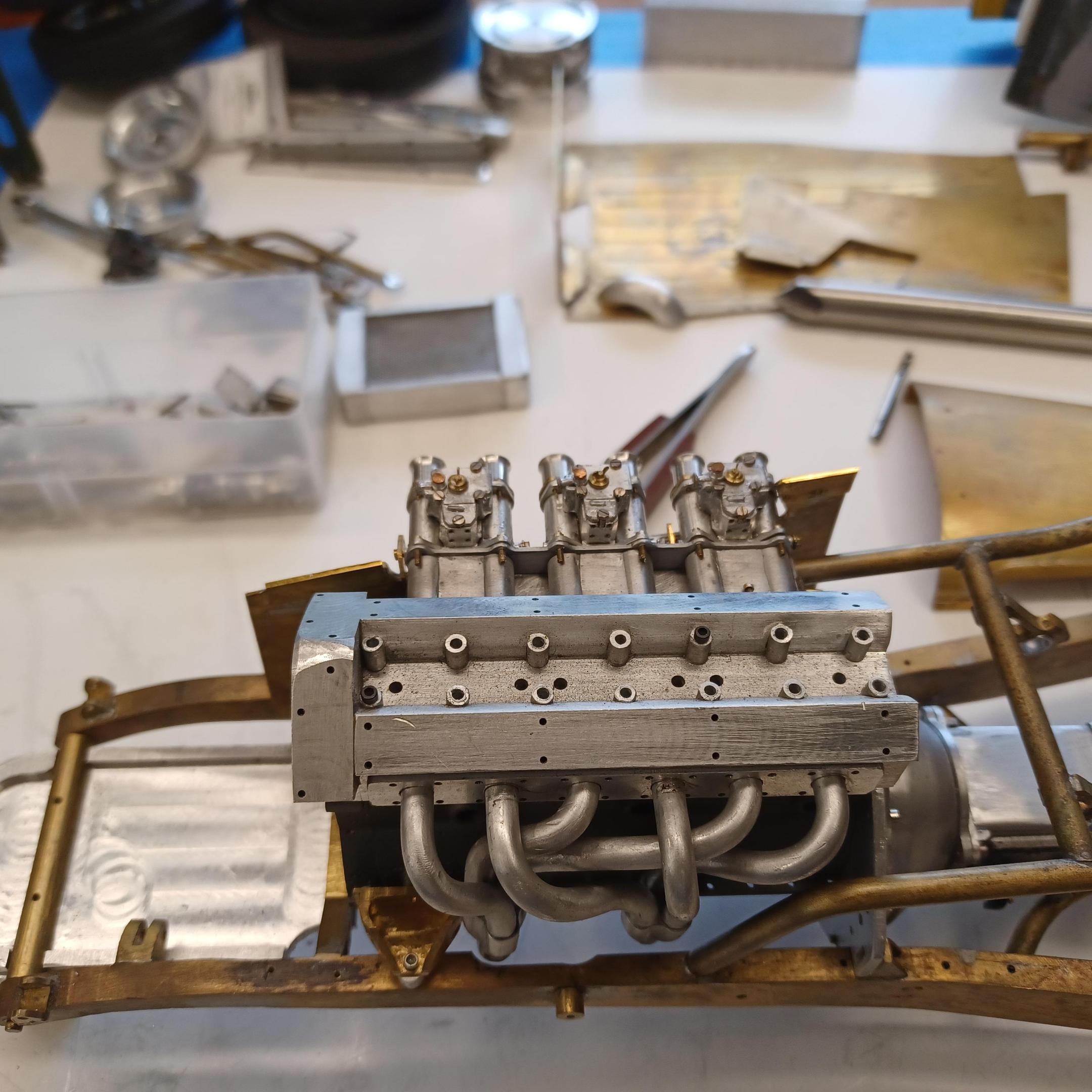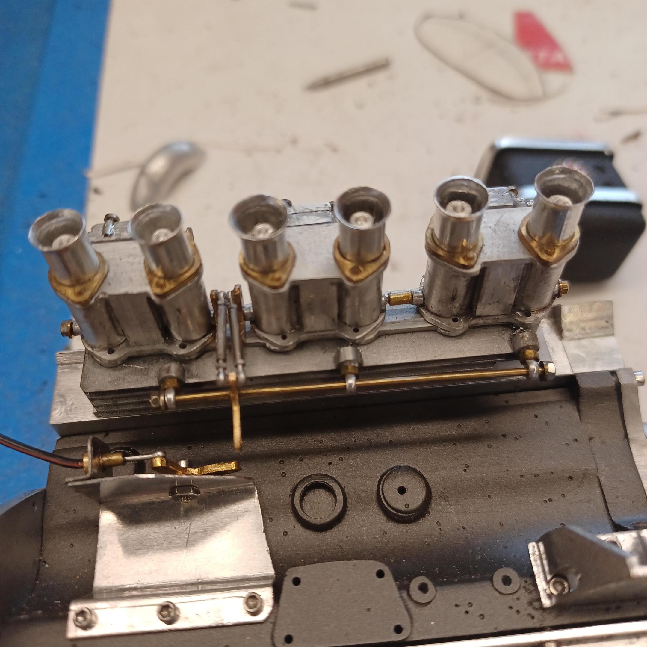 first time attaching the carbs to the manifold all the holes lined up . working on the radiator and water pump. got a good start on the brake clutch and gas pedal. i have to order some rod ends from RB to finish the carb linkage. i am almost ready to start the final finish of each part check the fit and paint or anodize them. i guess i do it different . i make my parts make sure they fit and then finish them for paint. might be backwards .but it works for me. more later,charlie -