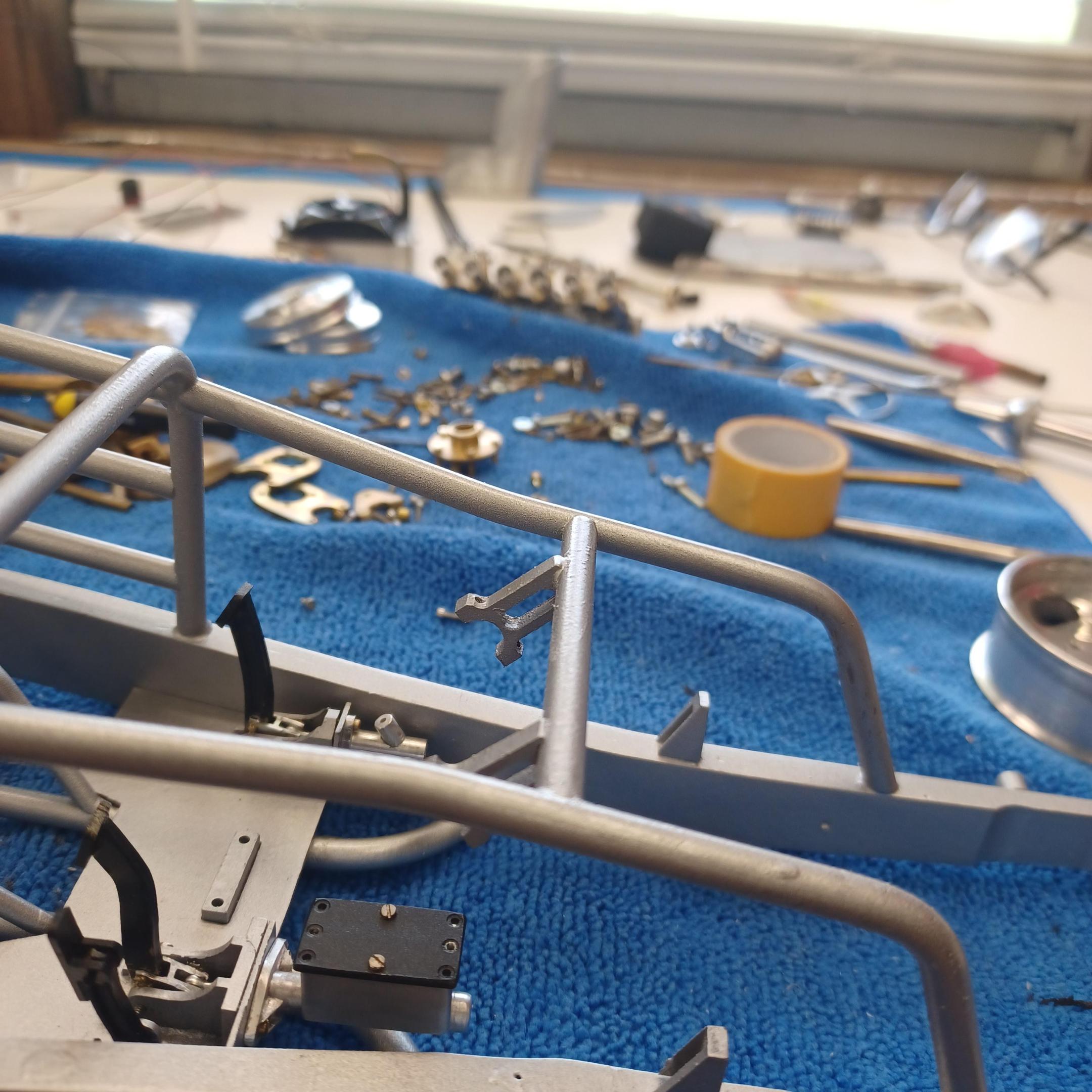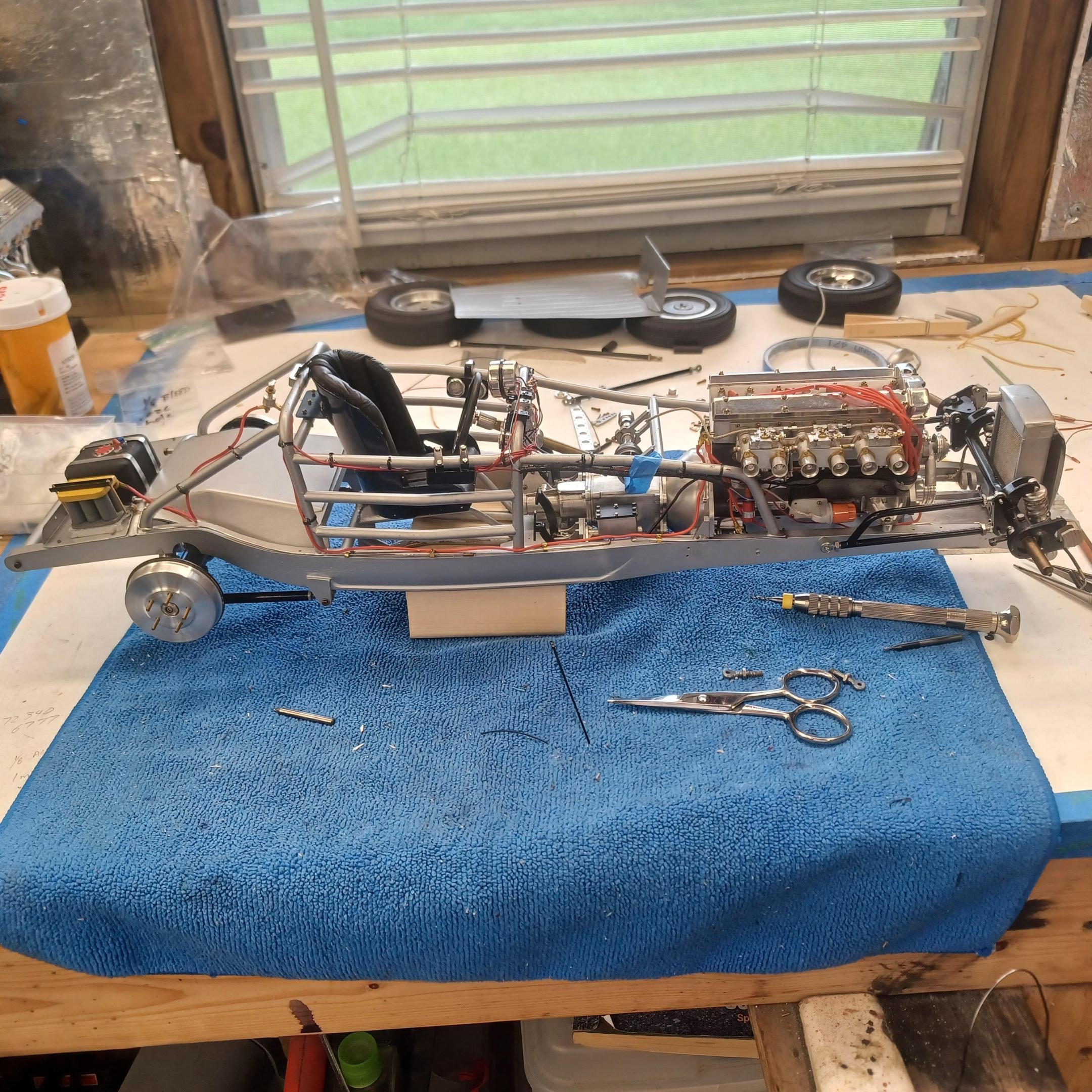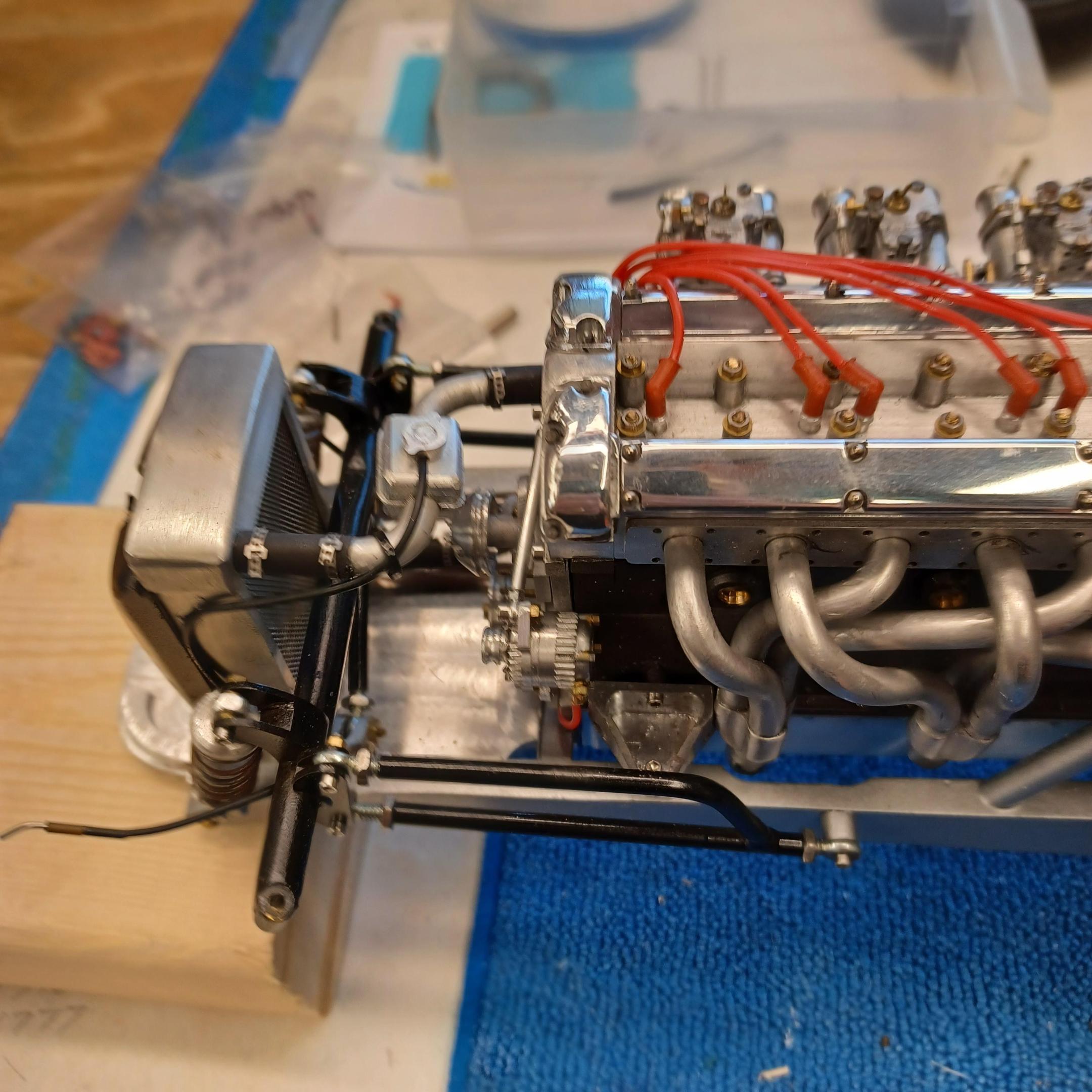 assembly is going well. making detail parts as i go along . made the starter solenoid , got the throttle cable hooked up to the peedal. remade the oil filter amount. the other one hit the frame. radiator and battery mounted.working on the wiring and fuel lines. got fuel line material on order. i am still sanding and polishing the body and body parts, they are looking pretty good. i would like to go to a few shows this year for the first time. any suggestions would help. i have not been to any model car shows. thanks -
