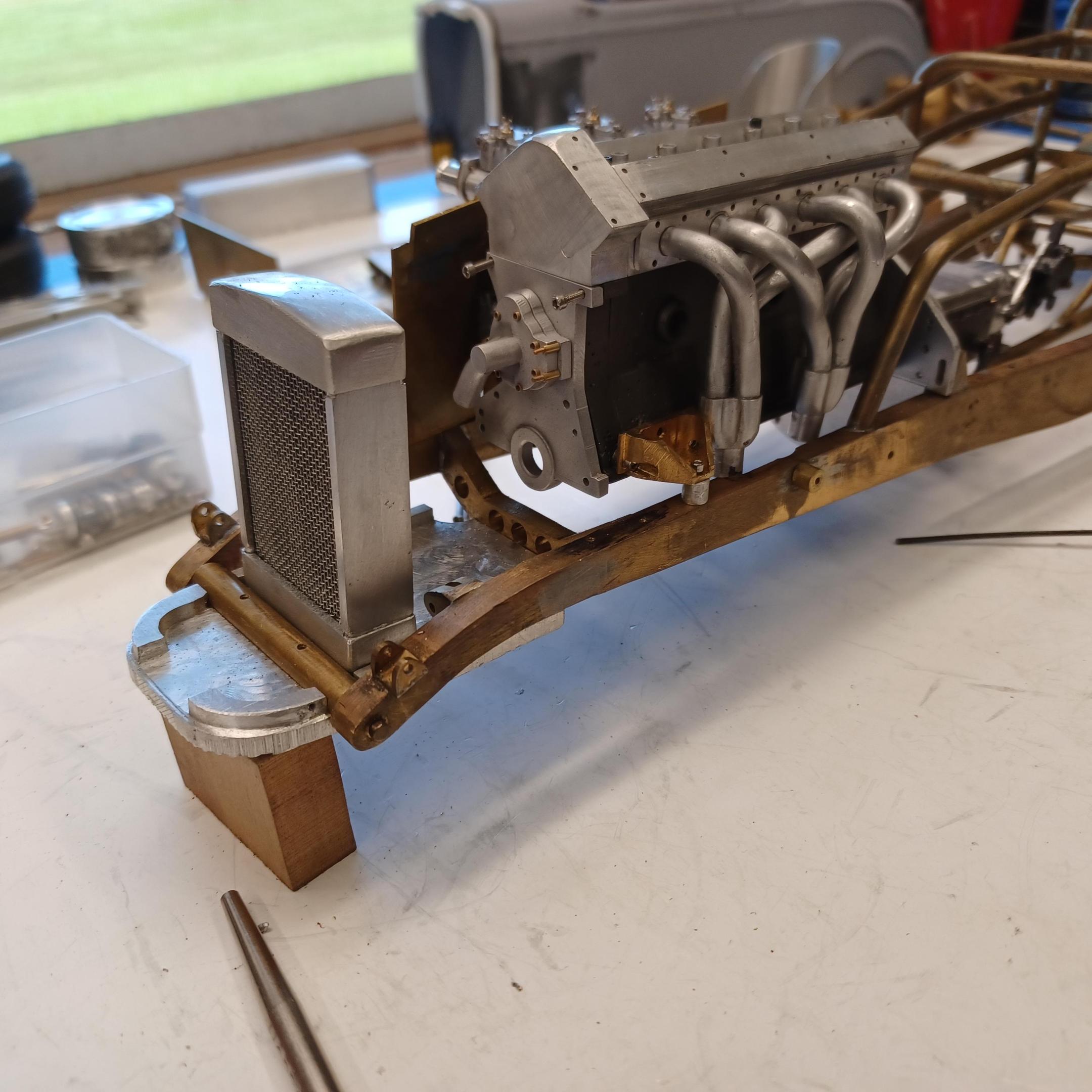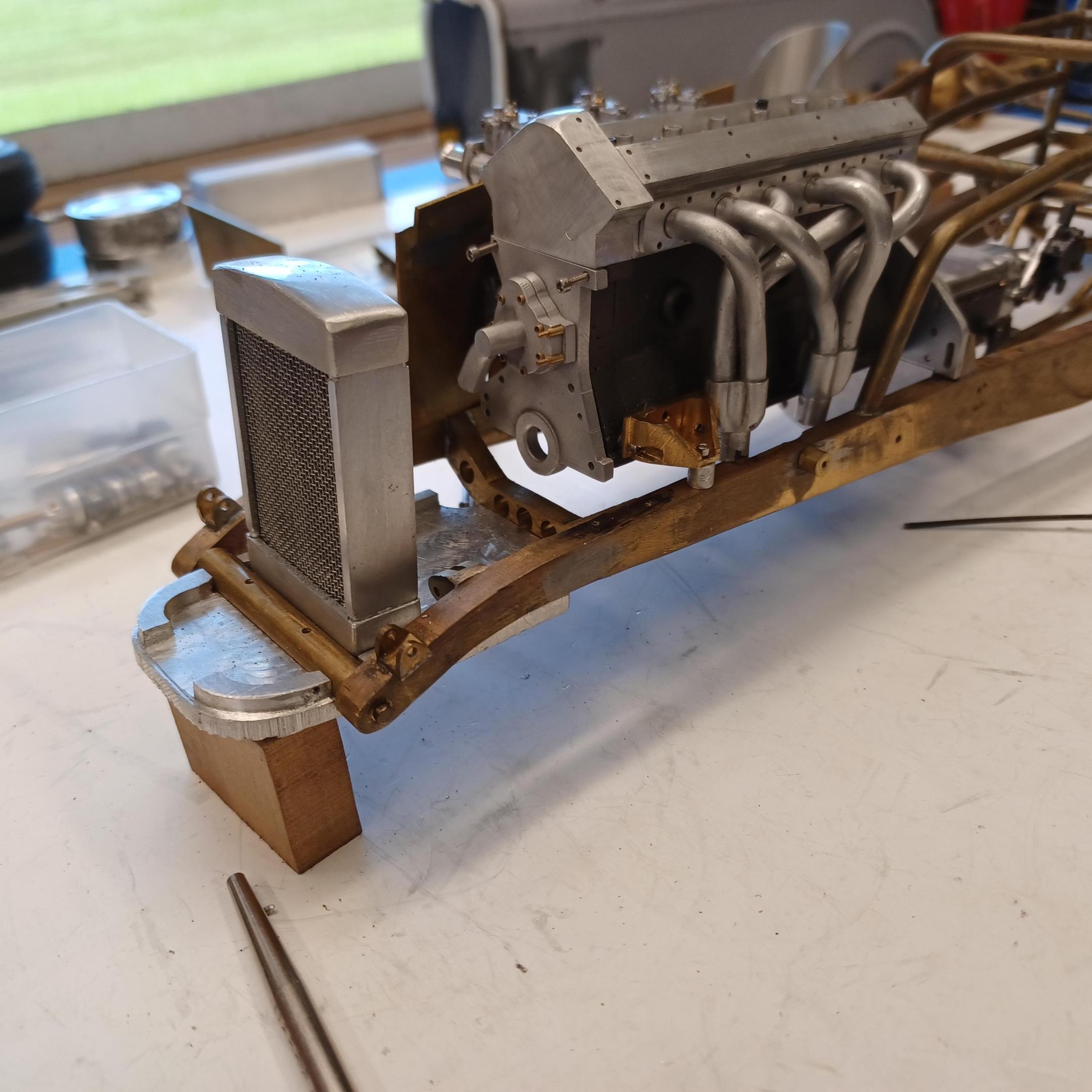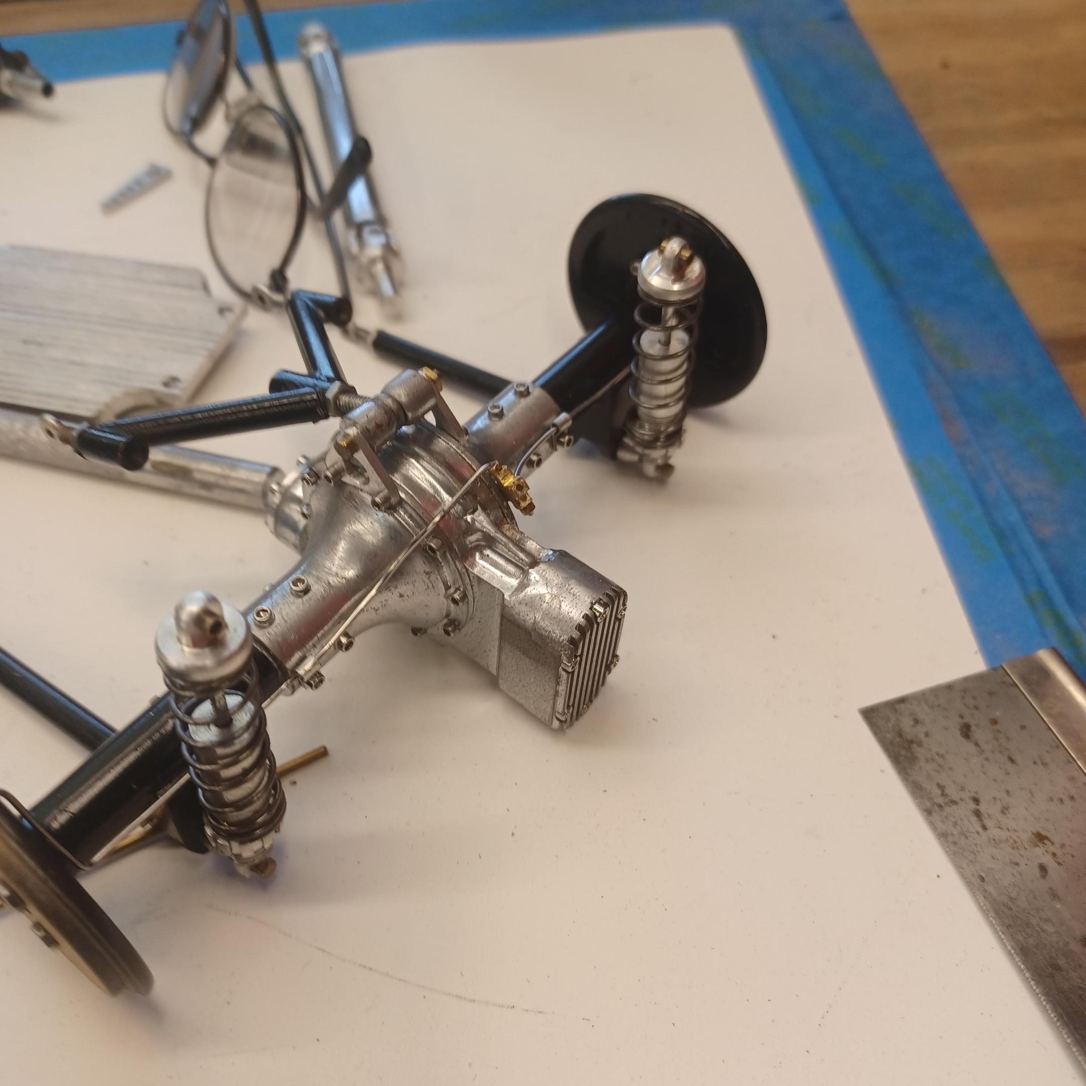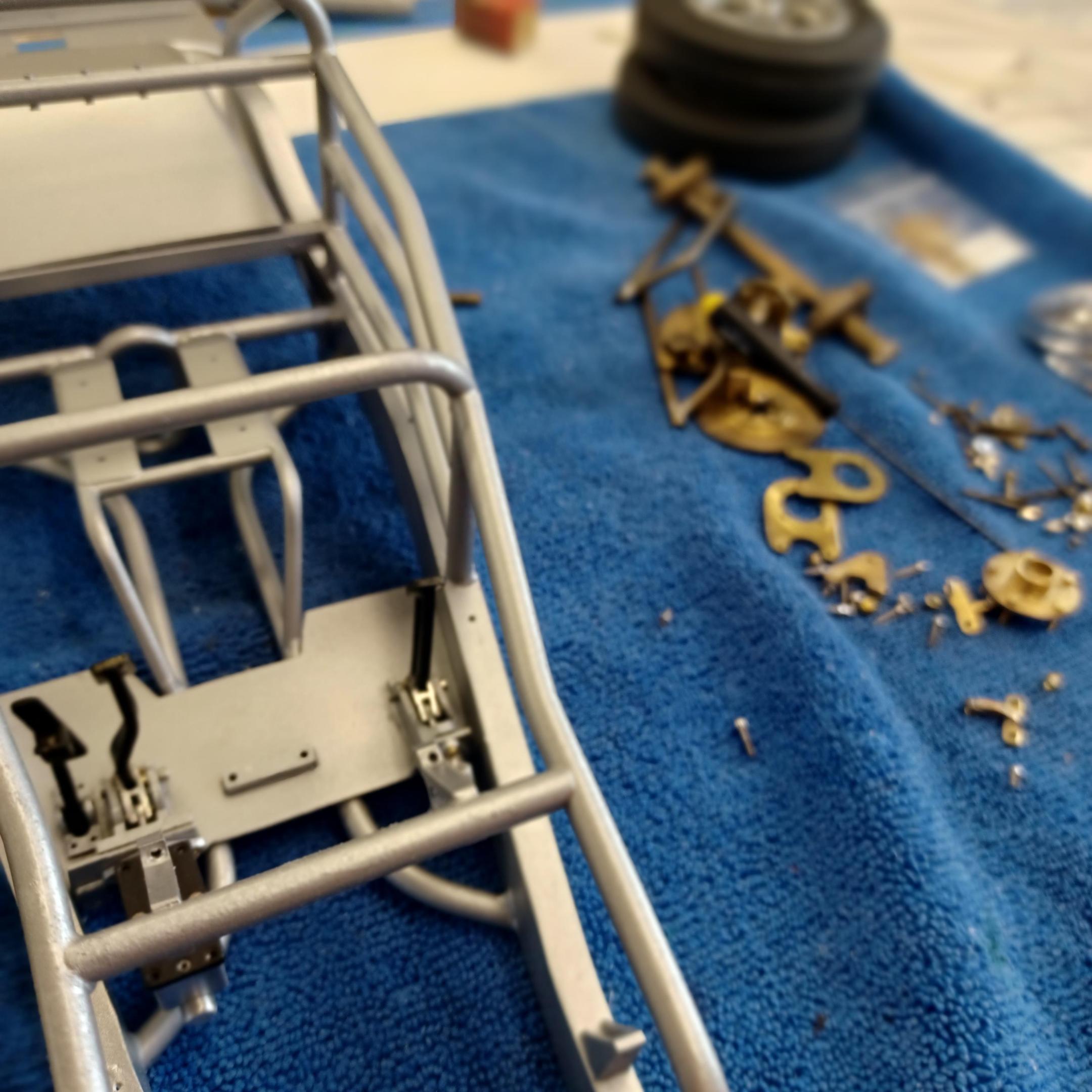 assembly is going well. making detail parts as i go along . made the starter solenoid , got the throttle cable hooked up to the peedal. remade the oil filter amount. the other one hit the frame. radiator and battery mounted.working on the wiring and fuel lines. got fuel line material on order. i am still sanding and polishing the body and body parts, they are looking pretty good. i would like to go to a few shows this year for the first time. any suggestions would help. i have not been to any model car shows. thanks -