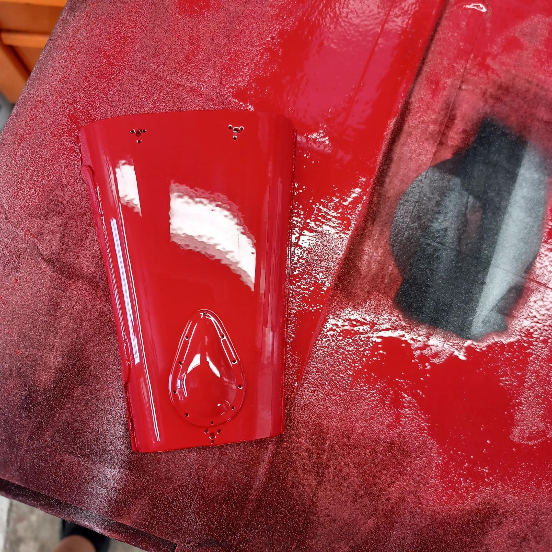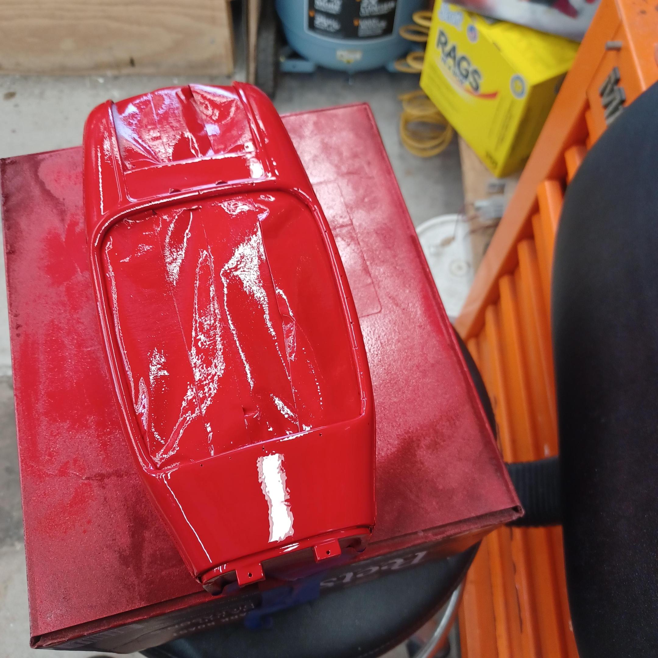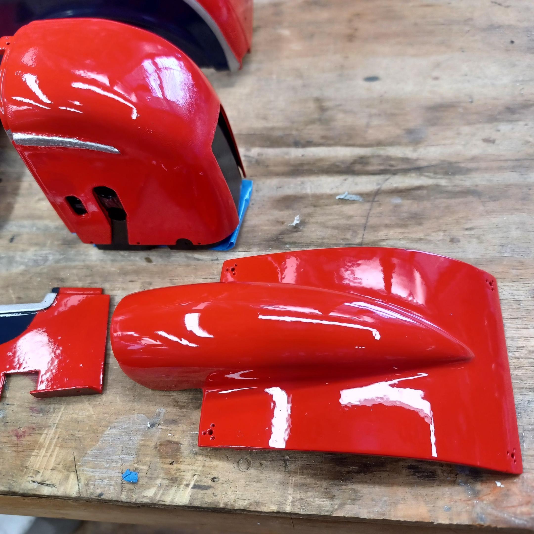 hi andrew nice to hear from. hey noel ,i think you will like my next project. i am trying to design a small english wheel mostly for finish work after hammering a shape. i want to build a body the same as the 1 to 1 car that i did . francis so happy to hear from you, glad all is well.here are a few more pictures of paint and i am in the process of doing finish work and finding things i forgot or missed. the paint looks pretty good after sanding and polishing the clear coat. i have striped the nose to refinish because the sides were not looking as good as the rest of the parts. i have painted the frame argent silver but i have not taken pictures. -