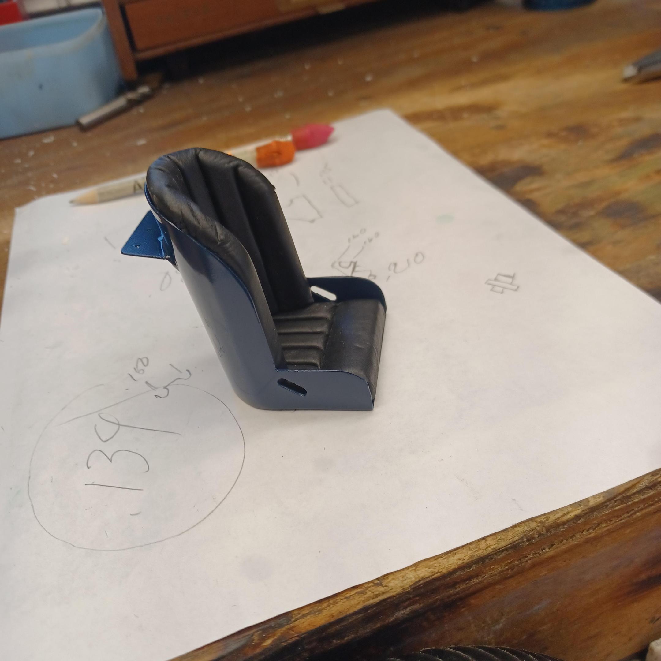 assembly continues. machined the fittings for the fuel line at the carburetor. got most of the wiring run. the wire ties are a time consuming effort. i finished the seat and upholstery. i think the leather came out pretty nice .i have to install the eletric fuel pump and the fuel line going forward to the webers. not alot left to do . maybe have the body on by the end of next week. turned 69 last Friday and my birthday present might eat up some of my time. that truck is a blast to play with. andrew i am looking at your info and i hope maybe to make one of those shows. -