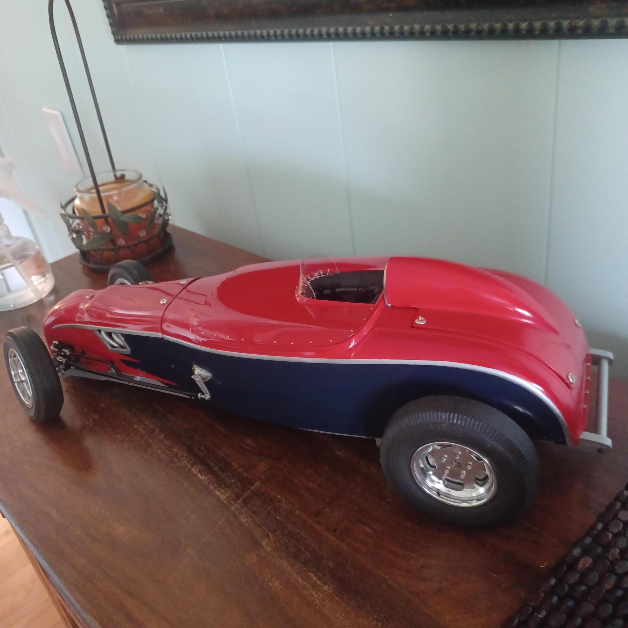 just getting started on this project. i believe its going to be a long build. i am building an English wheel to help with the metal forming, i hope it works. i just got the metal today to build the frame for it, I'll get started on the it tomorrow. i had pictures of the car blown up to the correct 1/8 scale dimensions and am building a body buck from those. i have a few pictures of what i have done so far. i built this car body in full size a few years ago and sold it unfinished. last i heard it is in a hotrod shop in Detroit being finished. i can only find a couple of pictures right now.thanks for looking.
