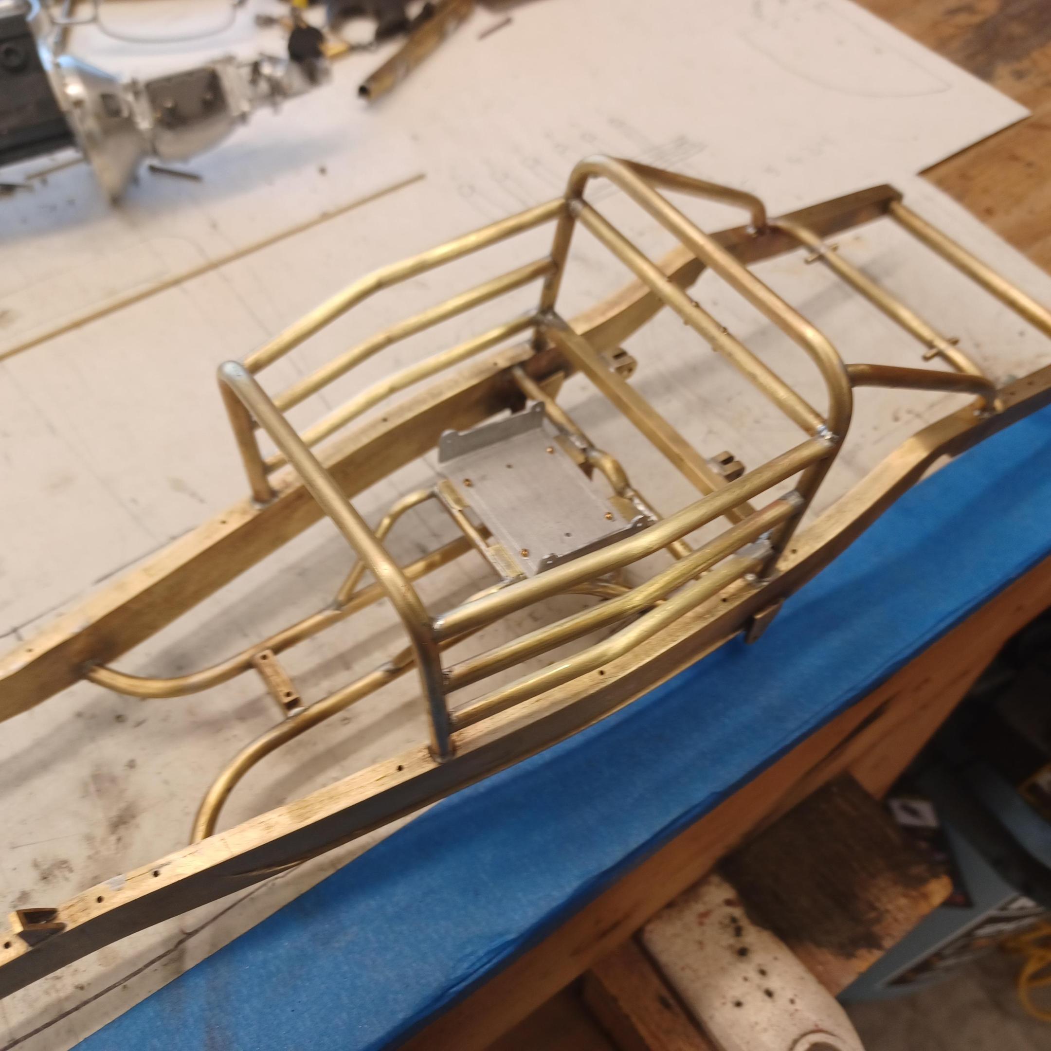 first time back. i have still been working on my project. i think i have my computer back to normal. we will find out, if i can include pictures. it worked ! ok, this is the center steer box. i have used it on several 1 to 1 cars. very common in sprint cars. the 2 brass pcs. are the mounts for it. just got started on the radiator. i have been working on the rear floor pans. not quite done yet.glad this is working again. i know nothing about computers. if they don't do what they are suppose to do i am lost -