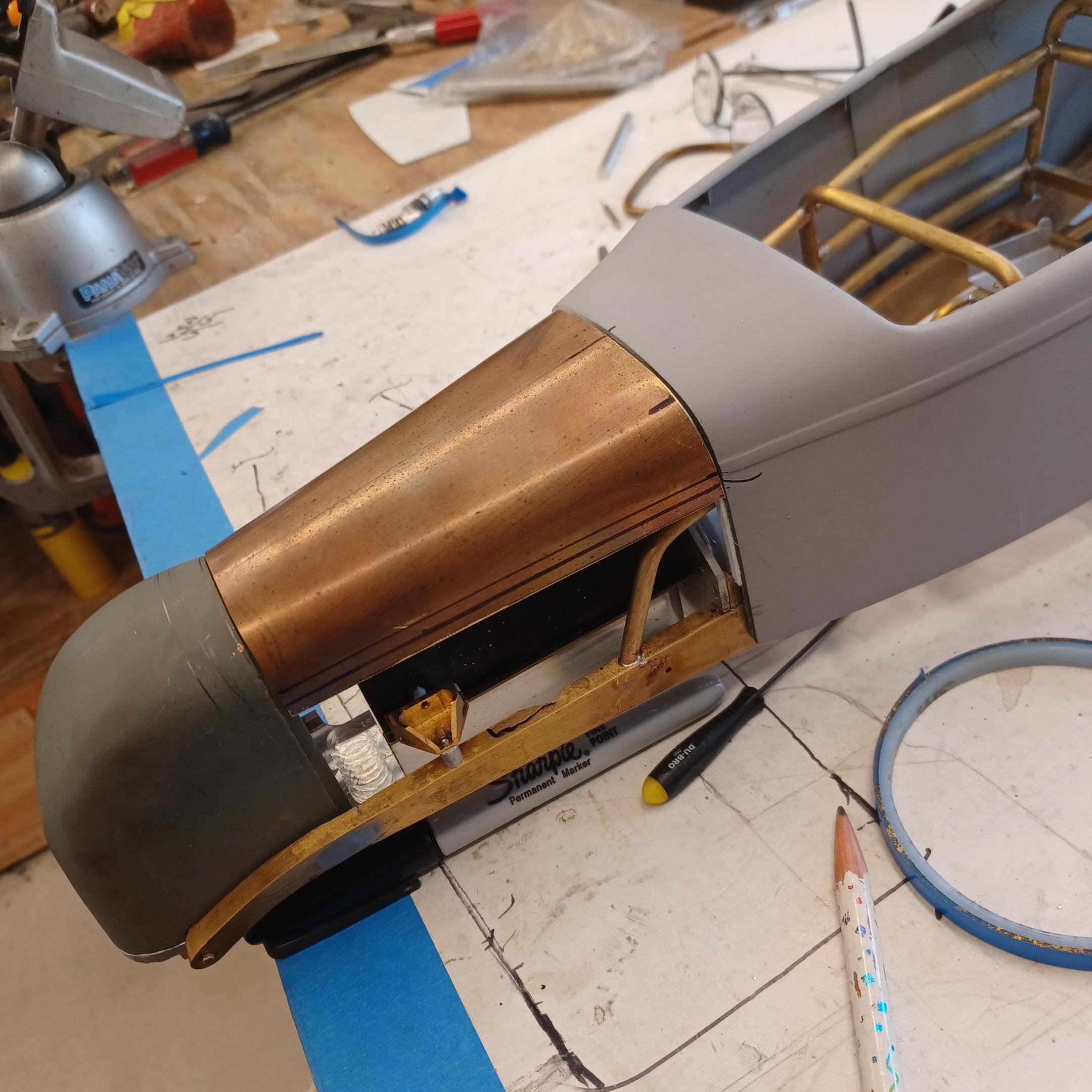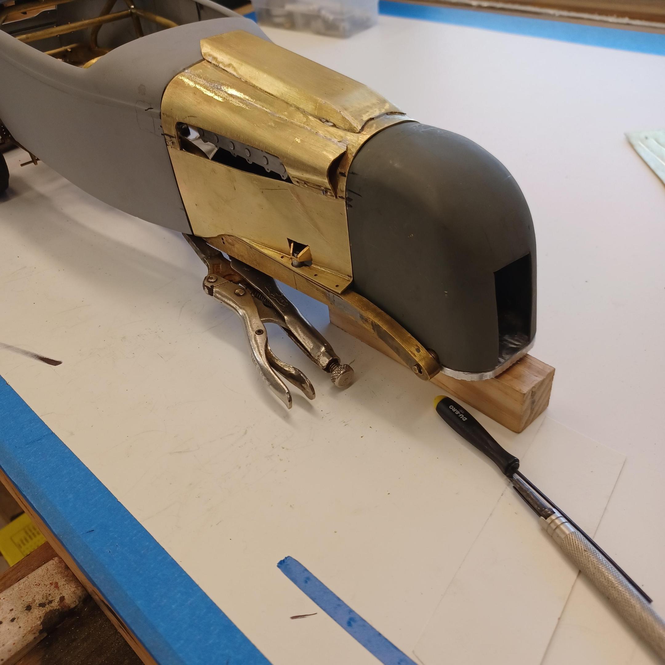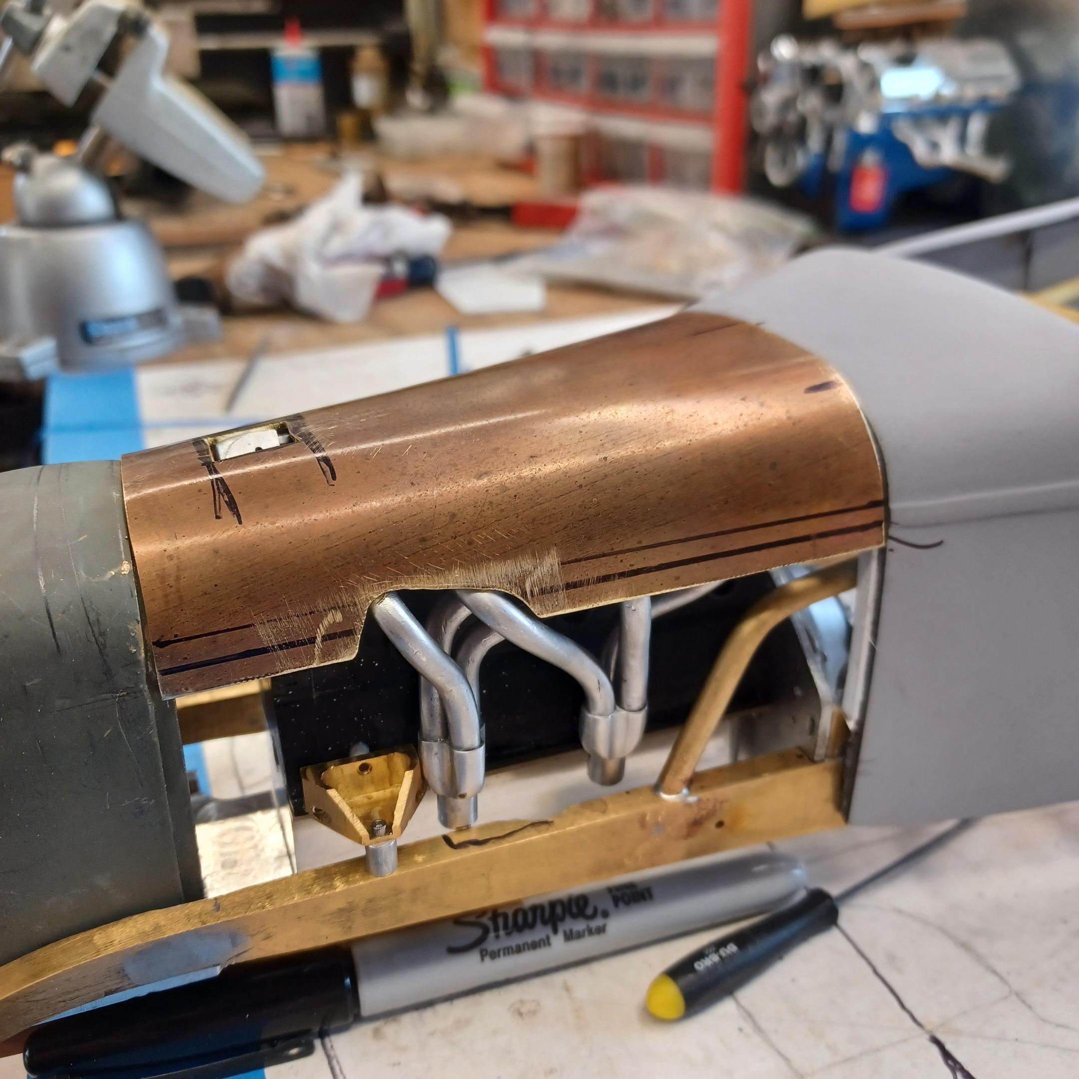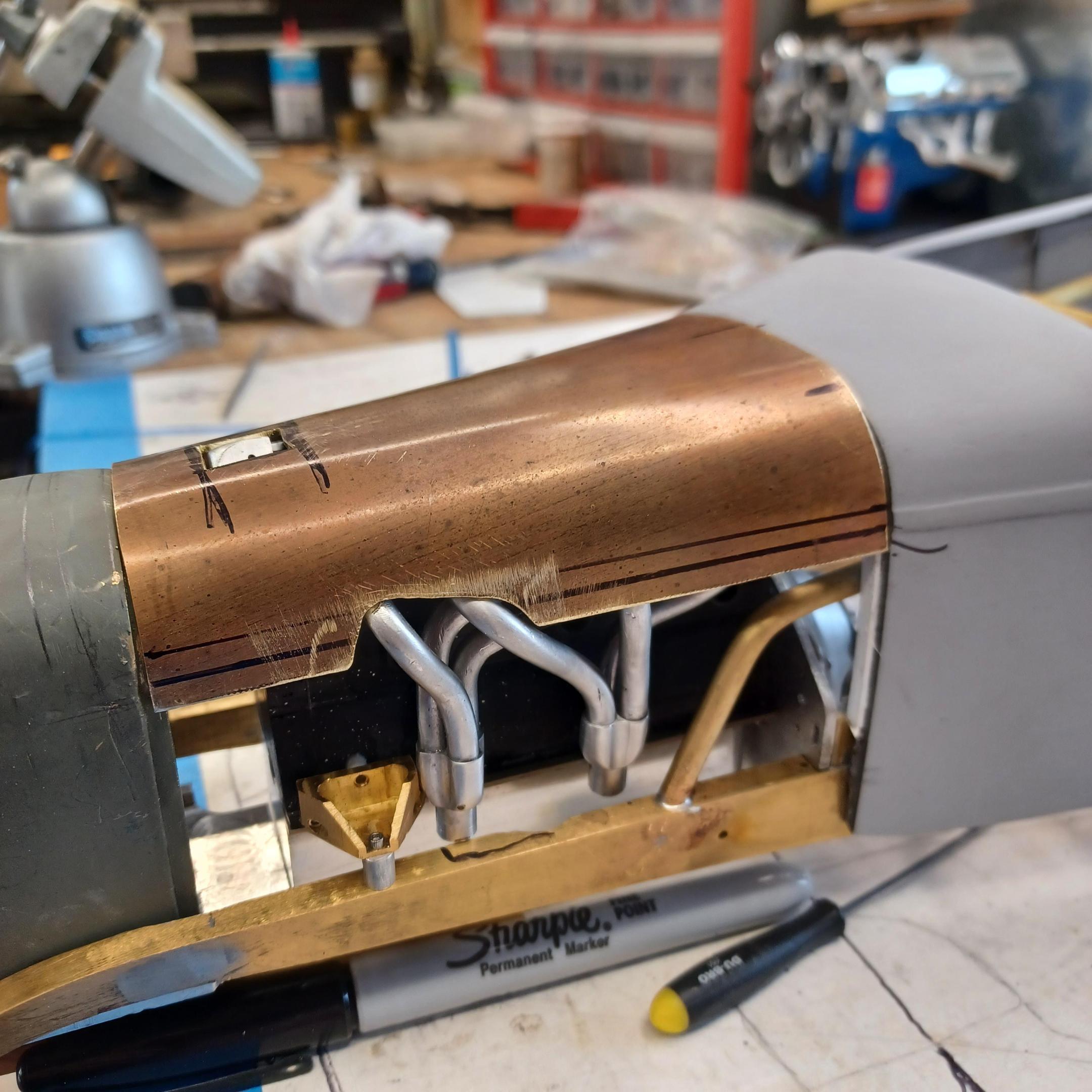 hi francisnice to hear from you ,cant wait till you start machining aswell. always fun to see. andrew i think maybe a window on the bottom of the bell housing. dave , you tube for the anodizing, great source. thanks for your kind comments bill. rattlecan dan, i ordered some soldering wire for aluminum and should be making an attemt next week . i will post pictures nomatter how bad they look. started and finished the rear shocks. they are better i think than the last ones. felt like playing with sheet metal today so i started on the hood. not sure what the final hood will look like just going with the flow. alot of things in the way. happy st. patricks day -