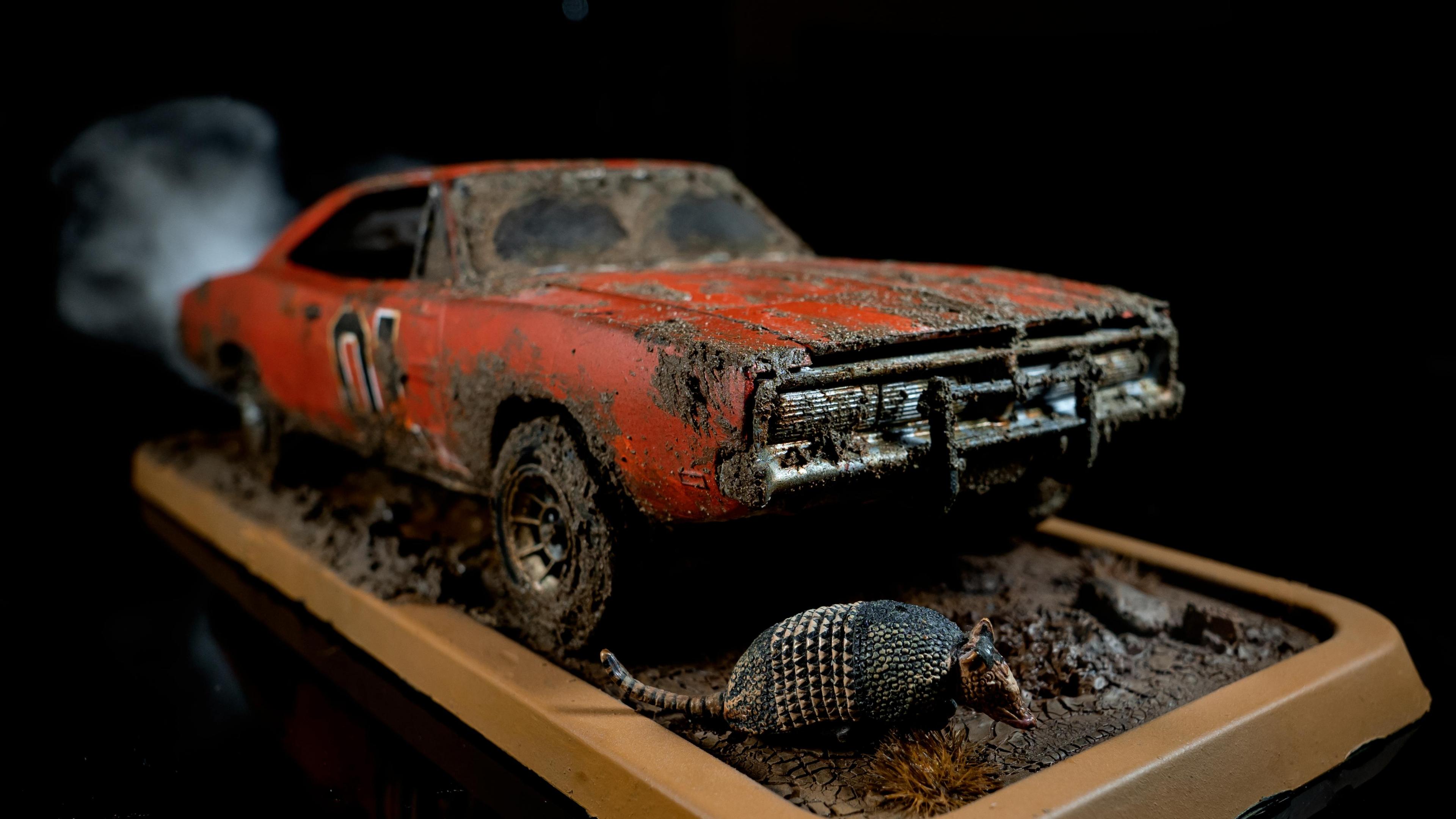 My old general lee was badly painted and built, and I to give him a new life, create a little mud diorama and take some funny photos.