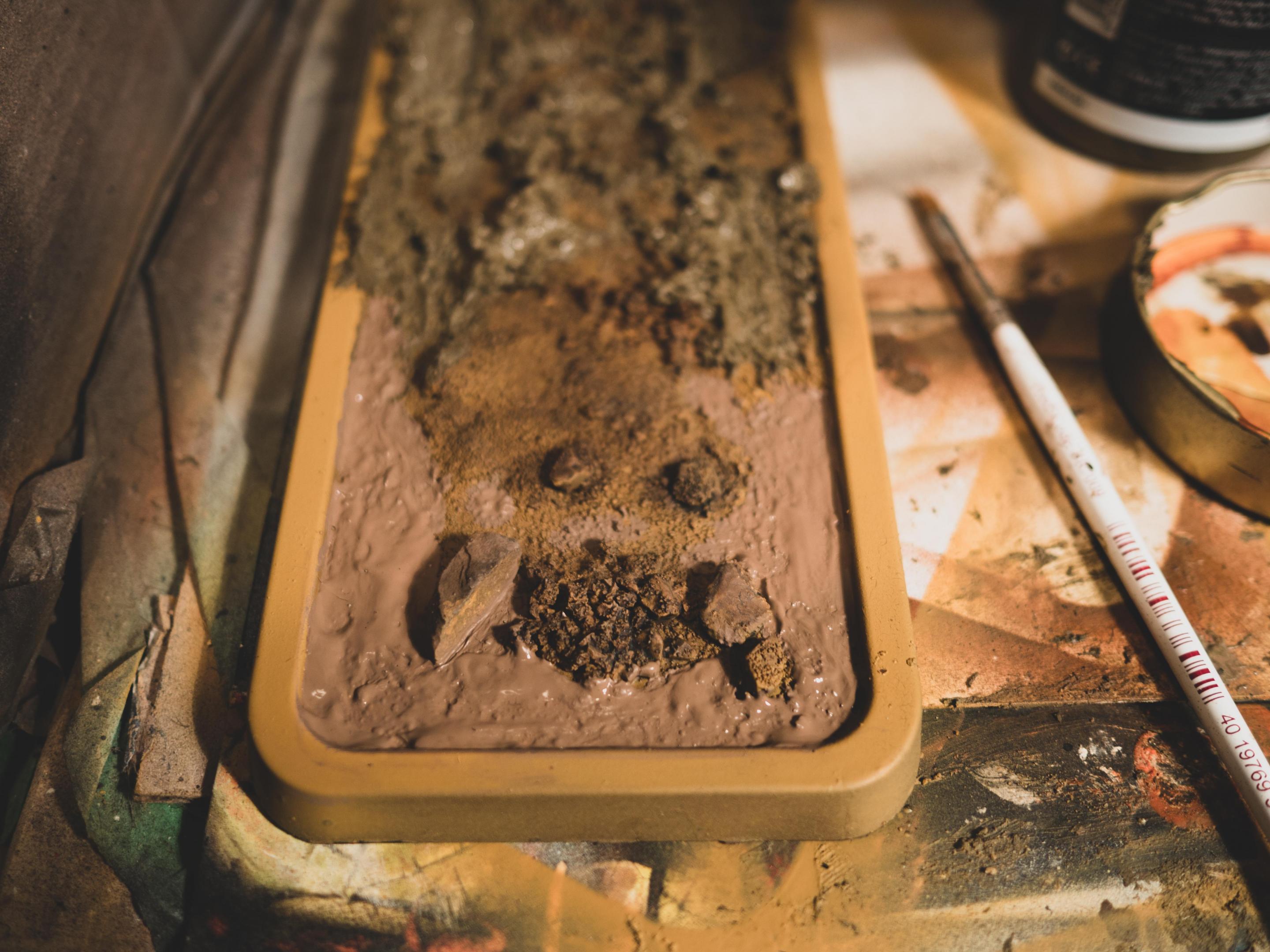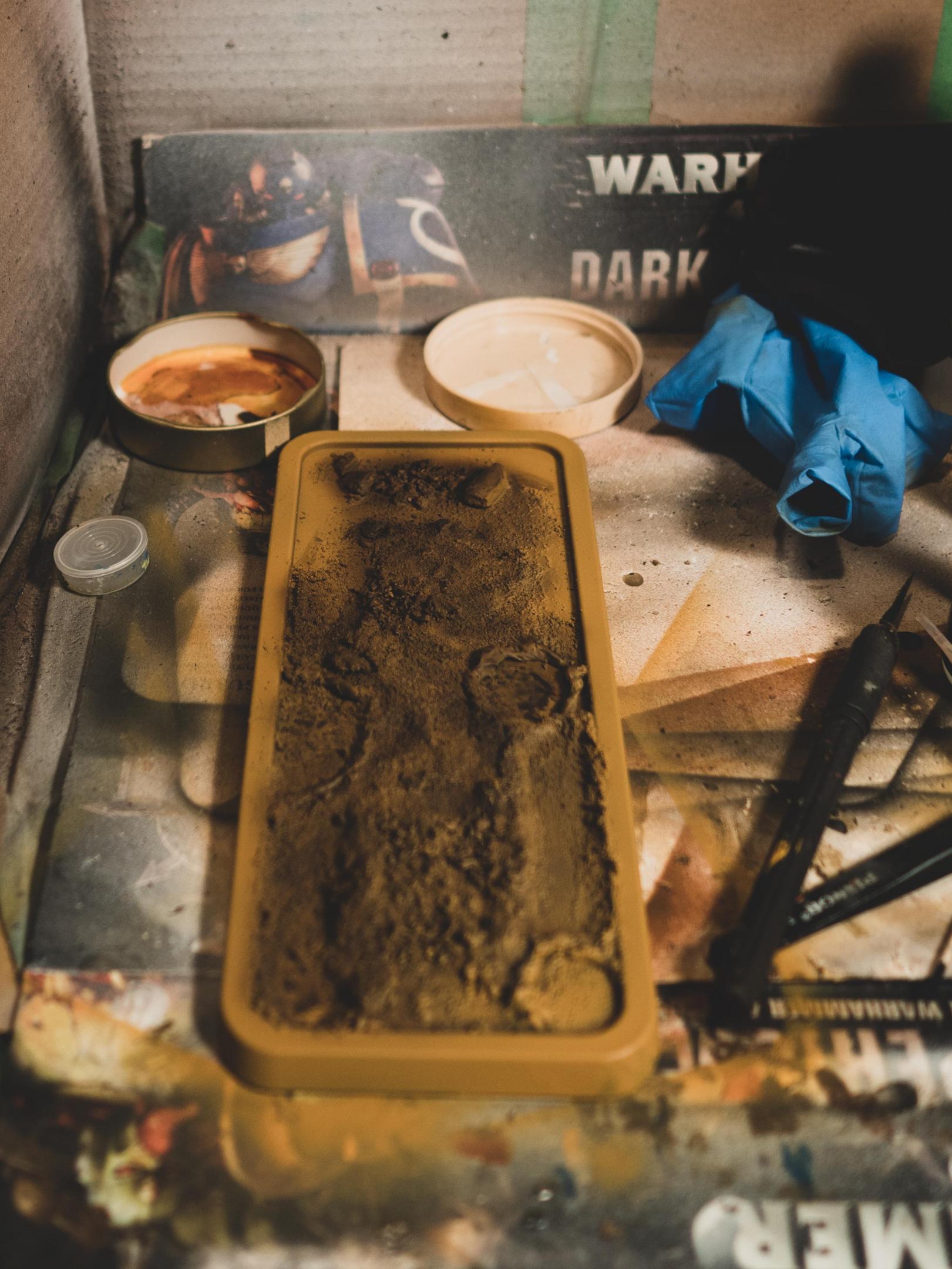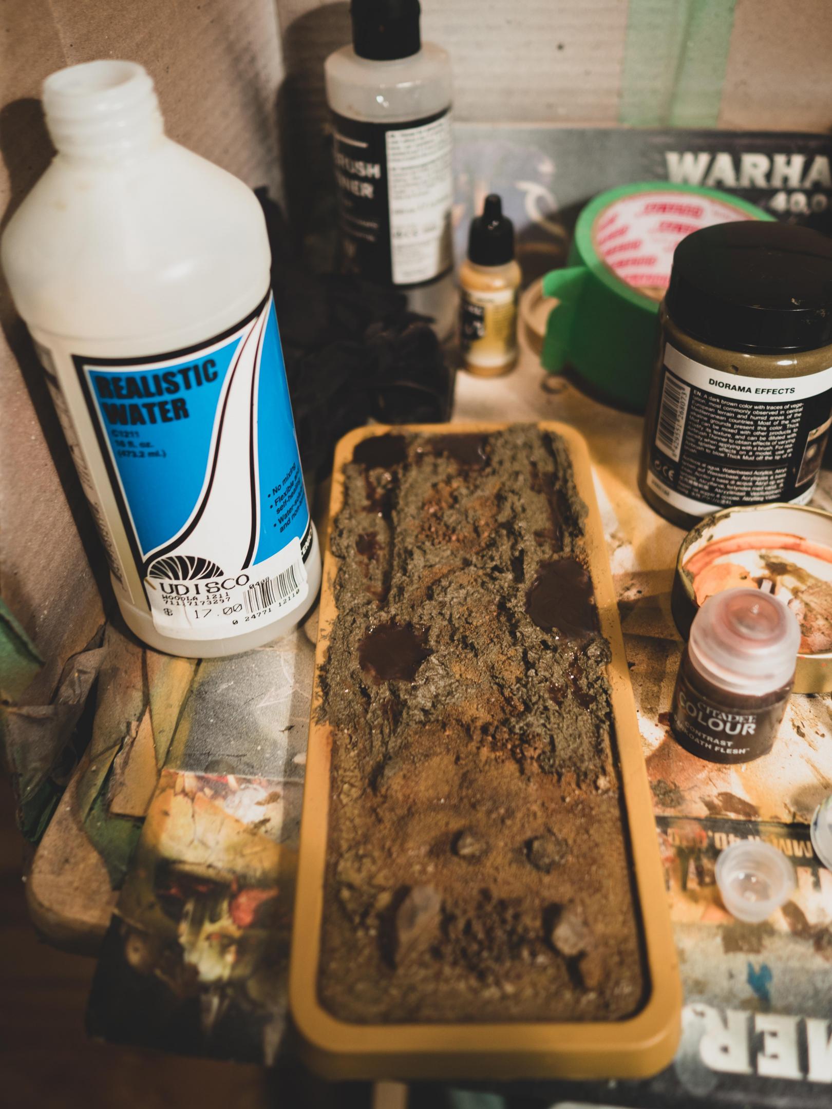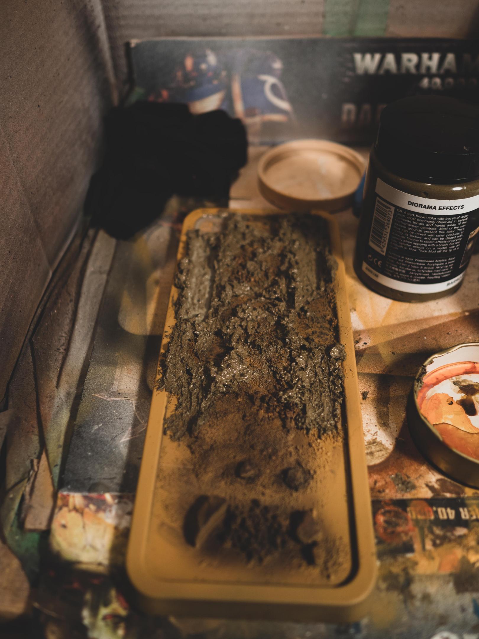 The Vallejo mud is quite good, its actually looking like the real stuff...and its easy to add some paint over or add some ink, etc...its also acrylic, so not really toxic.