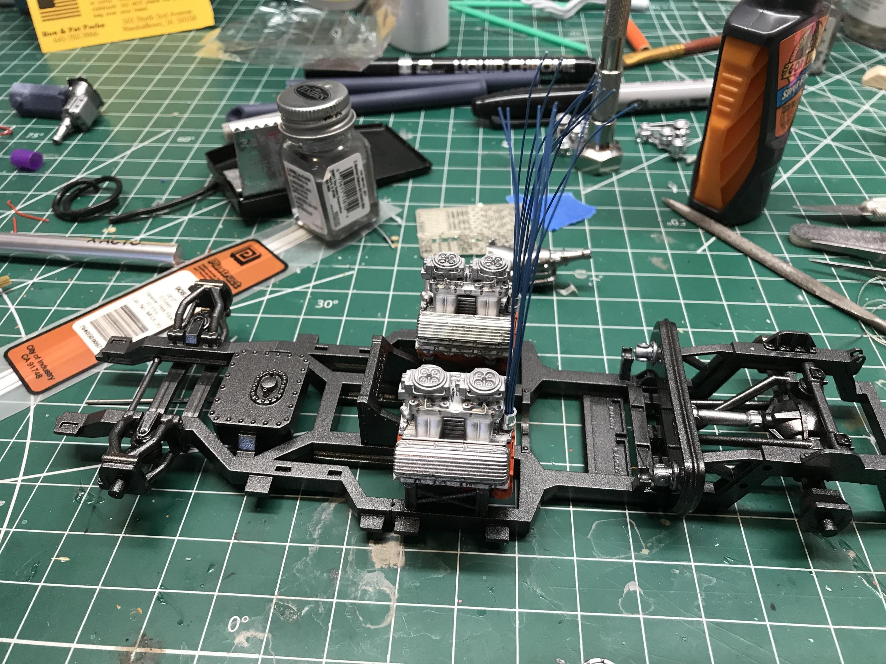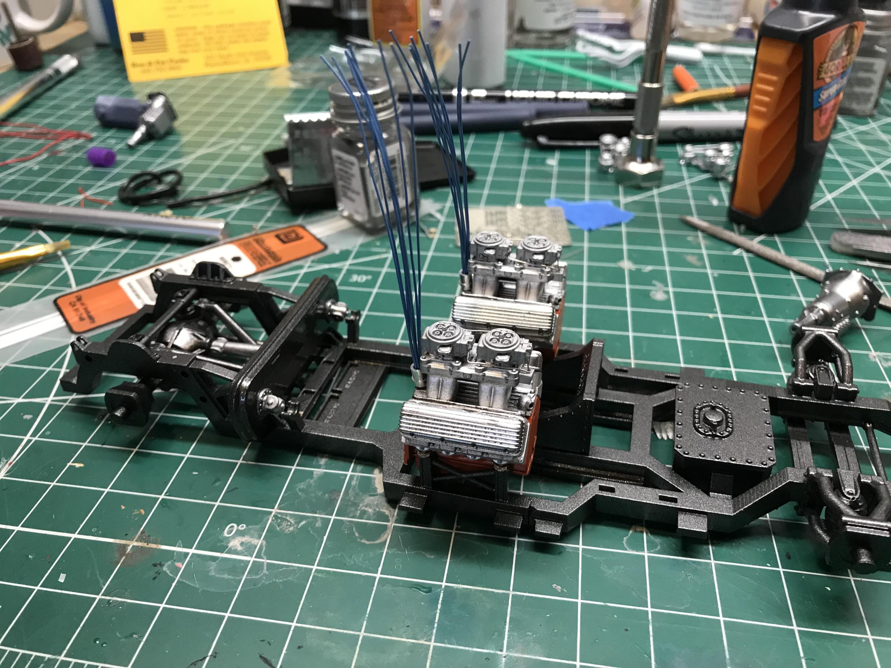 17. I am starting my next build. It’s the 3D printed Black Box Twin V 8 truck. I’m going to try some detail work, which I haven’t done in years. Hopefully it turns out as well as I plan.