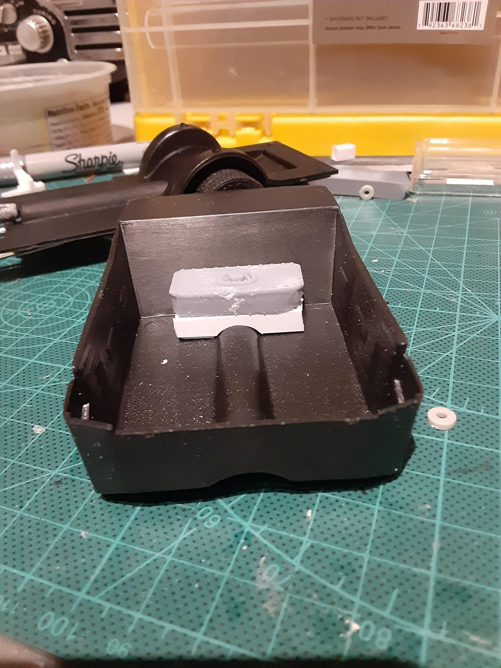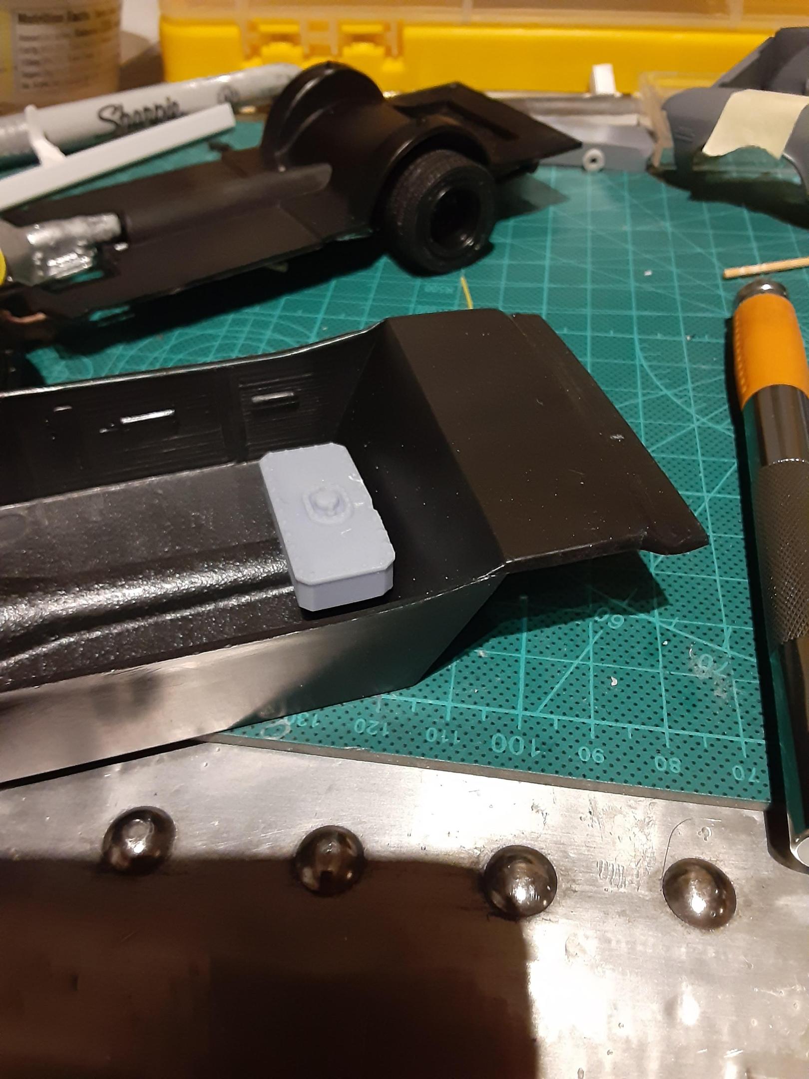 I decided to modify the large tank into an even bigger tank rather than run 3 smaller ones. The thought process behind this is to speed up refueling and the weight of the car wouldnt be thrown off as each tank was used up. This is a rough mock up ill smooth it up when everything dries