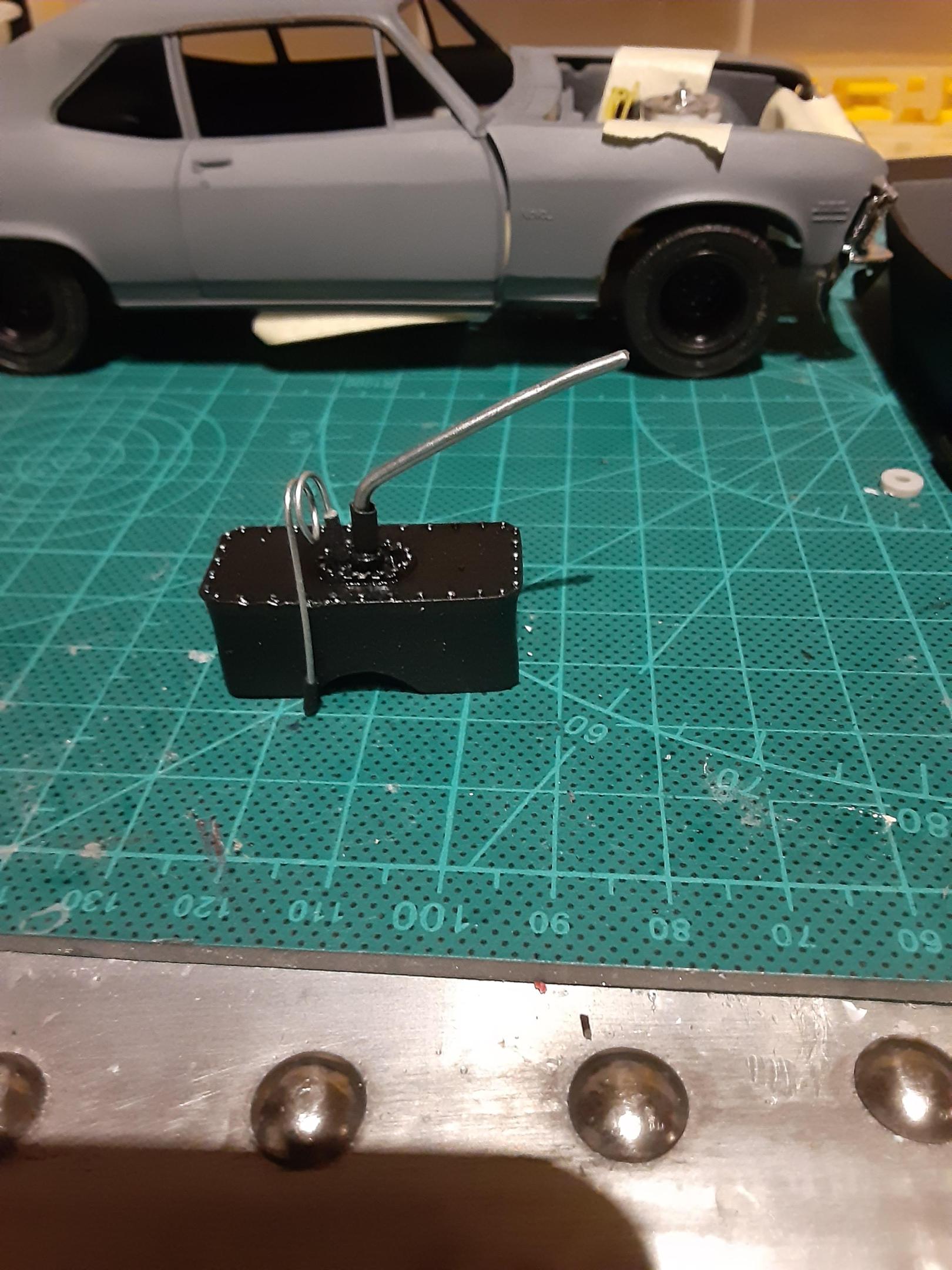Got the modified fuel cell all assembled. The fuel neck will be accessed through the quarter glass. The smaller line is the vent, its looped incase of a rollover -