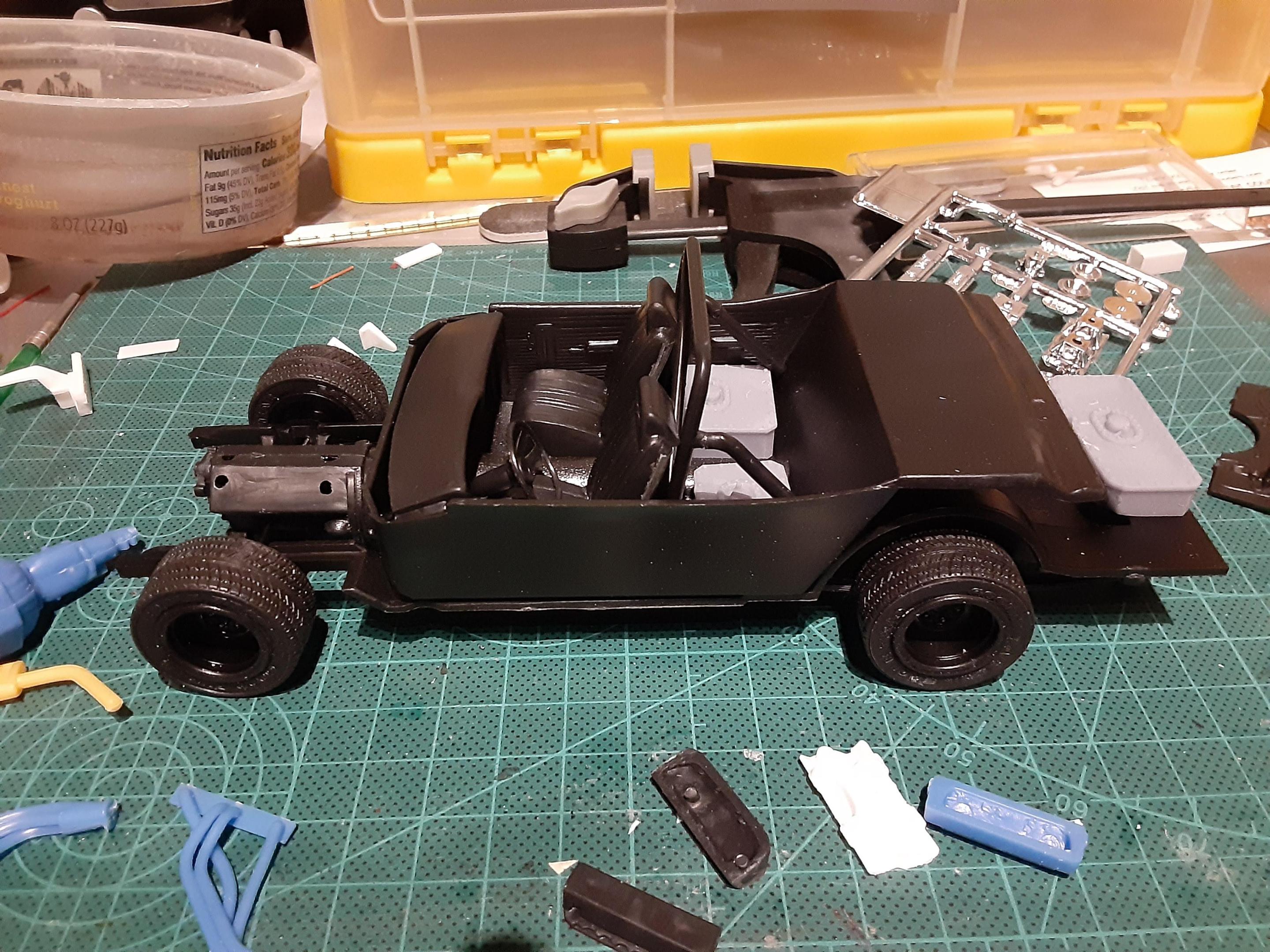Bodys in primer, got the wheels all painted up and assembled. This has got to be one of the worst fitting kits ive done, so lots of fitting and re-fitting