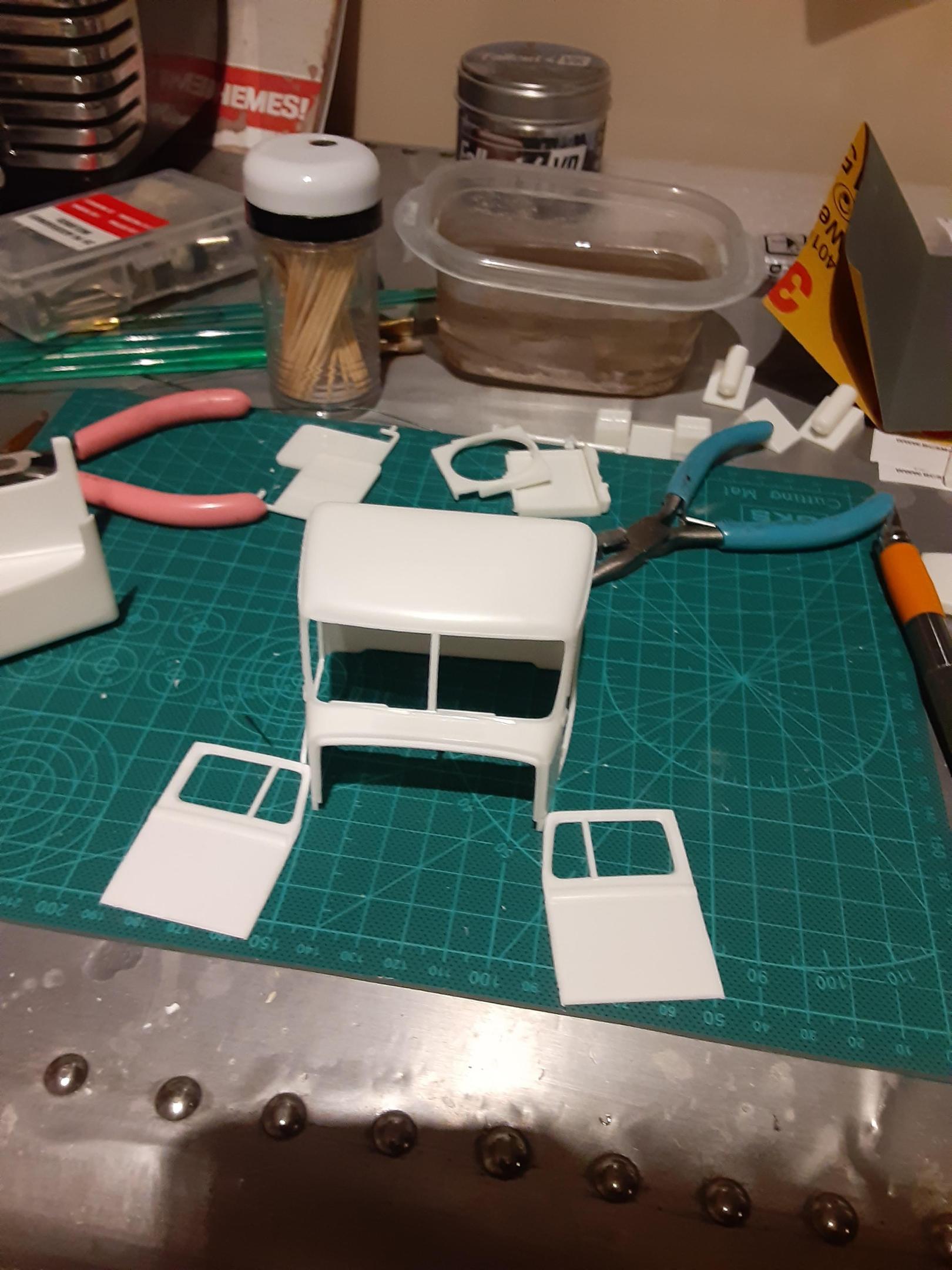 Got the chassis and components painted. Cut the doors open and hinged them will i wait for parts to dry