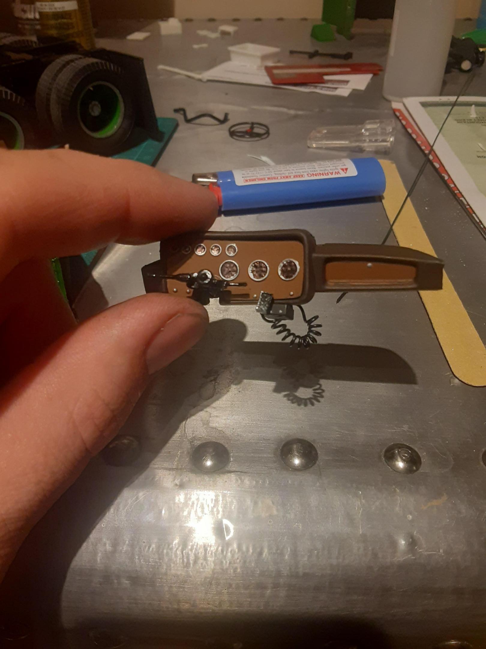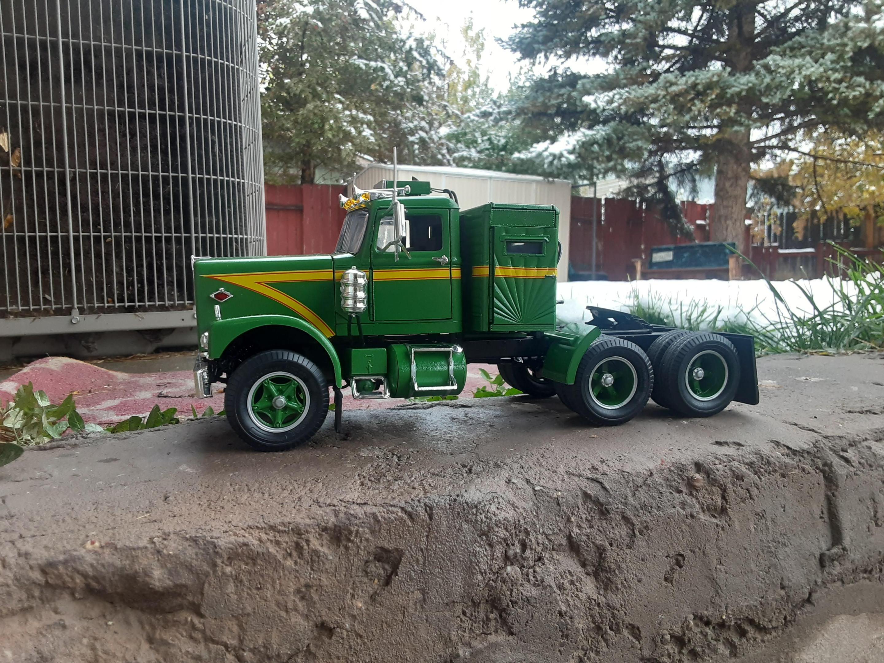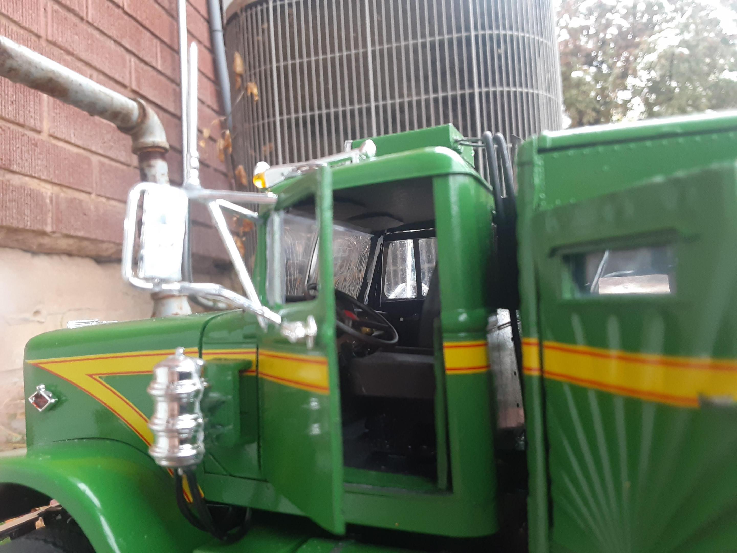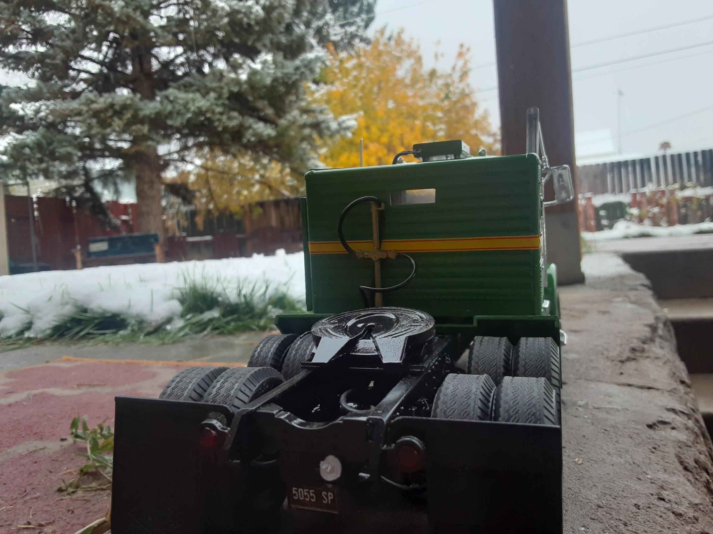 Got this one wrapped up. Made interior panels for the bunk to match the cabs interior. I sanded off the 5th wheel plate guides so i could shift it back a little bit, shaved down the pass through, and modified the exhaust to allow the sleeper to sit closer to the cab. This is the first time ive done a vehicle to match the box art.