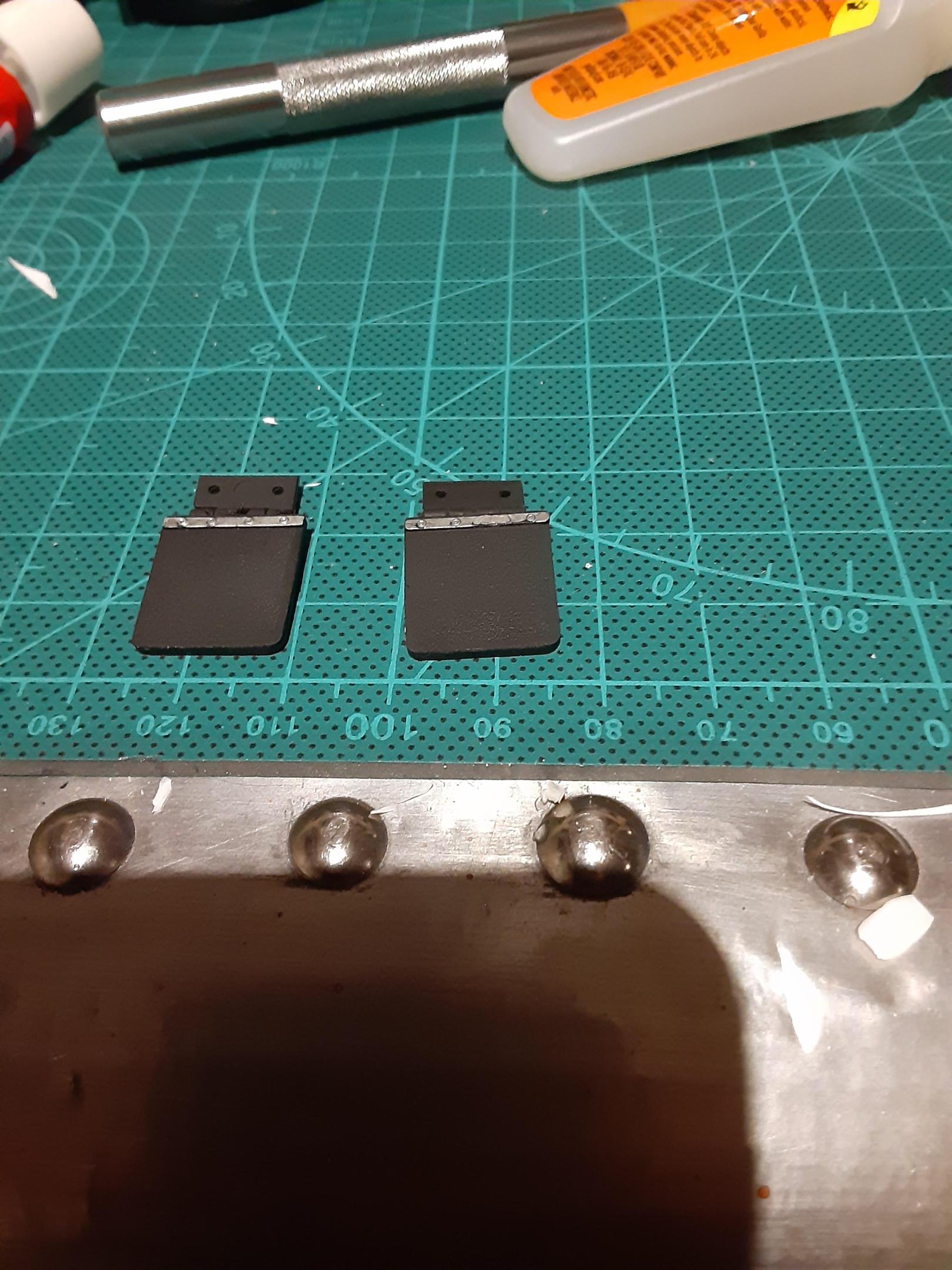 Got more work done. Added these little plastic hinges to the front mudflaps so they can move when opening the hood.