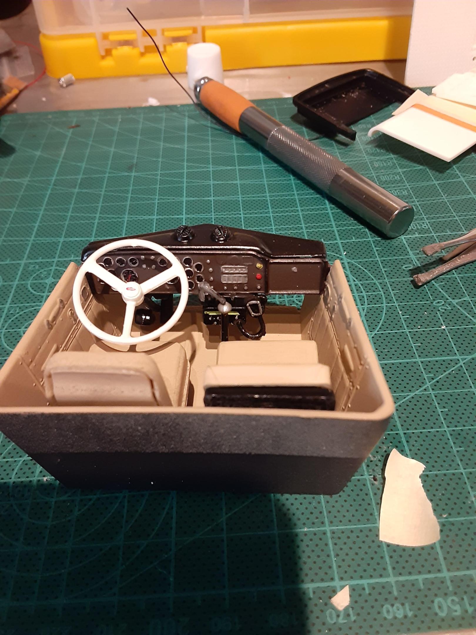 Got the interior built while i wait for the replacement frame and suspension. Luckily it was complete sans the steering column, so i robbed a replacement one from the parts box -