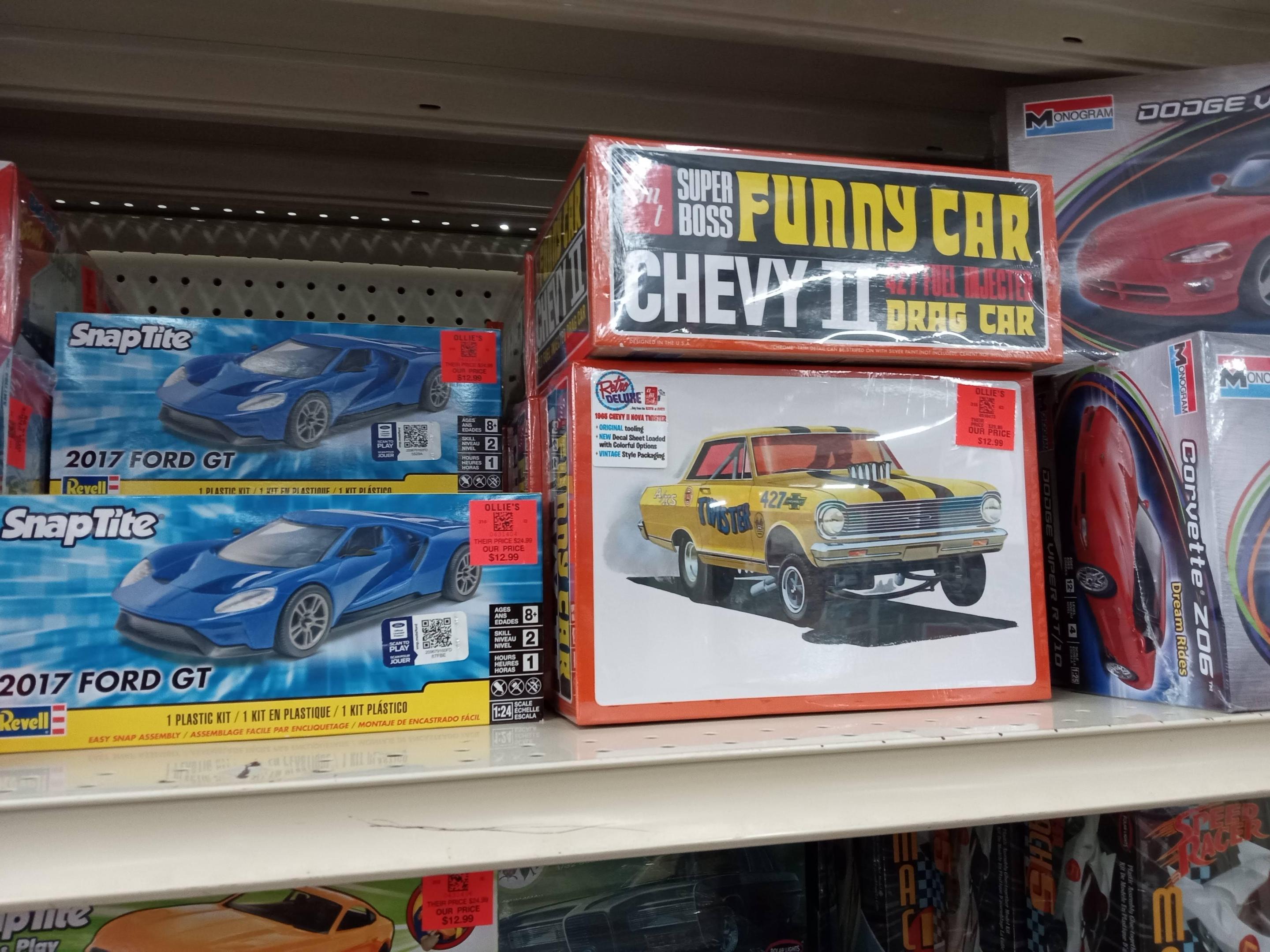Ollie's strike againRSchnell replied to GLMFAA1's topic in General Automotive Talk (Trucks and Cars) Hit the Merritt Island, FL Ollie's today. They had the '65 Fairlane & Chevy II gasser on the shelf and the rest of the kits mixed in with the toys on one of those movable display racks they like to use. I grabbed a few & left the others for the resellers!