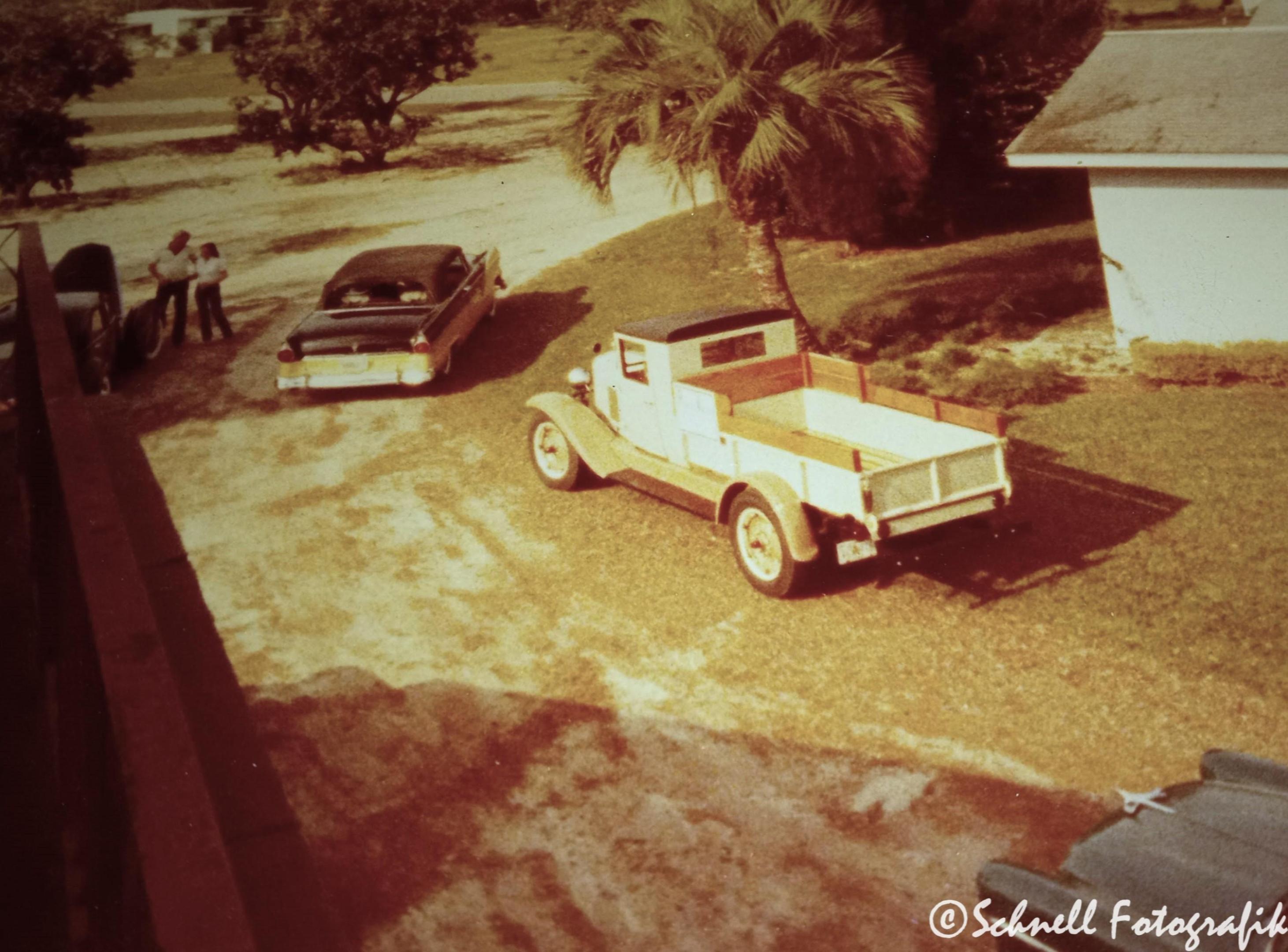 A post in the Atlantis thread prompted me to dig out a photo album looking for a certain photo. Figured I'd post up a few here & there from my personal collection of cars, shows, tours that I've done over the years. If there's enough interest, I'll make this a regular thing. 99% of these have never been published anywhere, I don't mind the pics being shared, just give credit. This post is from a club tour to a family friend's grove barn back around 1985. A typical spring Sunday afternoon here in Central Florida back then. He was big into trucks, that's his White with the solid rubber tires and a mid 30s International under the barn. The yellow & black '55 Ford convert was my Dad's, as was two of the Model A's. The '37 Cord was owned by a close family friend. He toured extensively in that car! I used a 110 film camera so as you can imagine the quality isn't great-but I was a kid!