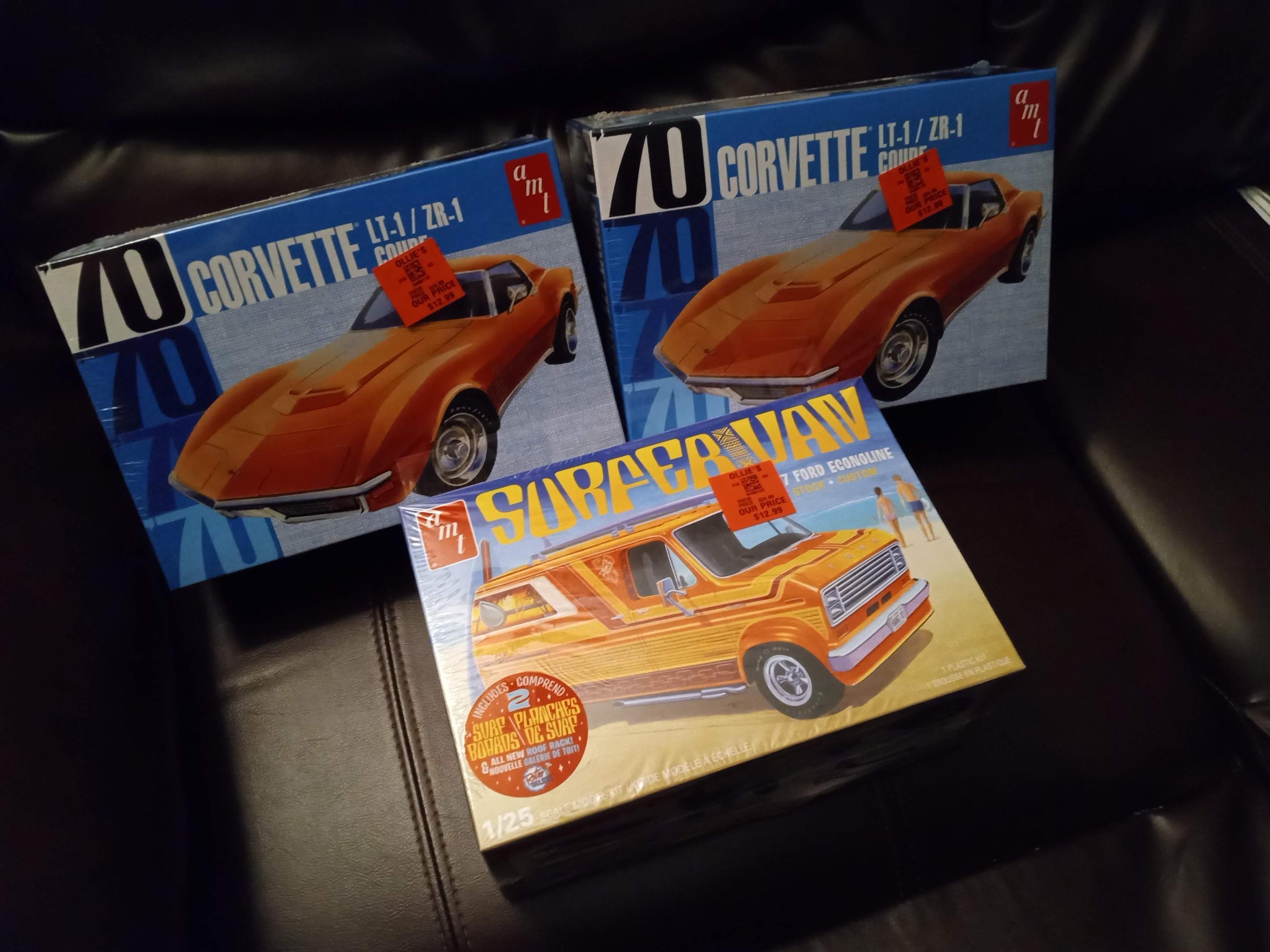 Passed by an Ollie's and thought "why not stop in and see if they have any new kits?" Got the last 2 '70 Corvettes and Surfer Van.
