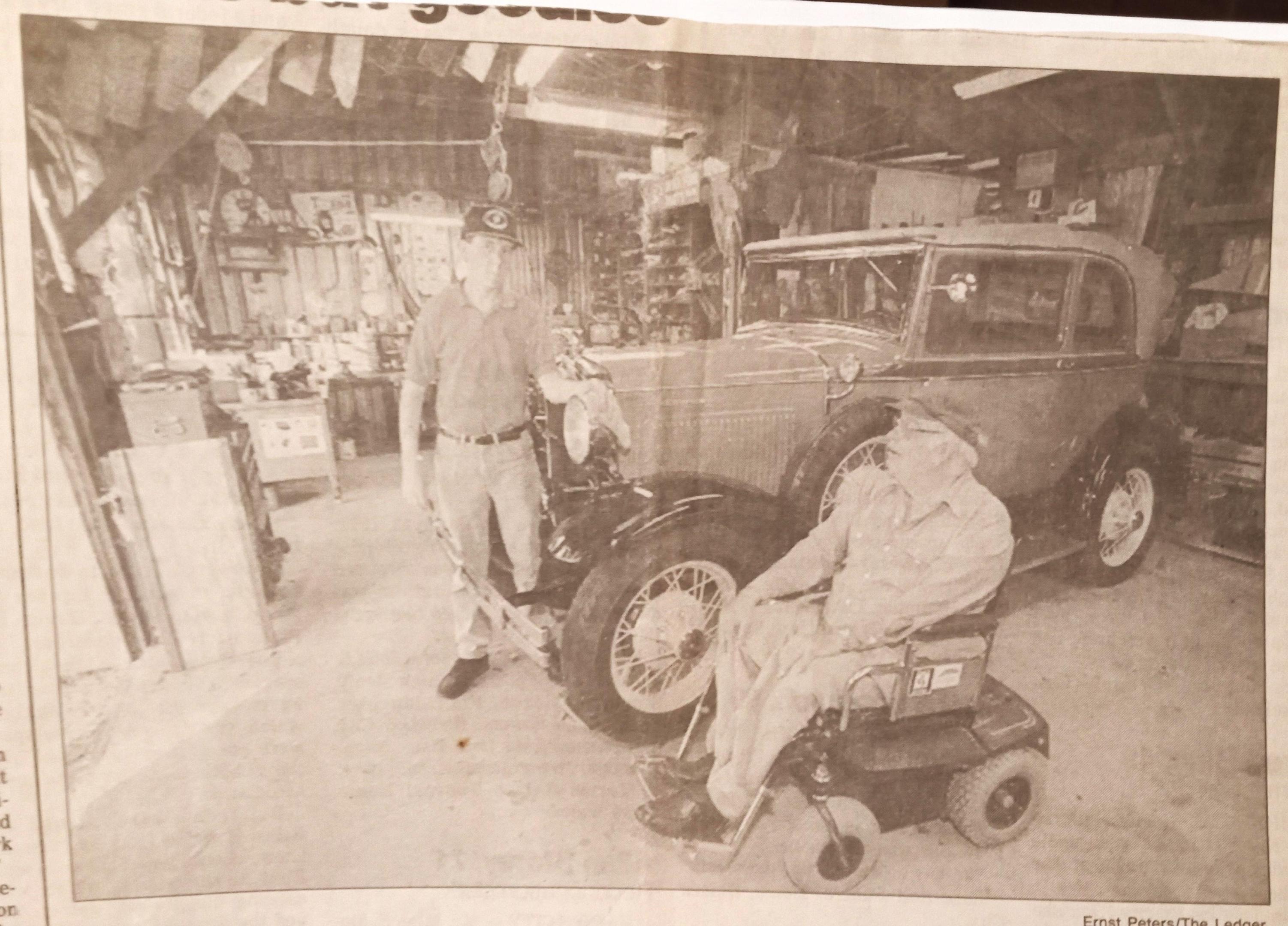 Here's a couple of me- The first one is me at 16 with my grandfather and the Model A A-400 we restored- the first car I painted. The second one is me a few years back selling some of my Corvette parts stash at an NCRS Regional show.
