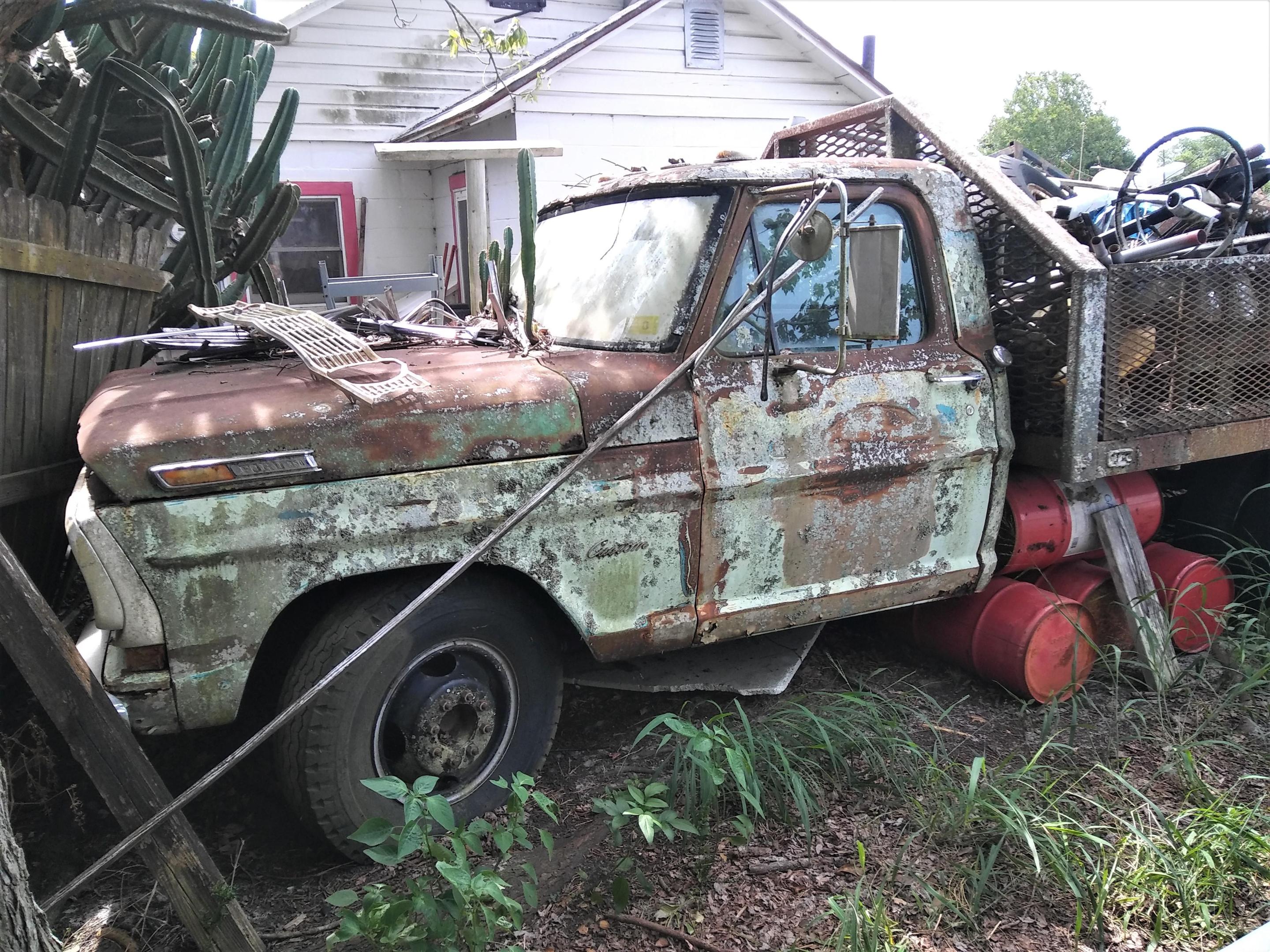 The one ton Ford is a friend of mine's and hasn't moved from this spot since 1997. Note the cactus growing out of the cowl vent! The red '62 Galaxie was a pleasant surprise. I owned an identical car back in the late '90s- 390/4spd except mine was an XL and this is a base model. I tried several times to buy this car to no avail, even waving a handful of $100 bills didn't work! Oh well there will be another one.... -